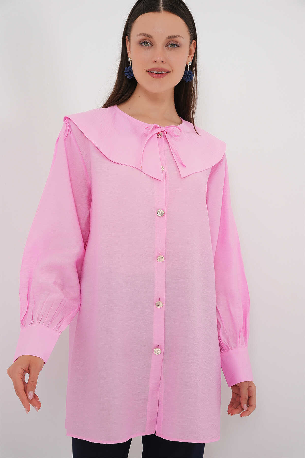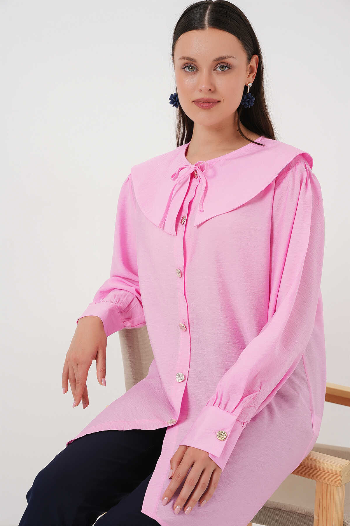 Kadın Bebe Yaka Uzun Tunik 5967 - Pembe - Kombin