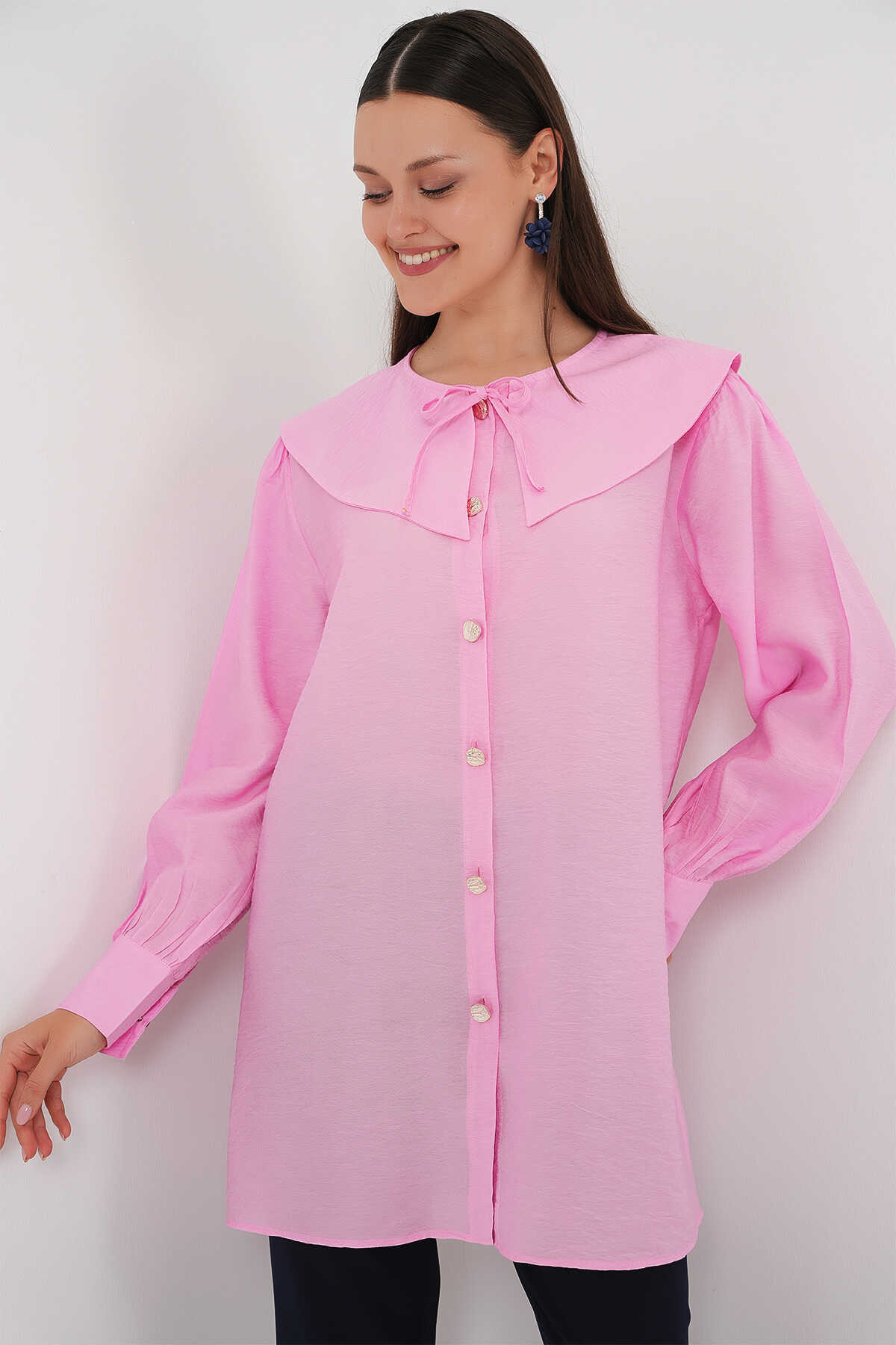 Kadın Bebe Yaka Uzun Tunik 5967 - Pembe