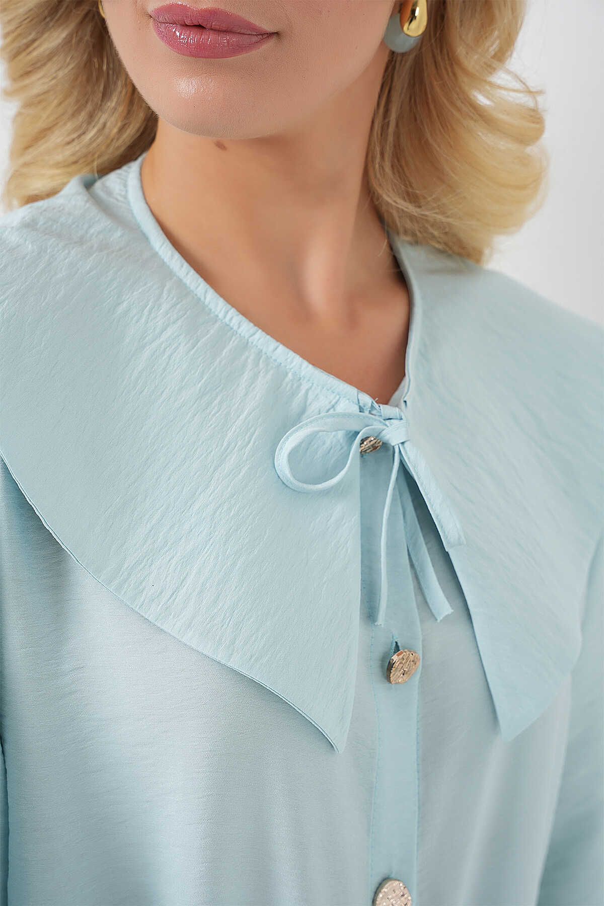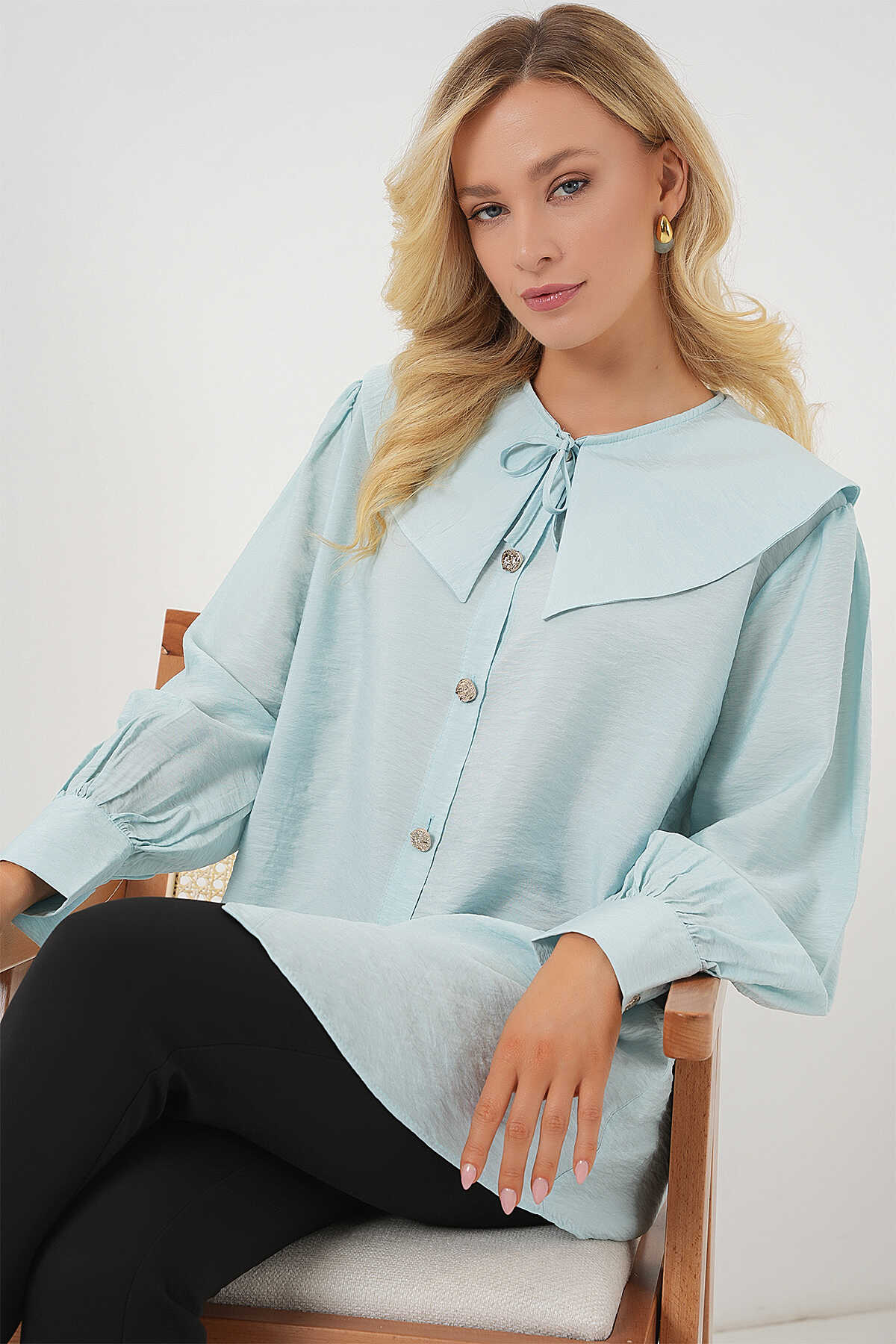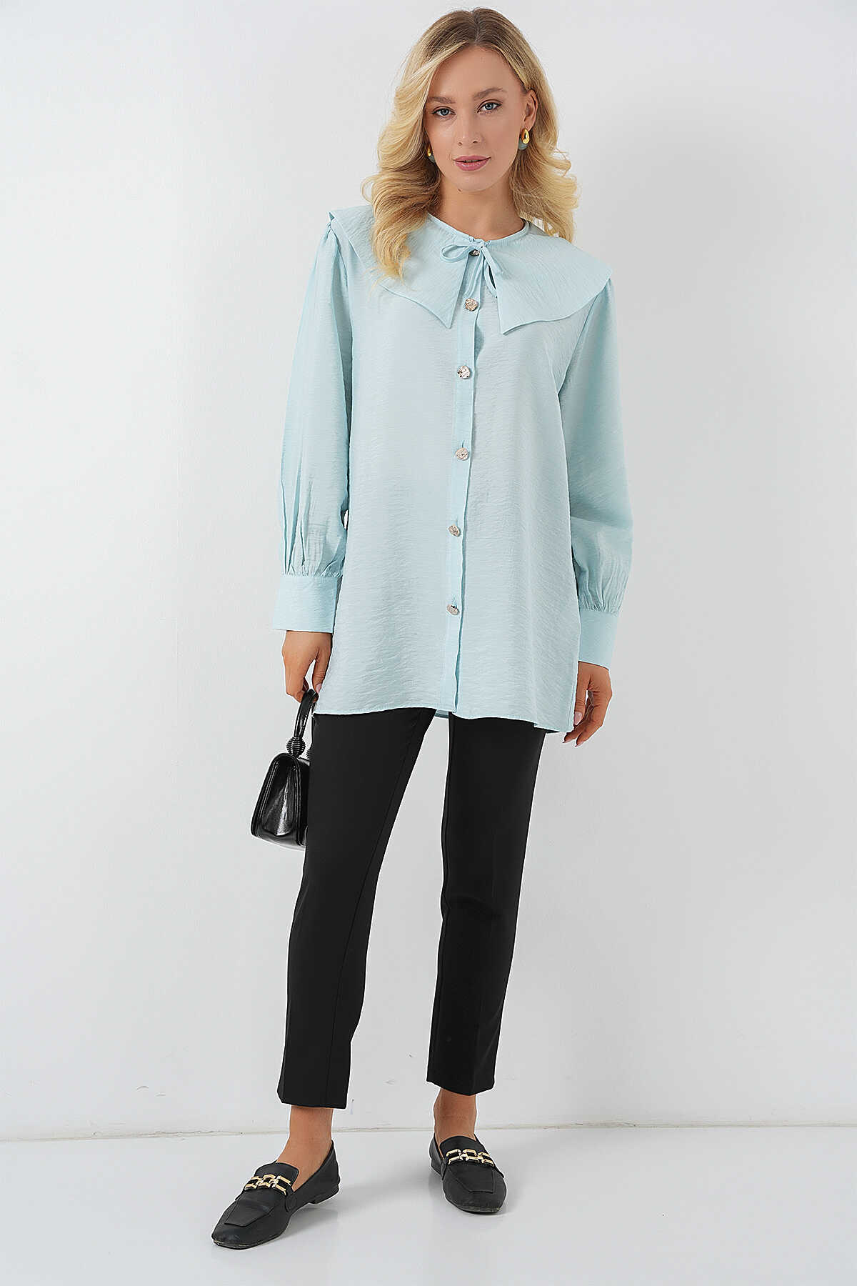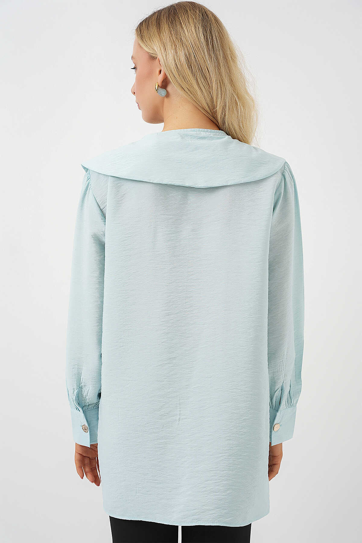 Kadın Bebe Yaka Uzun Tunik 5967 - Turkuaz - Kombin