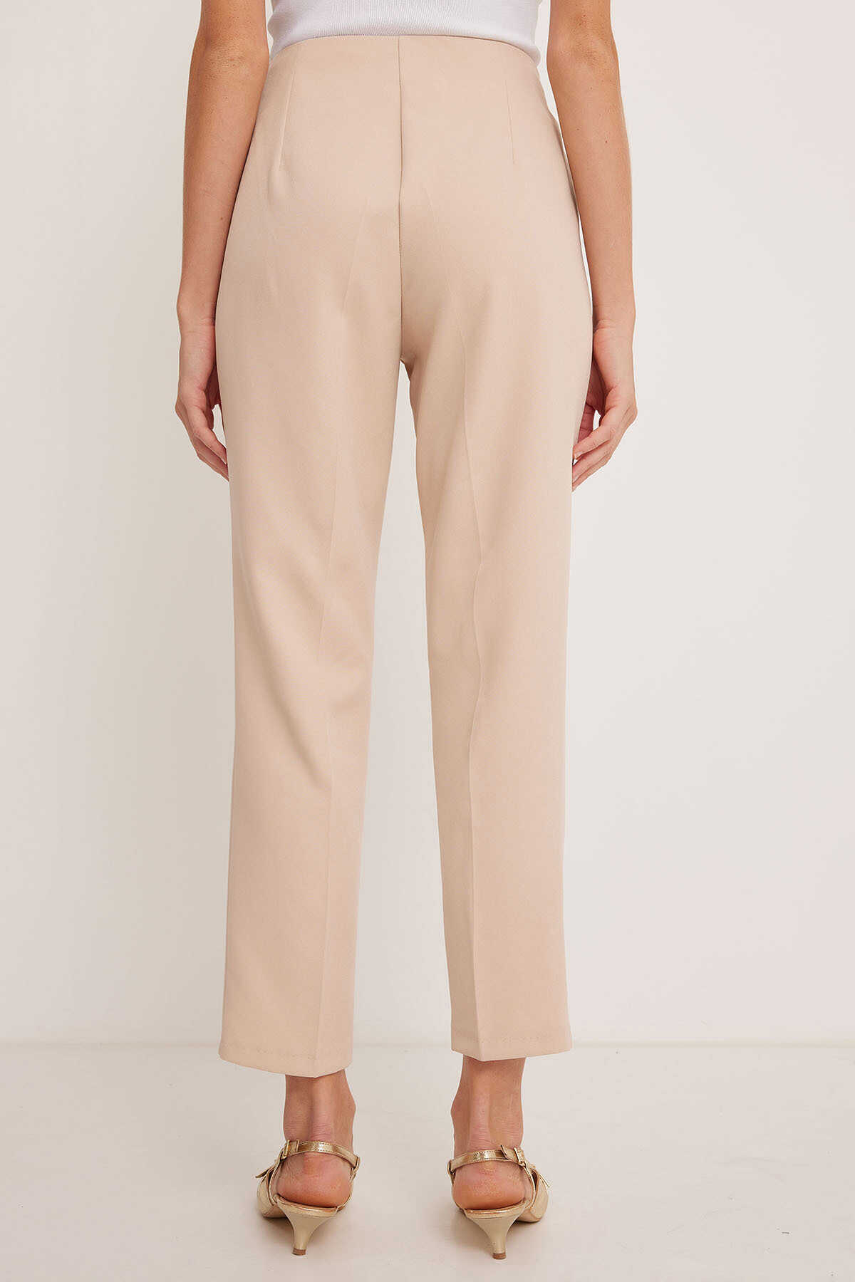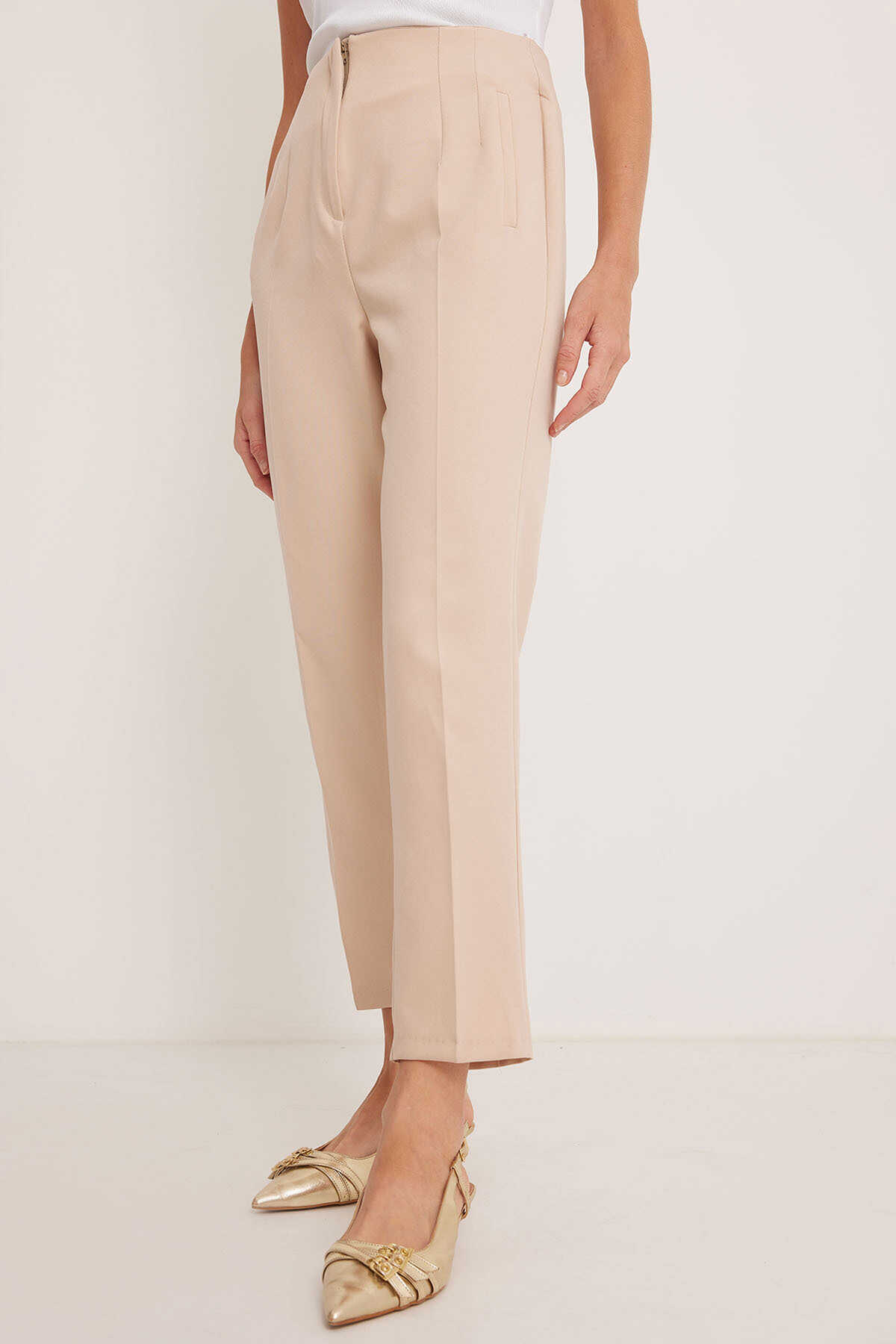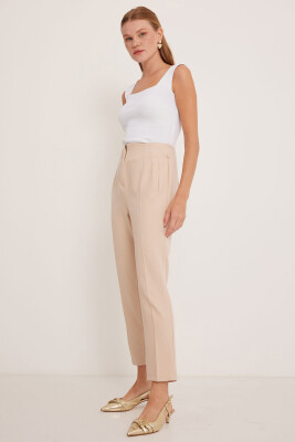 Kadın Bej Yüksek Bel Kumaş Pantolon 6650 - Kombin