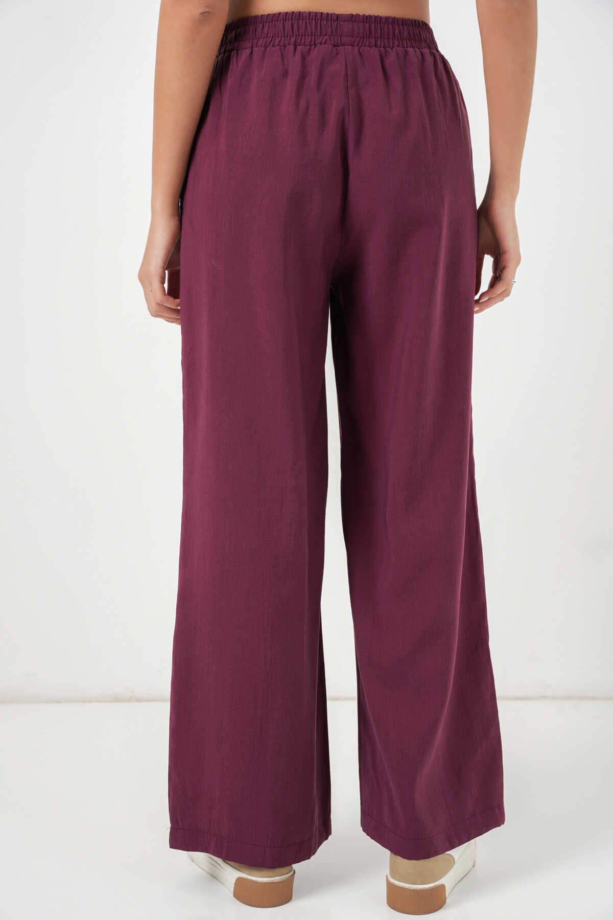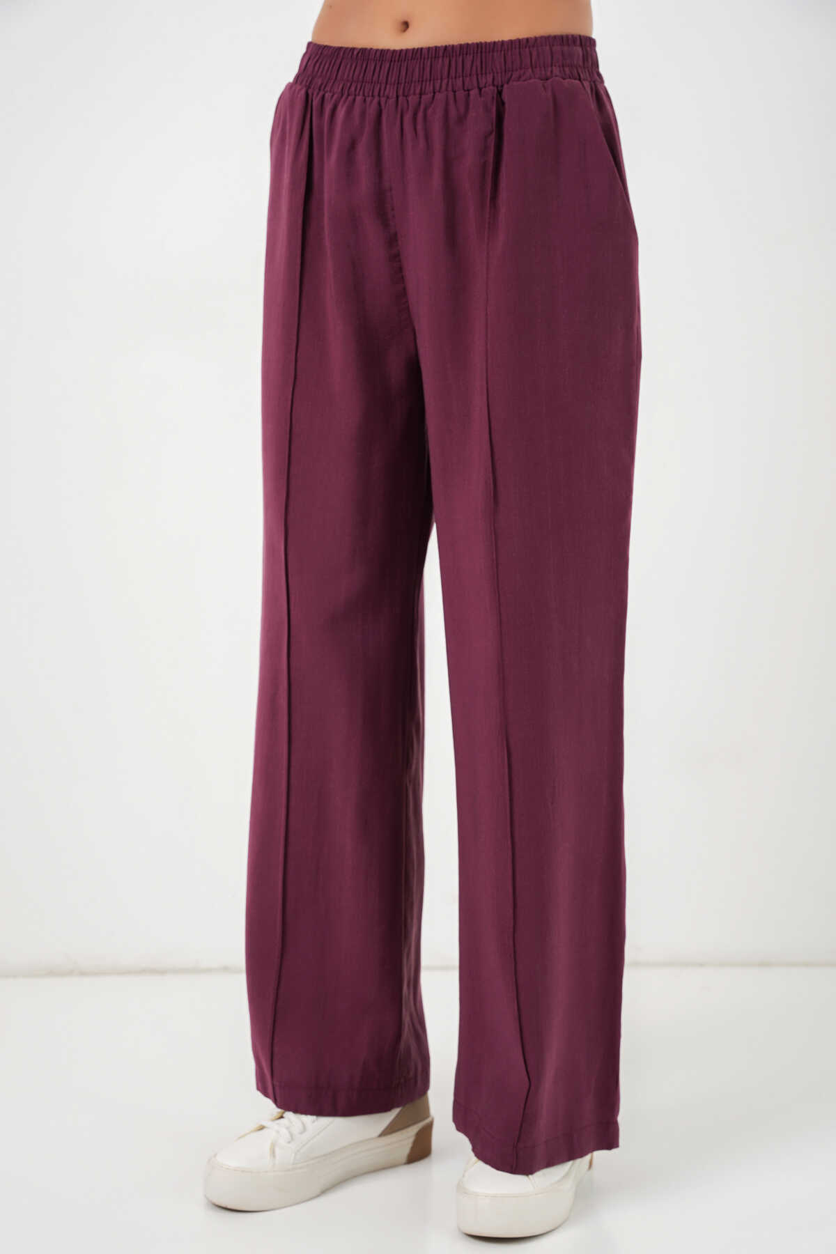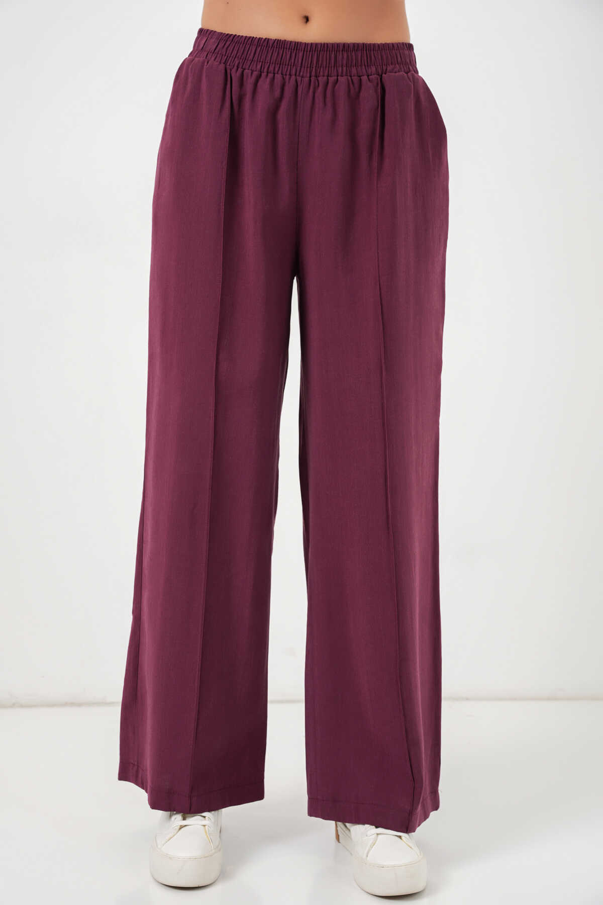 Kadın Beli Lastikli Bol Paça Pantolon 30087 - Bordo - Kombin