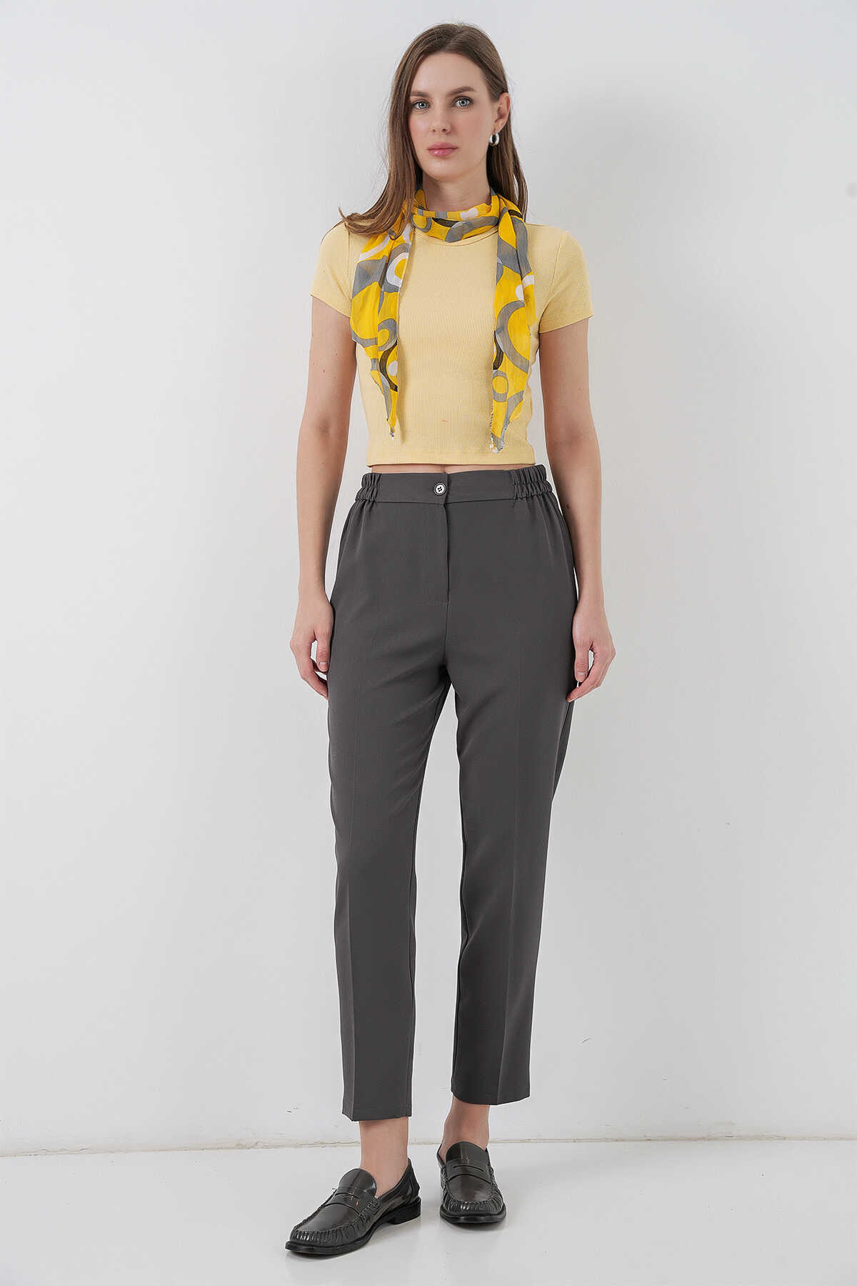 Kadın Beli Lastikli Kumaş Pantolon 30058 - Antrasit - Kombin