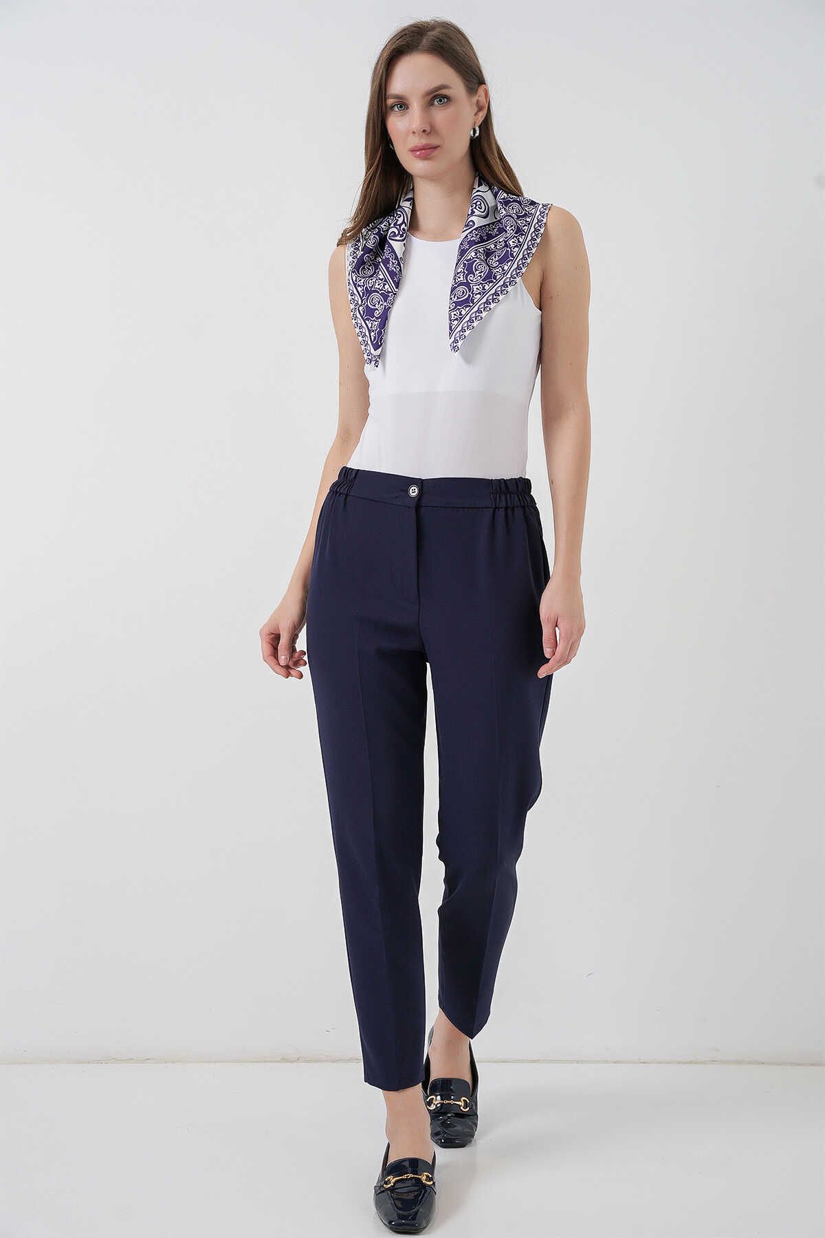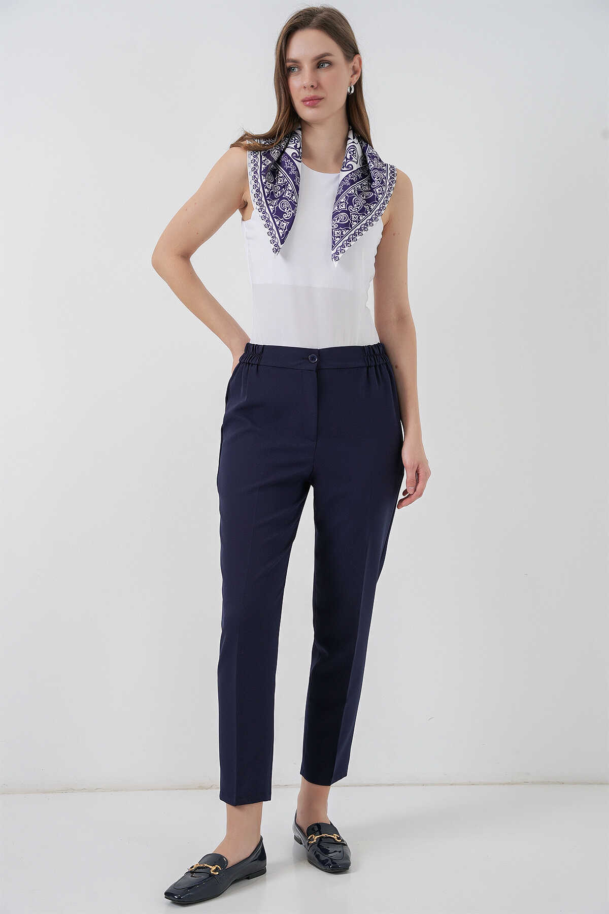 Kadın Beli Lastikli Kumaş Pantolon 30058 - Lacivert