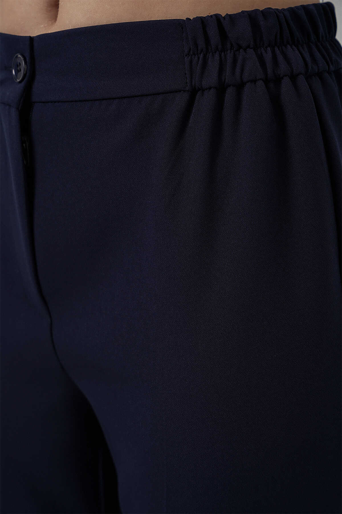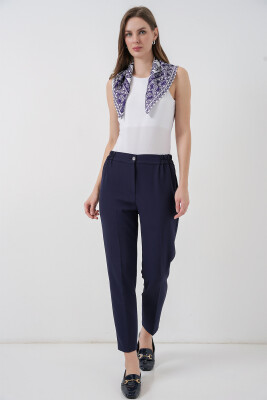 Kadın Beli Lastikli Kumaş Pantolon 30058 - Lacivert - Kombin