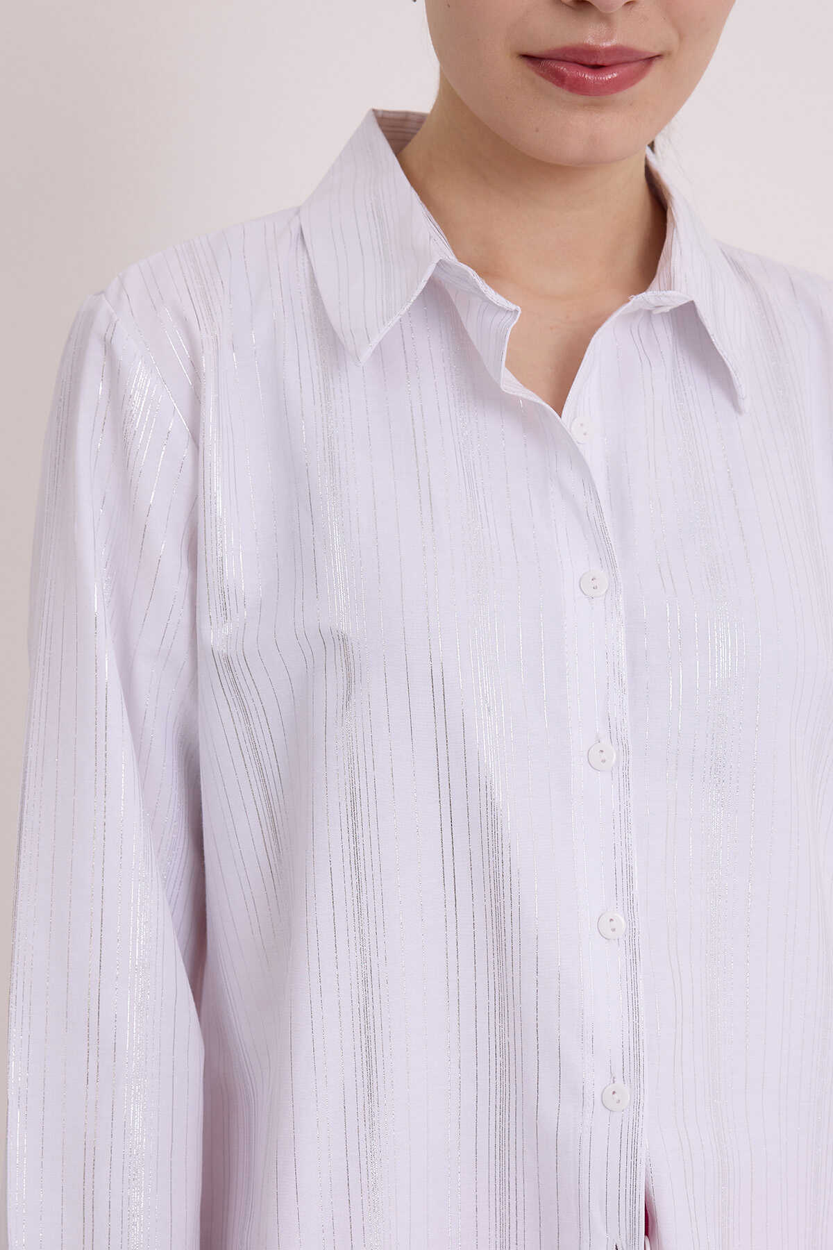 Kadın Beyaz Gümüş Varak Desenli Gömlek 20253 - Kombin
