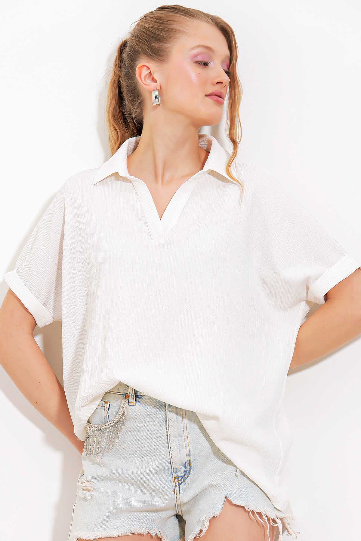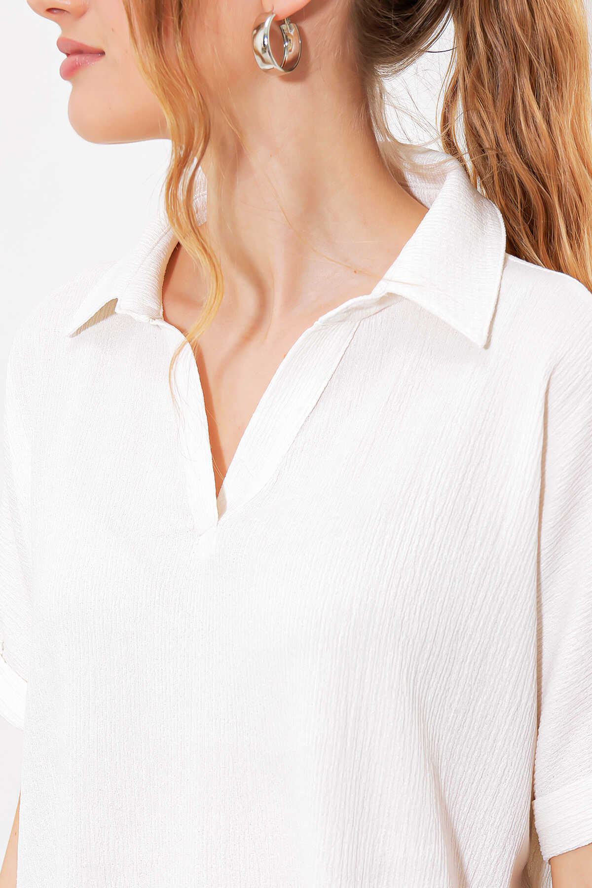 Polo Yaka Örme Bluz