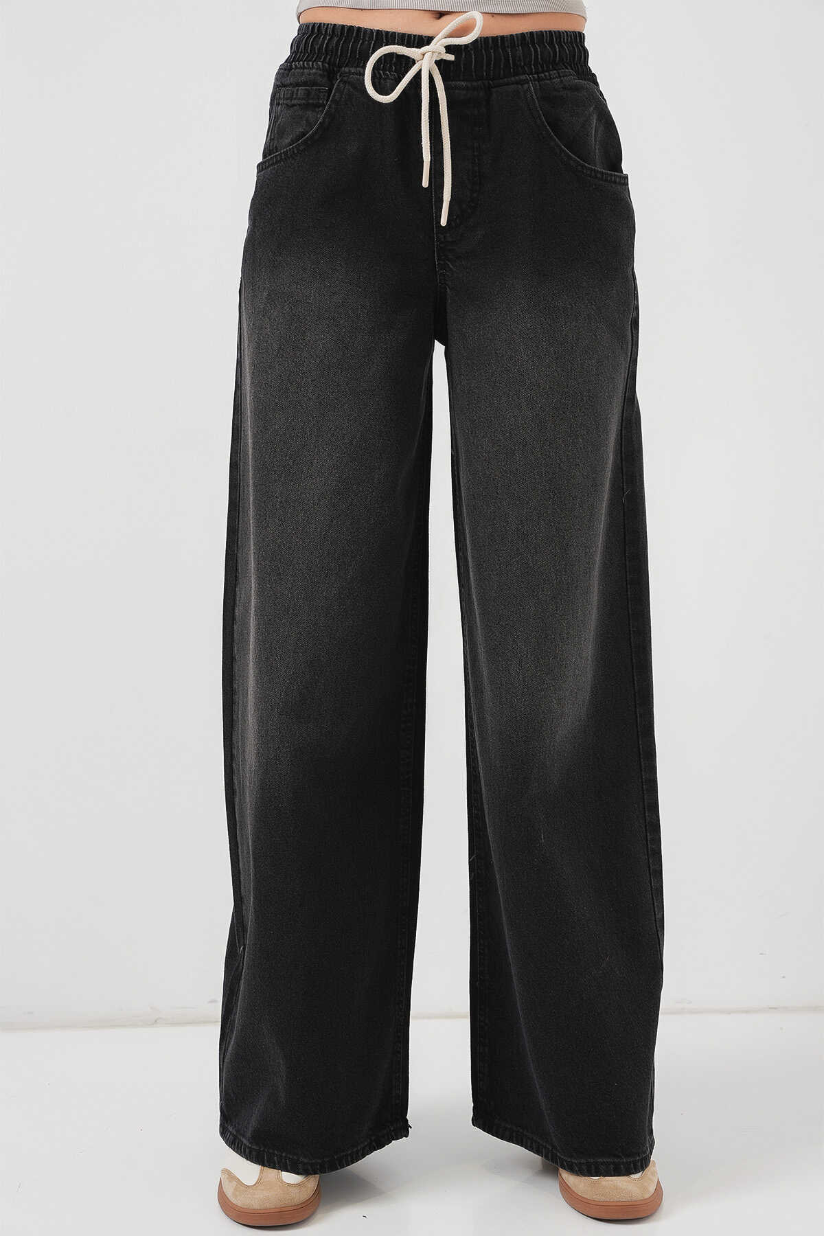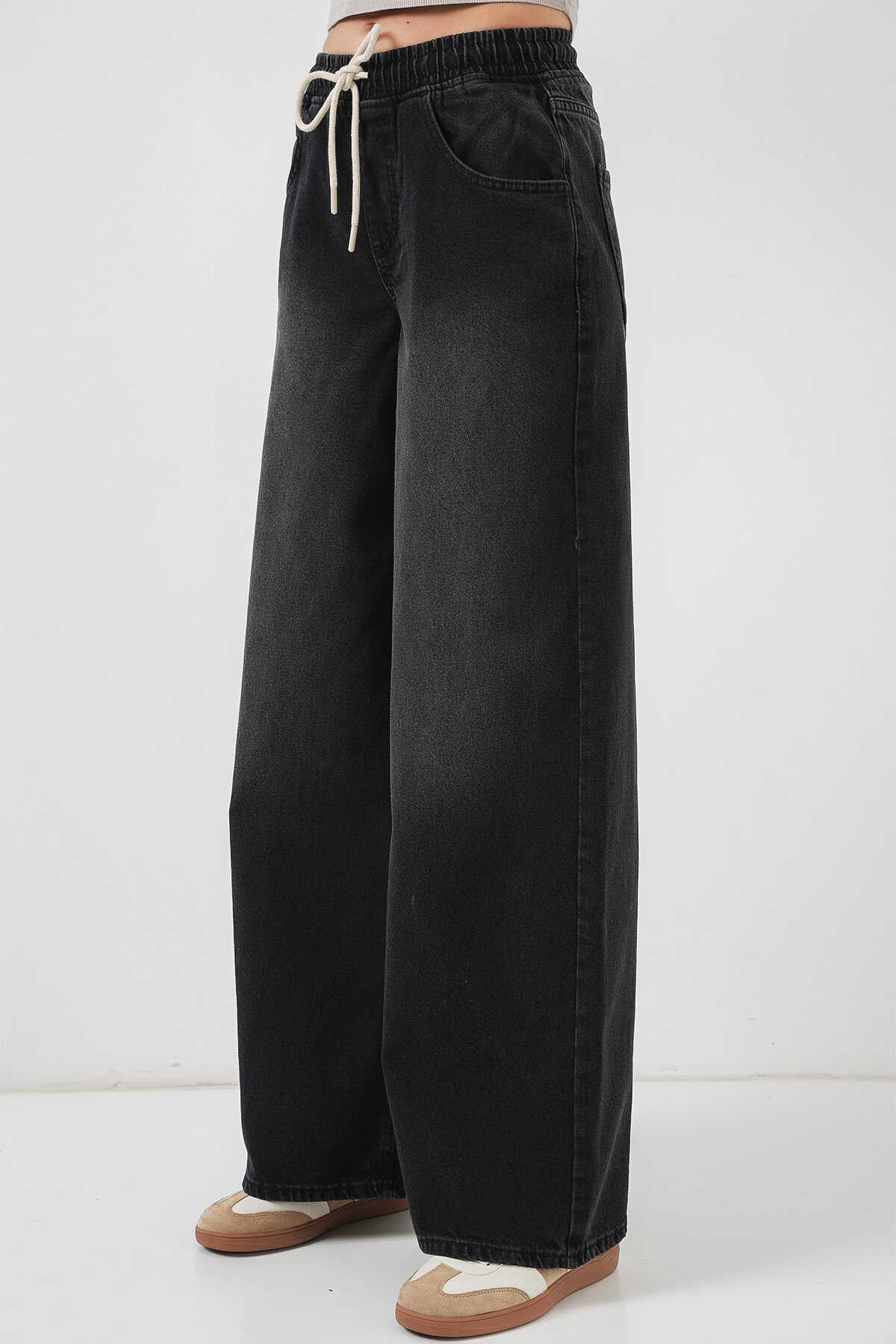 Kadın Bol Paça Kot Pantolon 6705 - Siyah - Kombin