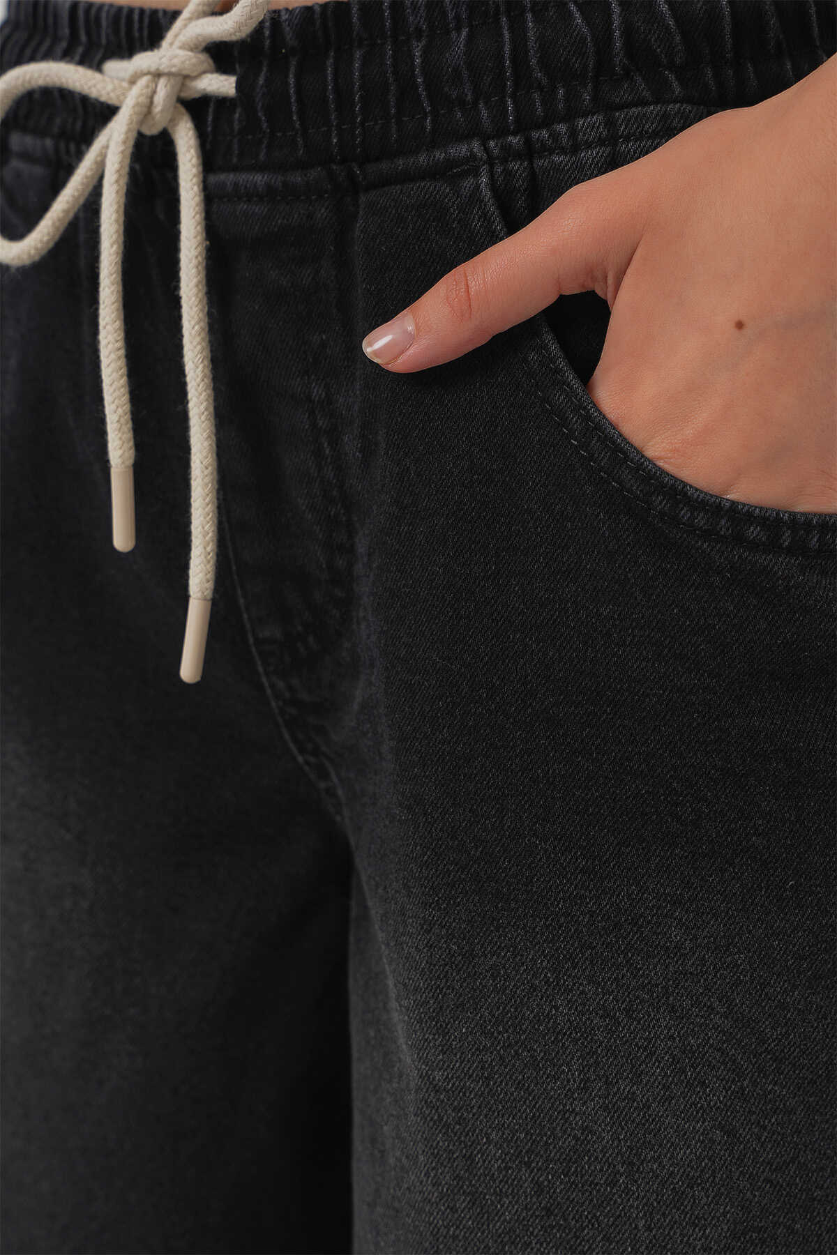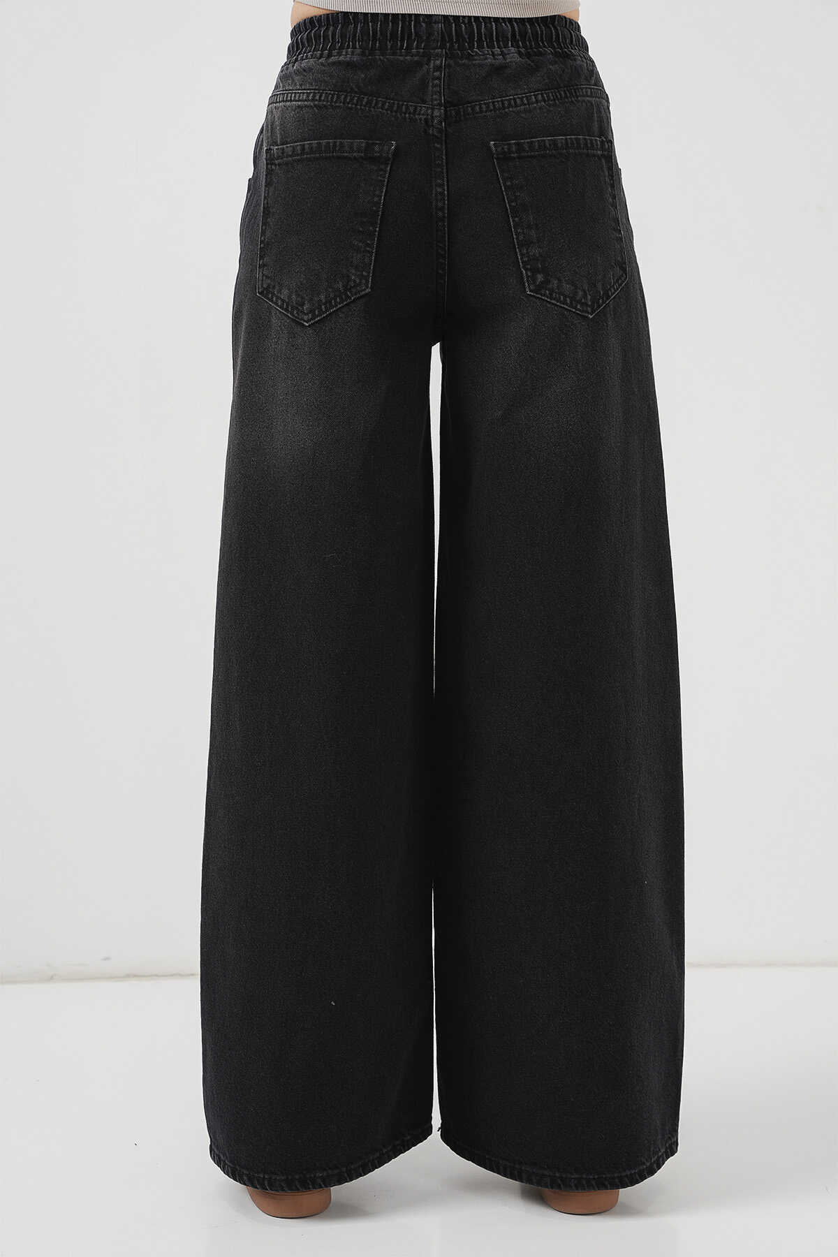 Kadın Bol Paça Kot Pantolon 6705 - Siyah