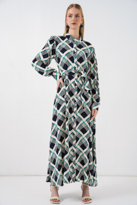 Kadın Boydan Düğmeli Uzun Tesettür Elbise 2588 - F.Lacivert
