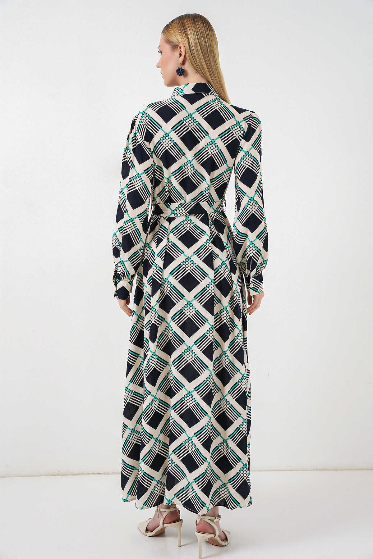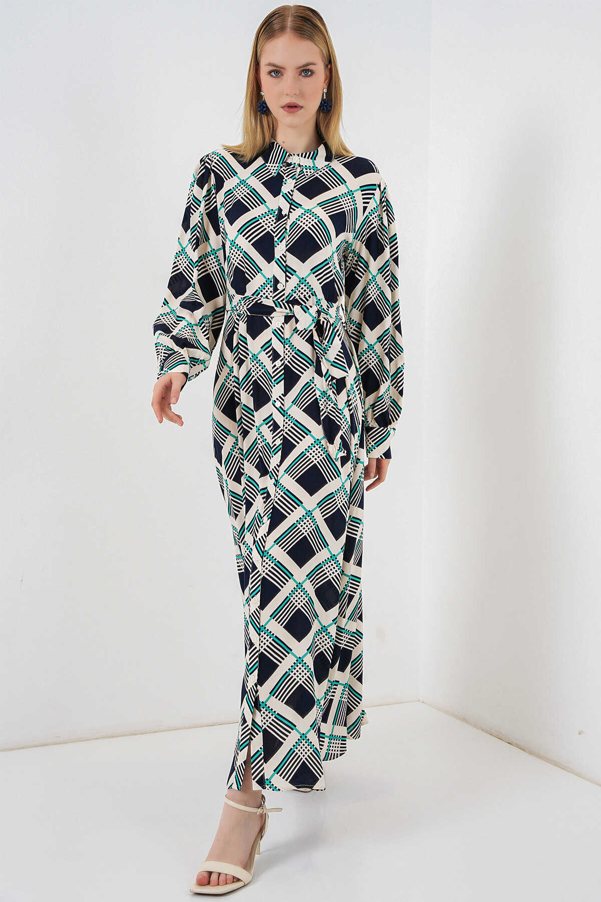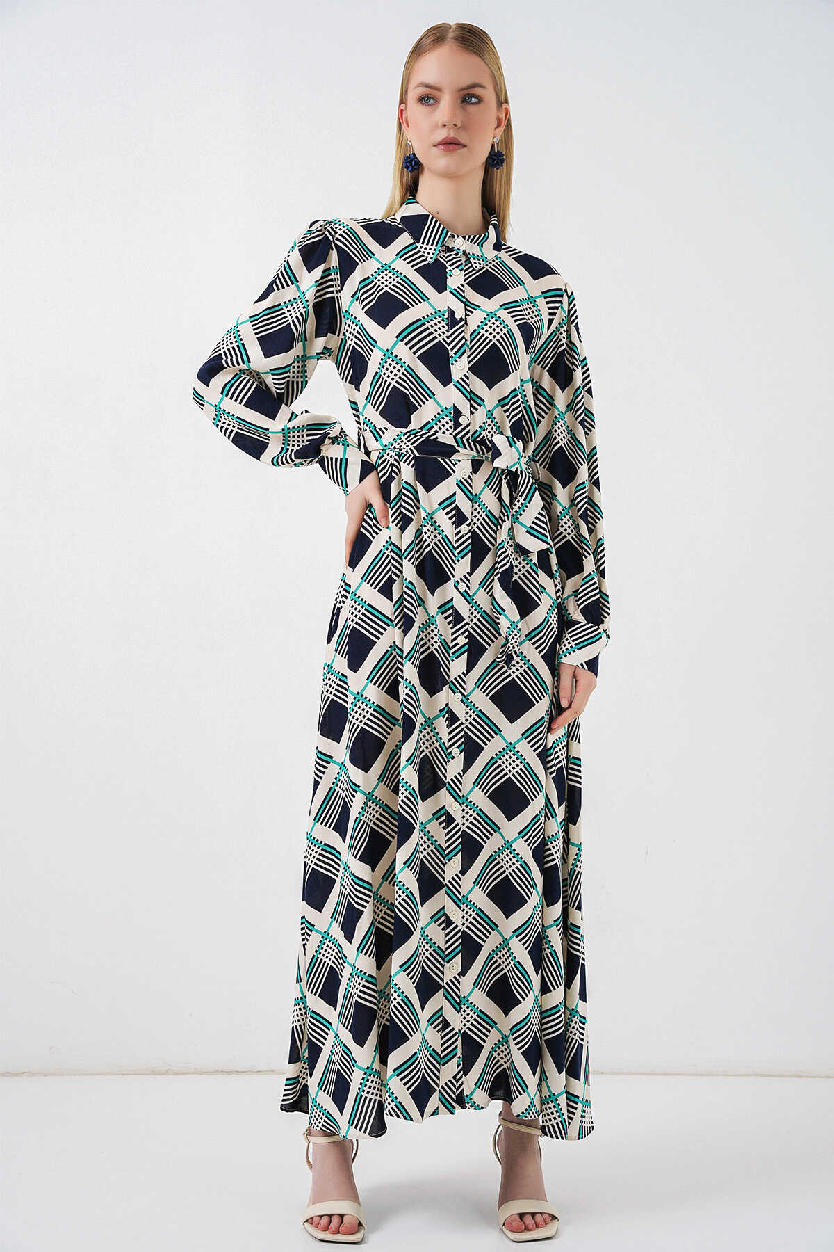 Kadın Boydan Düğmeli Uzun Tesettür Elbise 2588 - F.Lacivert - Kombin