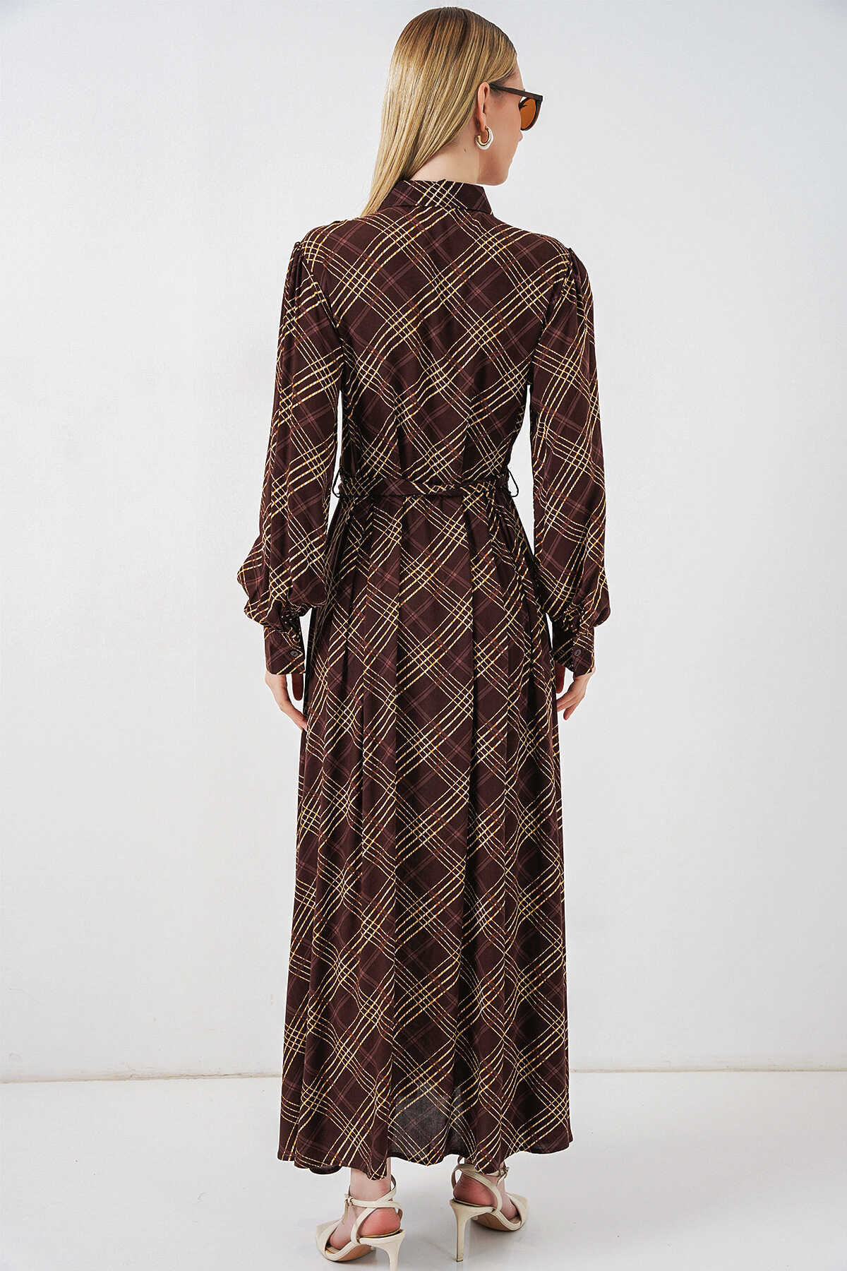 Kadın Boydan Düğmeli Uzun Tesettür Elbise 2588 - Kahverengi