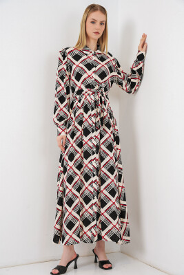 Kadın Boydan Düğmeli Uzun Tesettür Elbise 2588 - Siyah - Bej