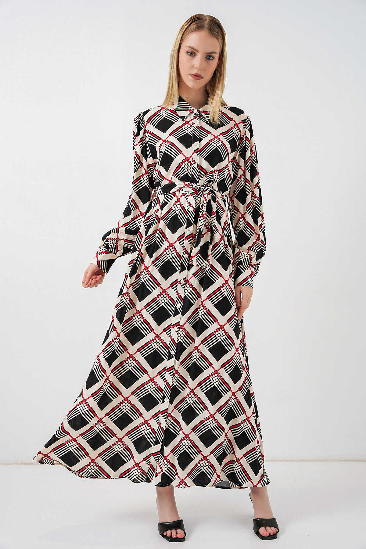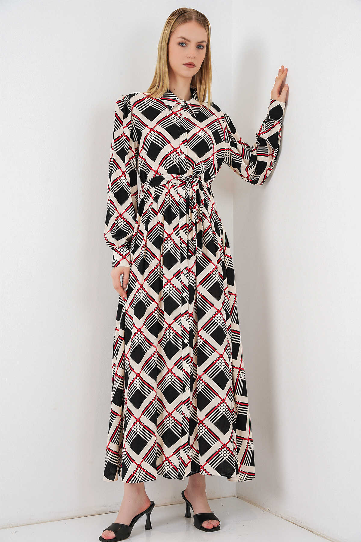 Kadin Boydan Dügmeli Uzun Tesettür Elbise 2588