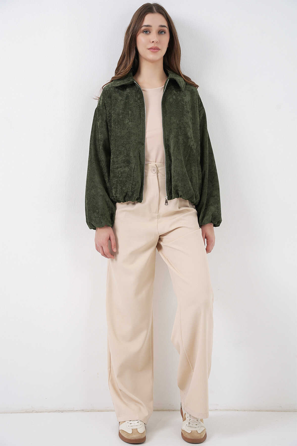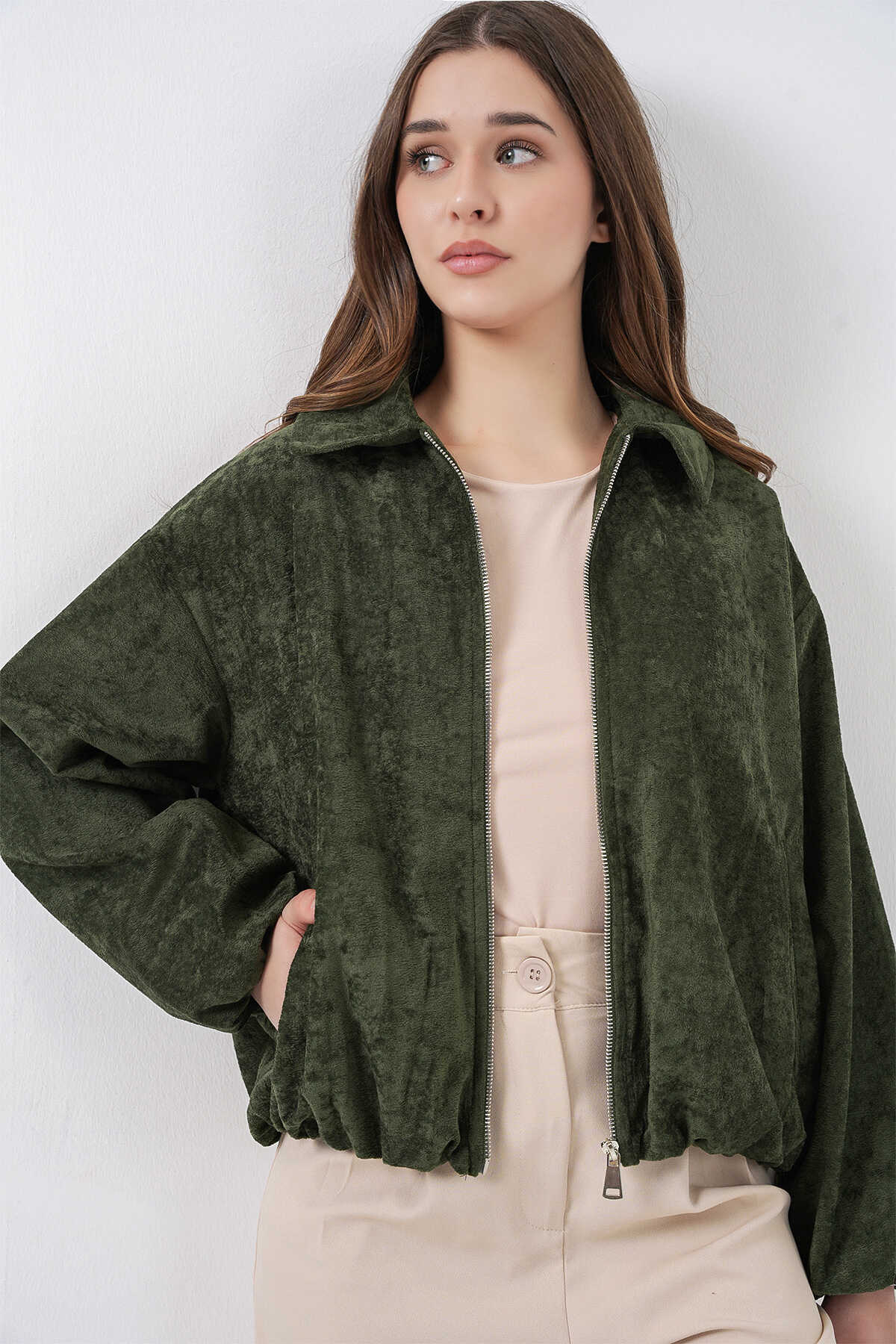 Kadin Büzgülü Oversize Kadife Ceket 0733