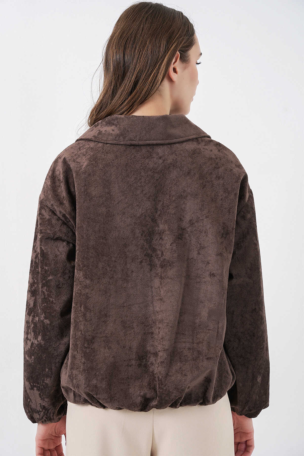 Kadın Büzgülü Oversize Kadife Ceket 0733 - Kahverengi