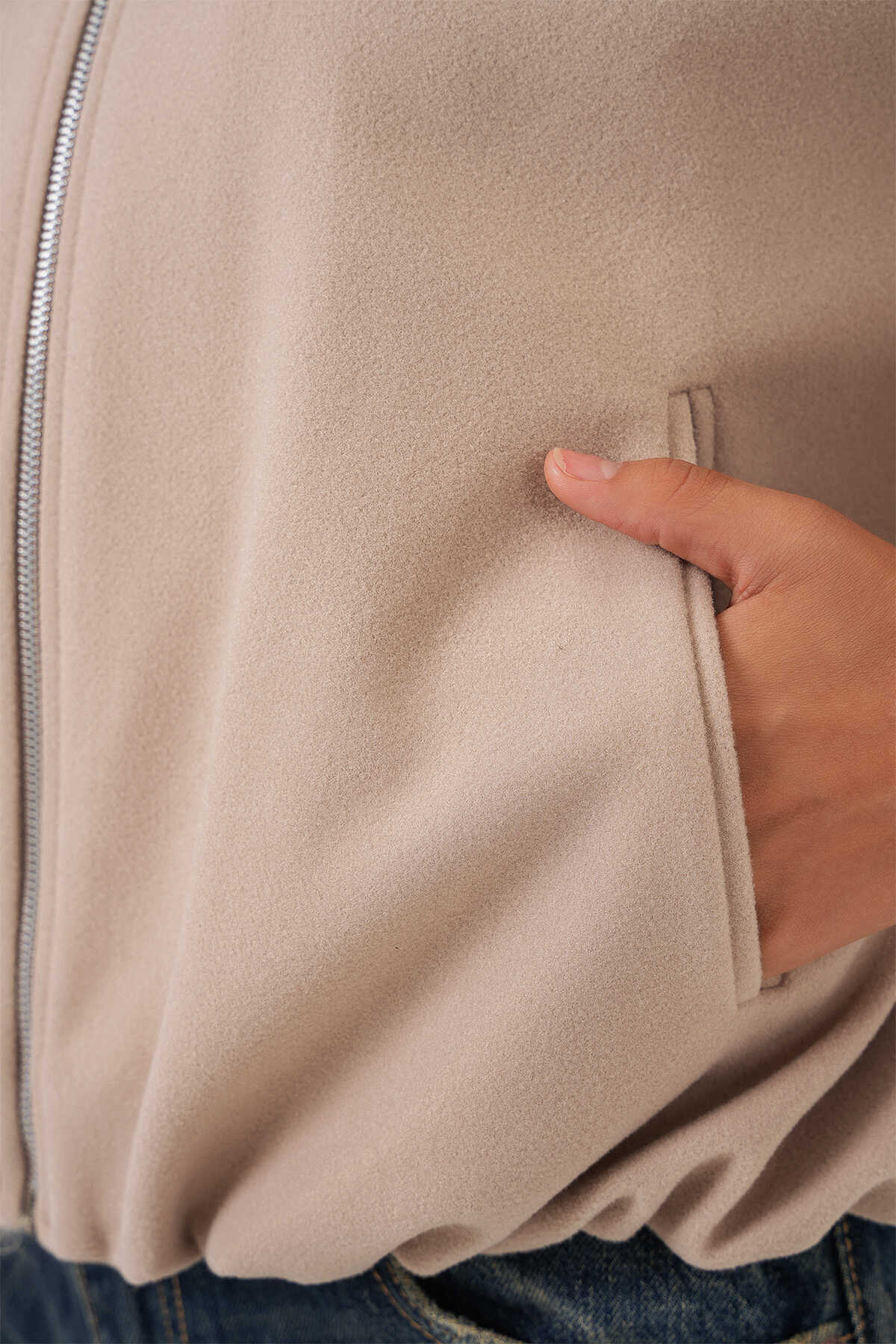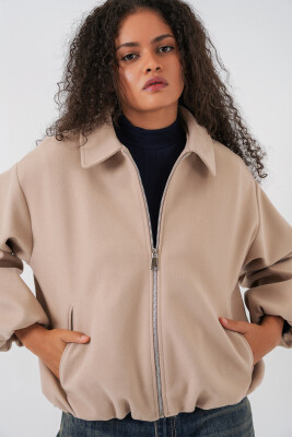 Kadın Büzgülü Oversize Kaşe Ceket 0728 - Bej