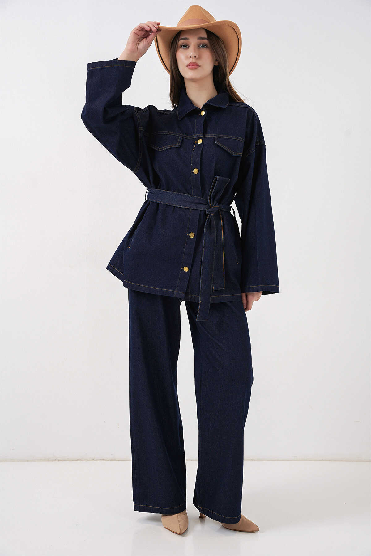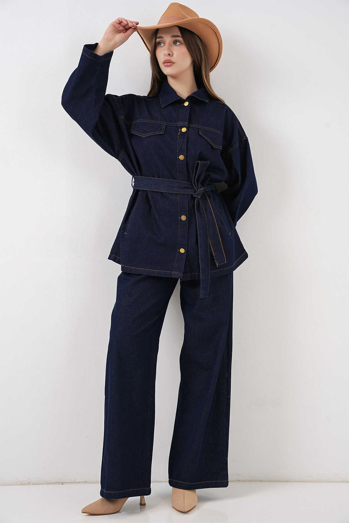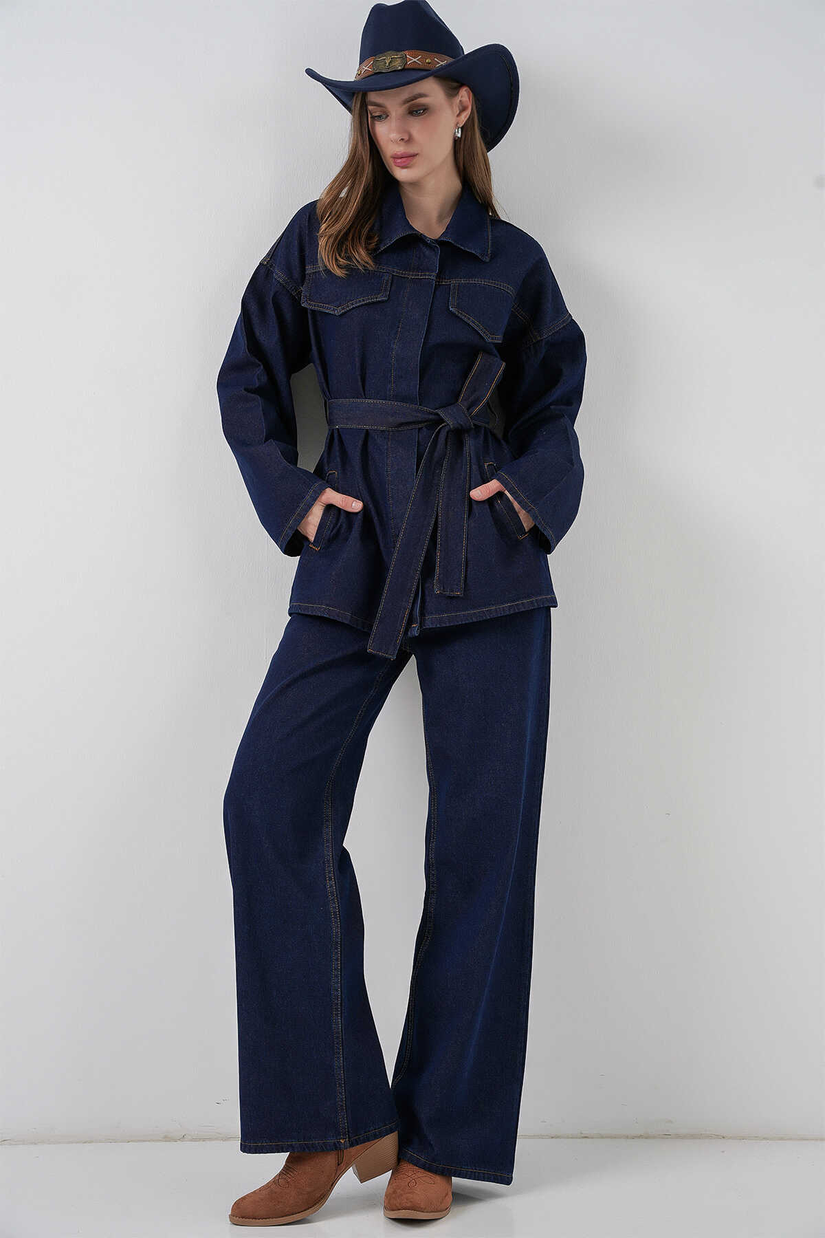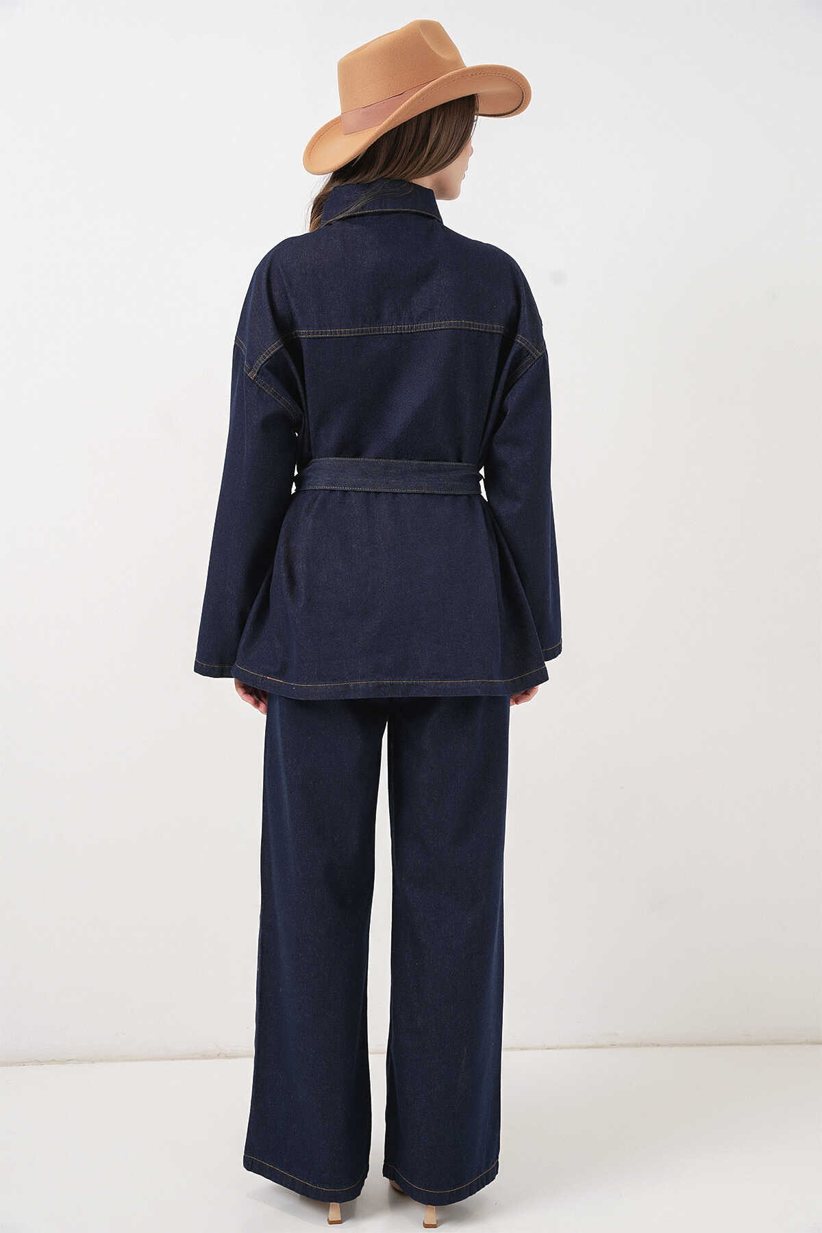 Kadın Ceket Pantolon Kot İkili Takım 30059 - Lacivert - Kombin