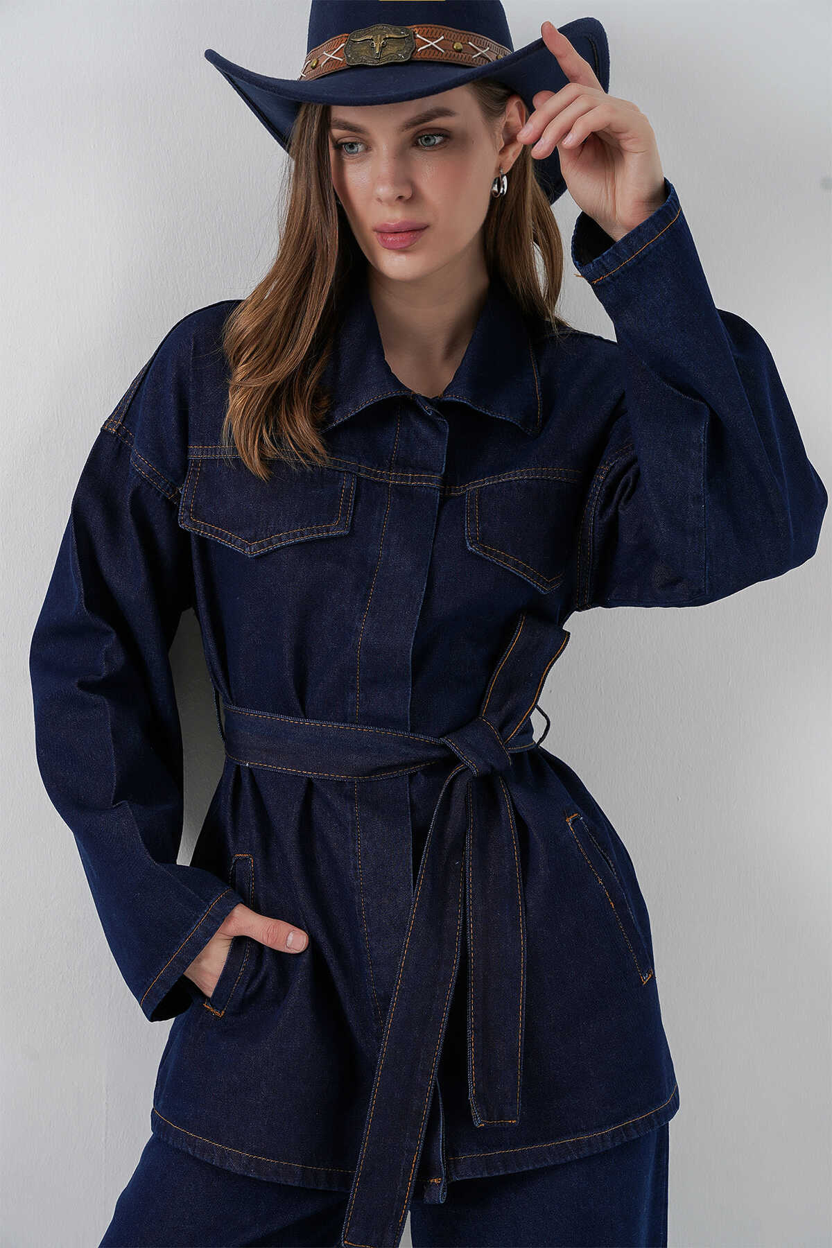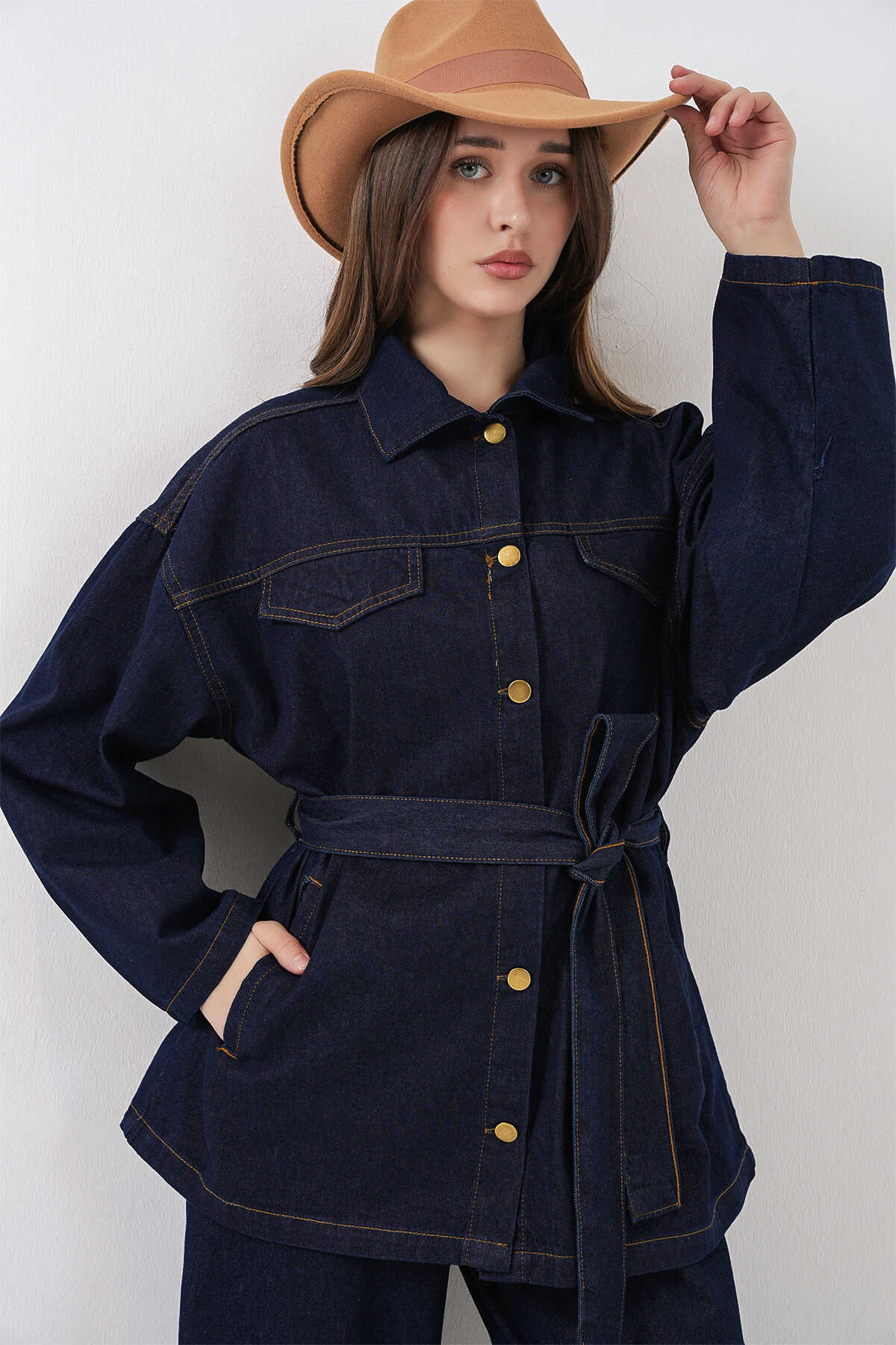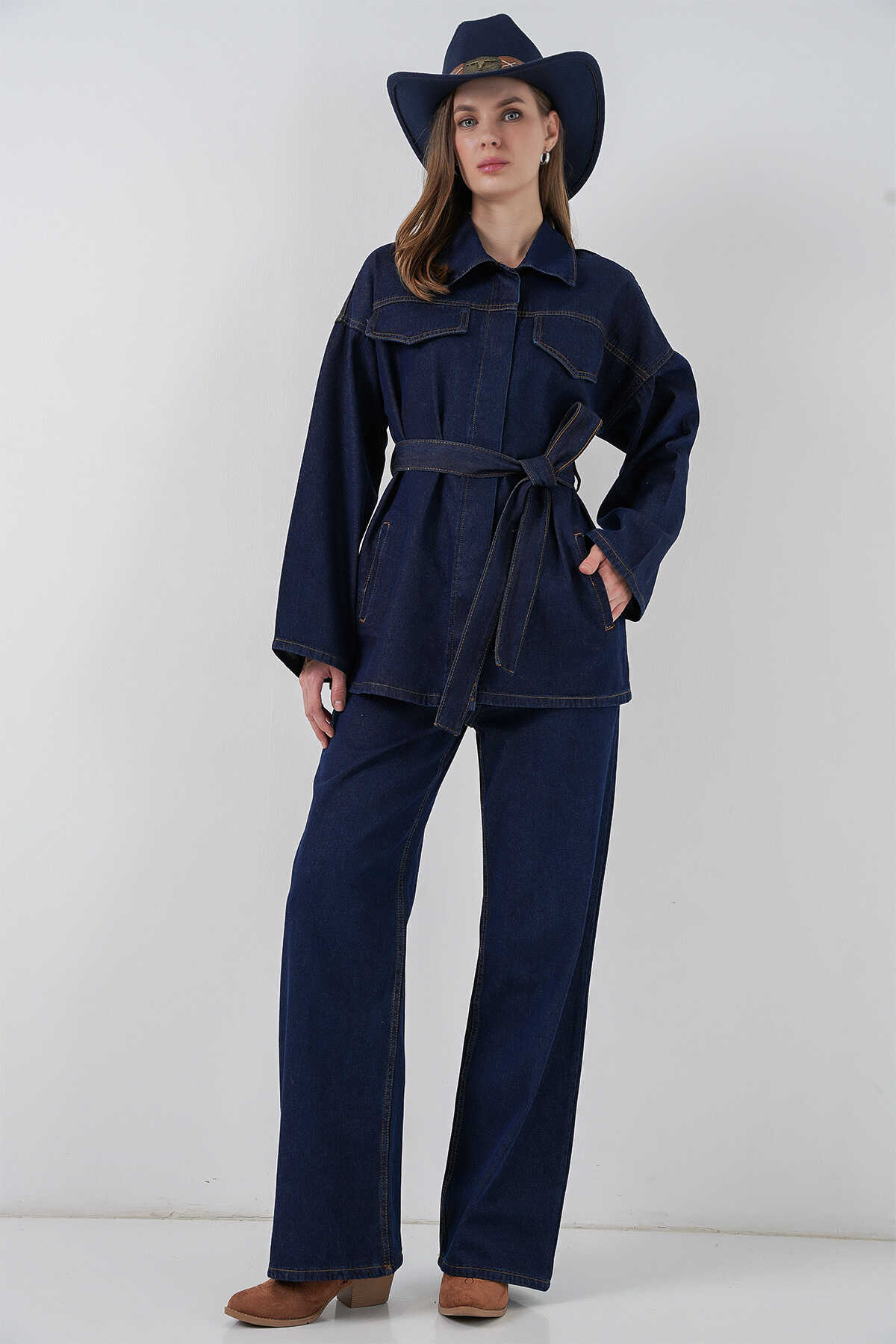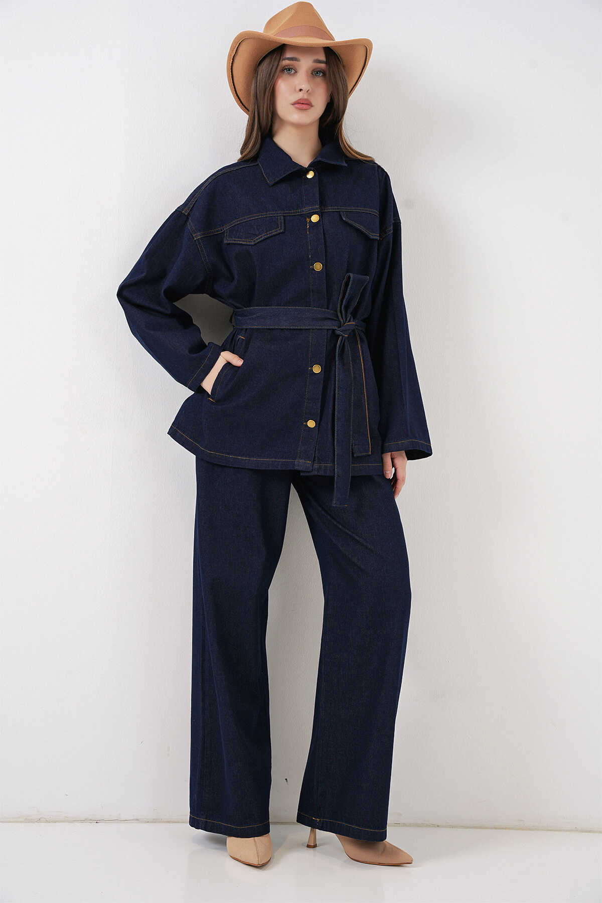 Kadın Ceket Pantolon Kot İkili Takım 30059 - Lacivert - Kombin