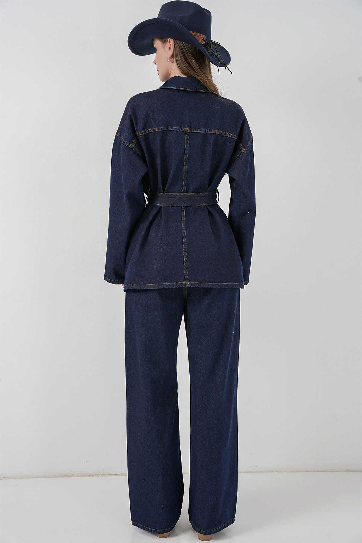 Kadın Ceket Pantolon Kot İkili Takım 30059 - Lacivert
