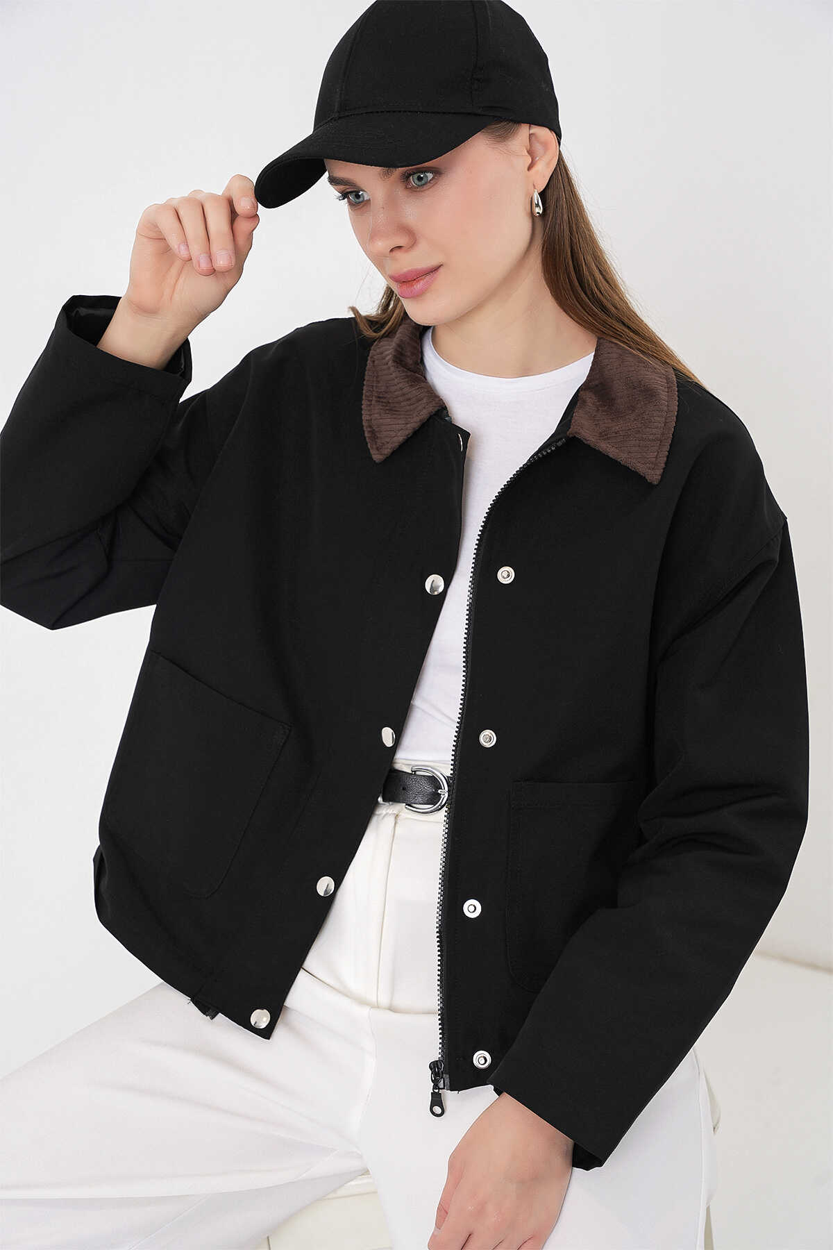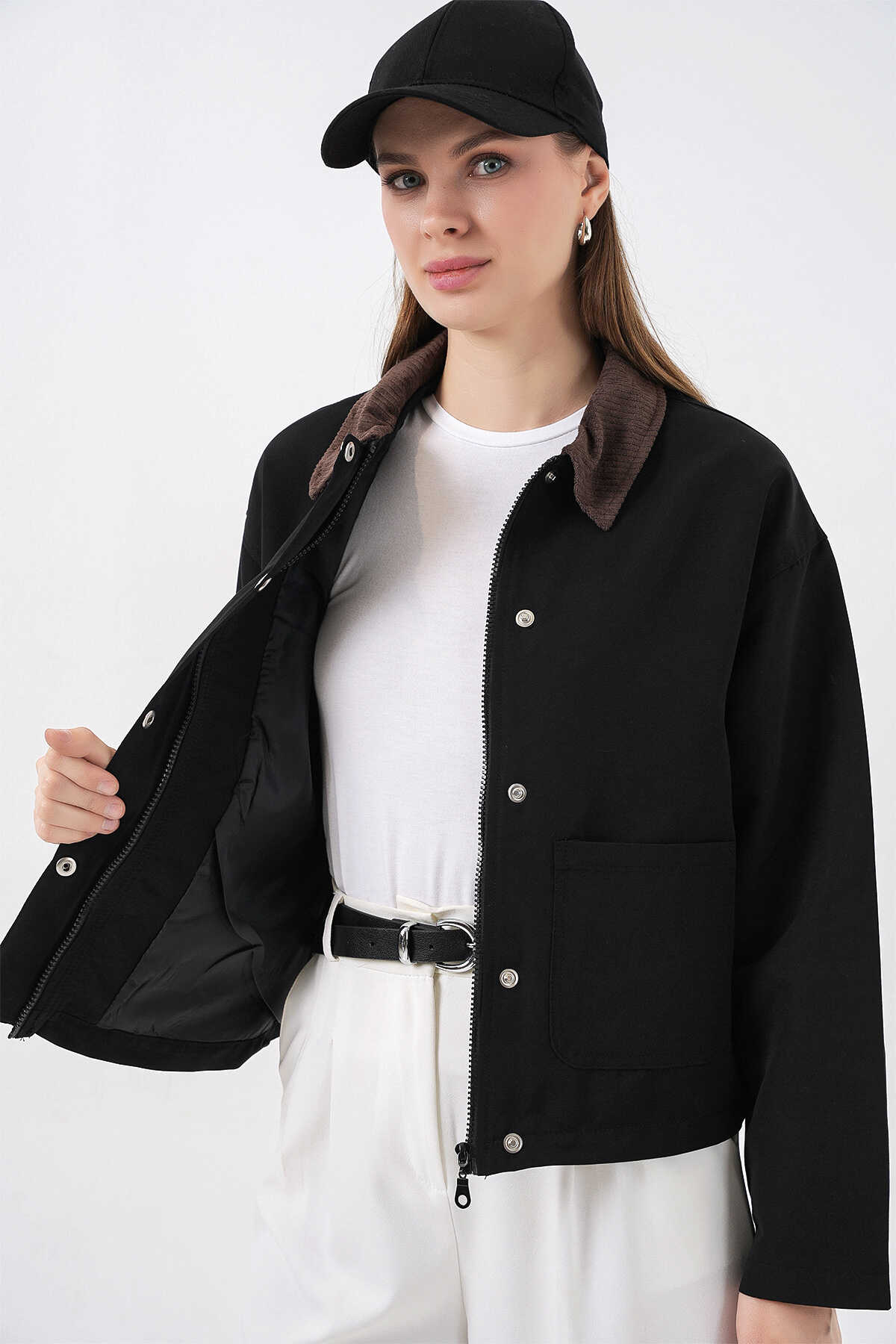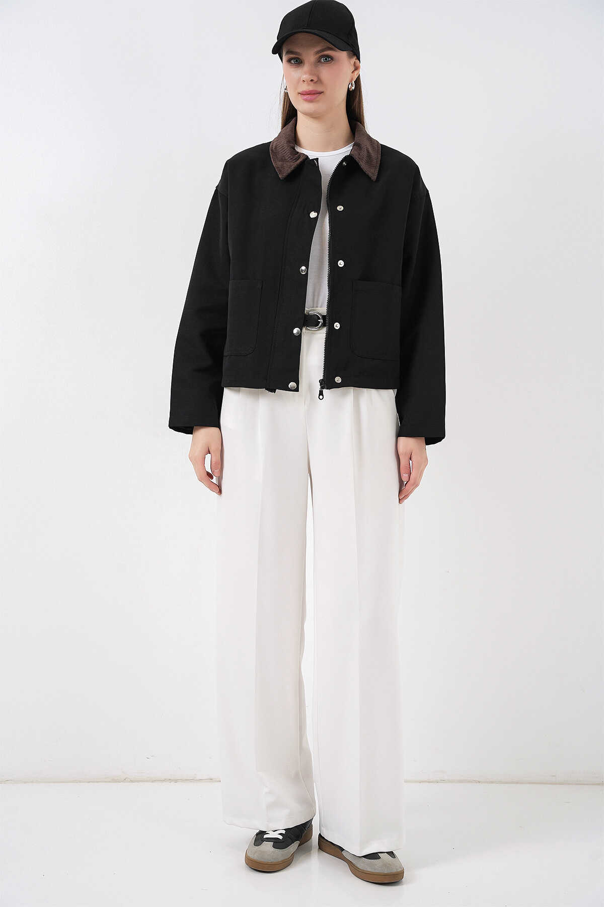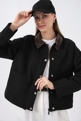 Kadın Cep Detaylı Kısa Ceket 5975 - Siyah - Kombin