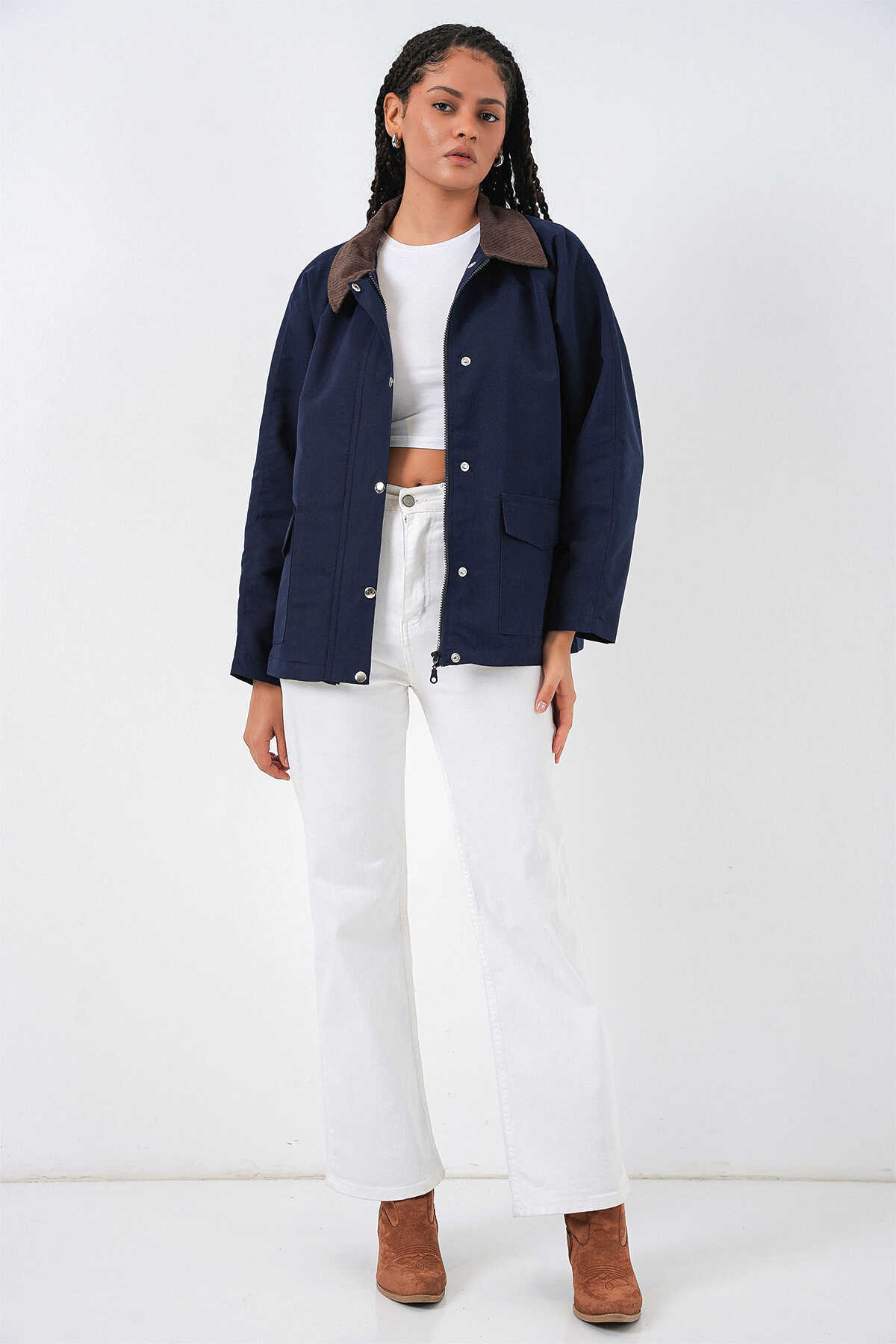 Kadın Cep Detaylı Oversize Ceket 5973 - Lacivert - Kombin