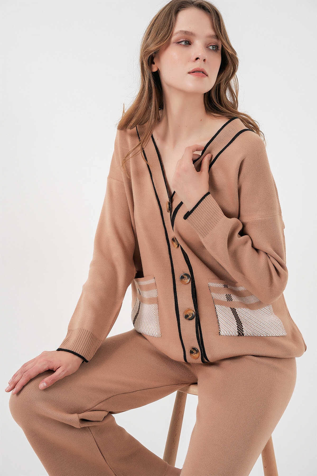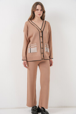 Kadın Cepli Hırka Triko İkili Takım 15964 - Camel