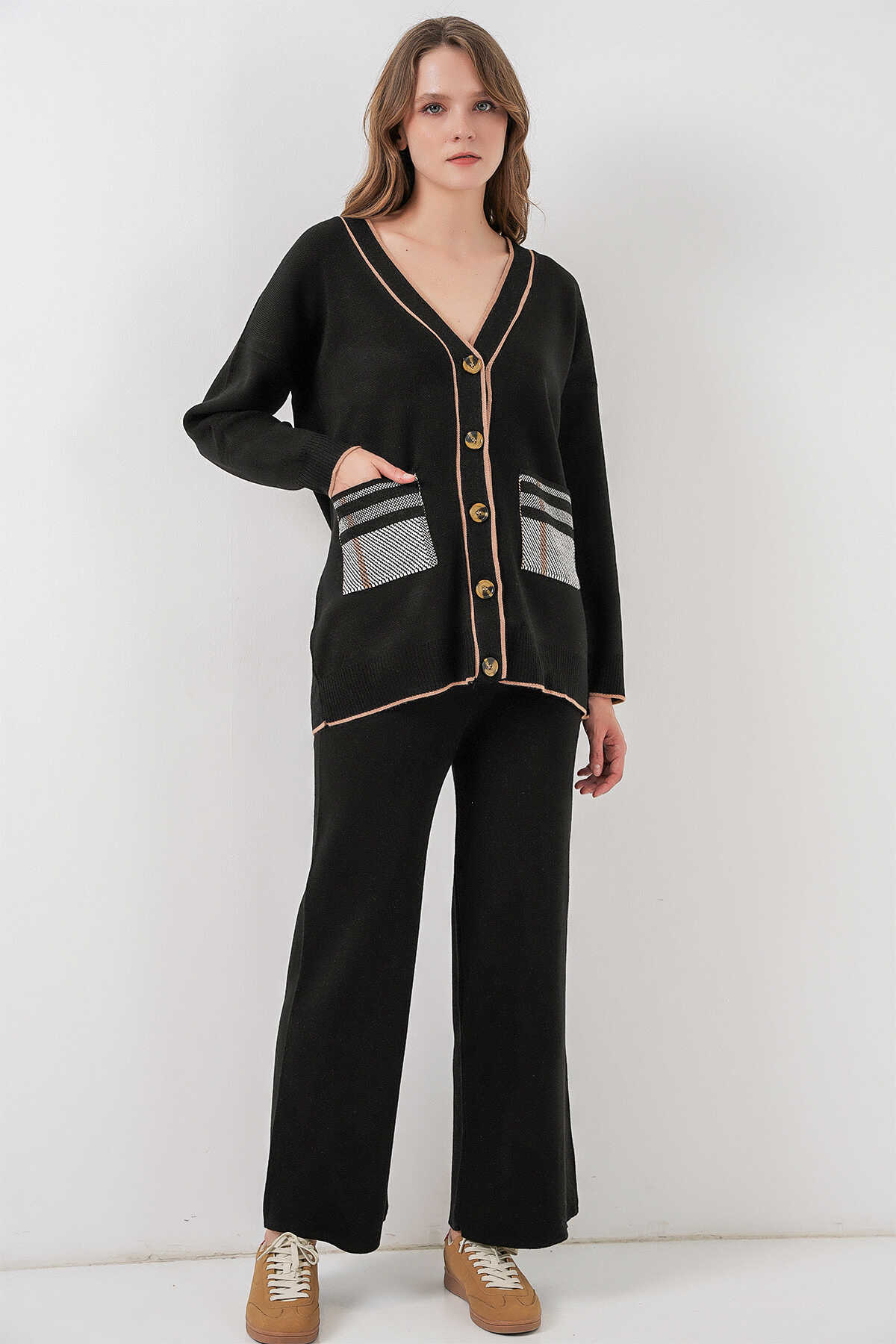 Kadın Cepli Hırka Triko İkili Takım 15964 - Siyah