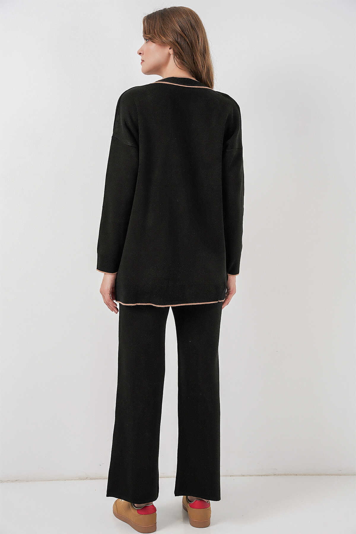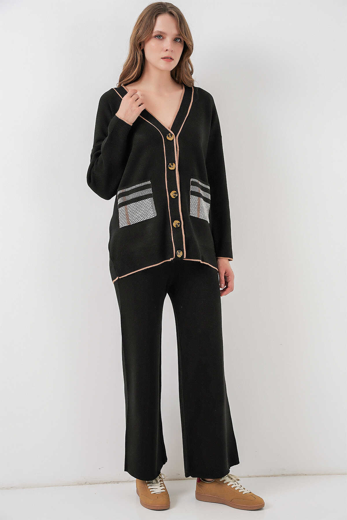 Kadın Cepli Hırka Triko İkili Takım 15964 - Siyah - Kombin