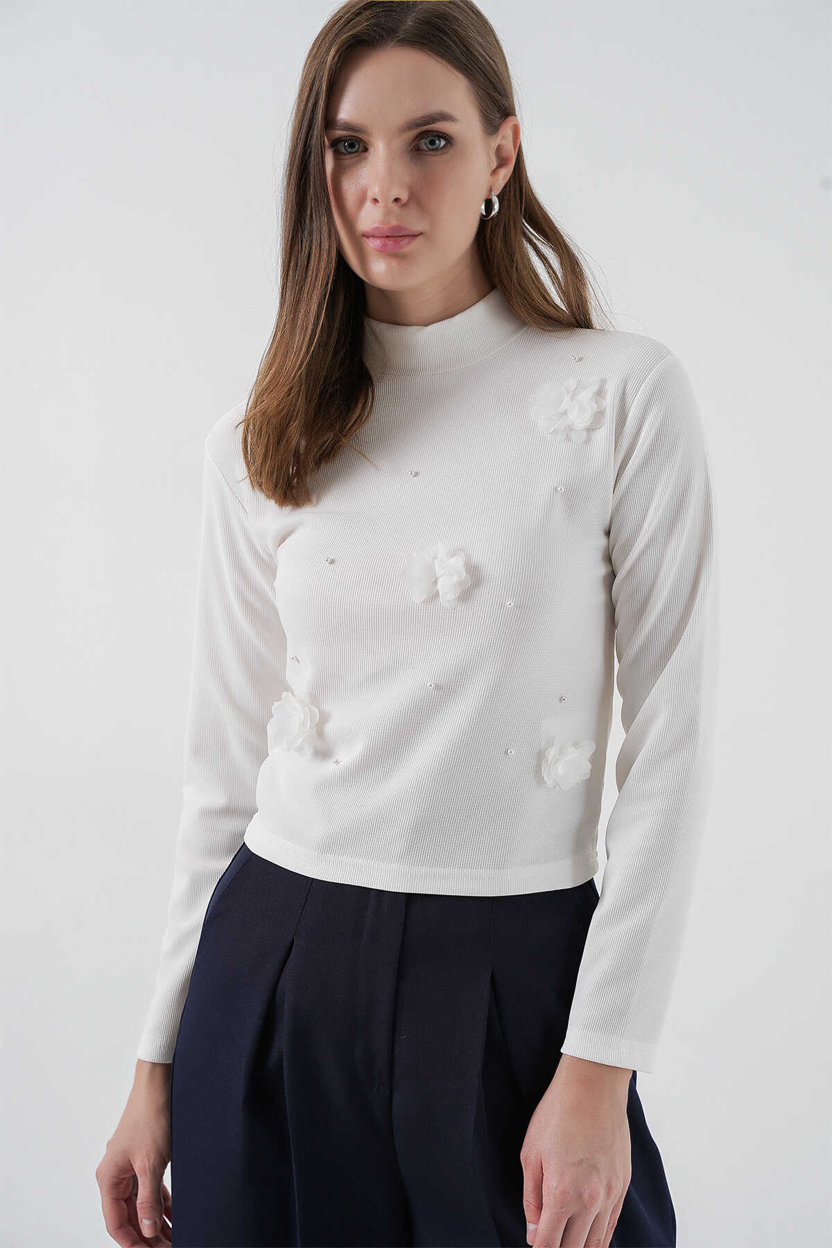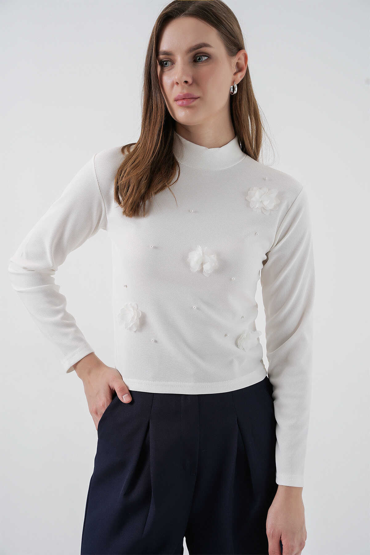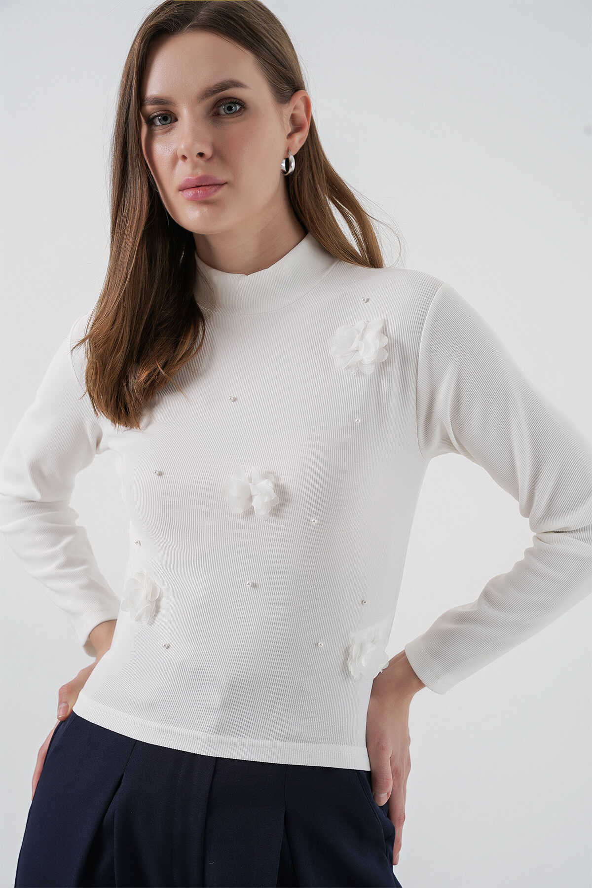 Kadin Çiçekli Örme Bluz 978