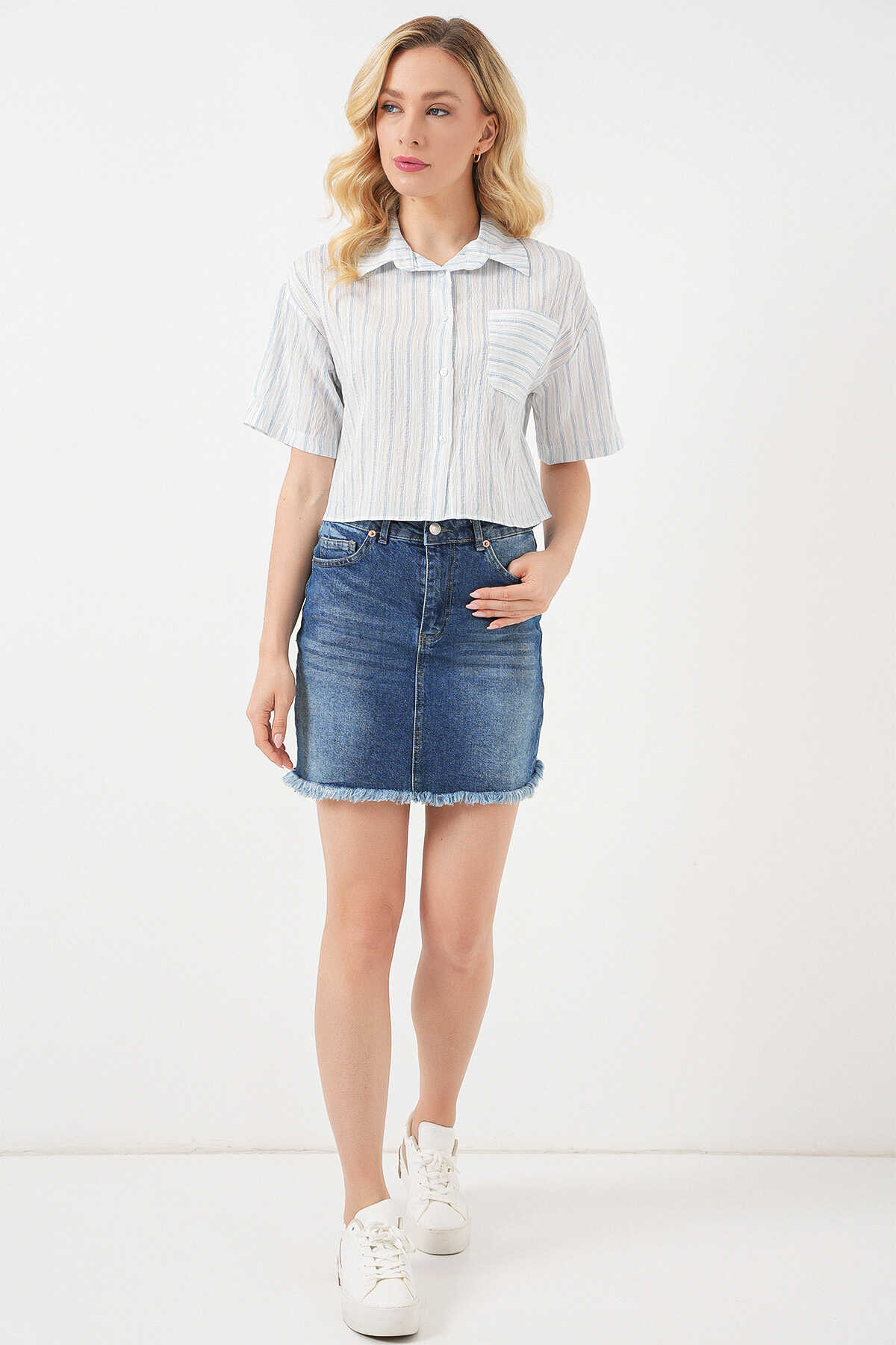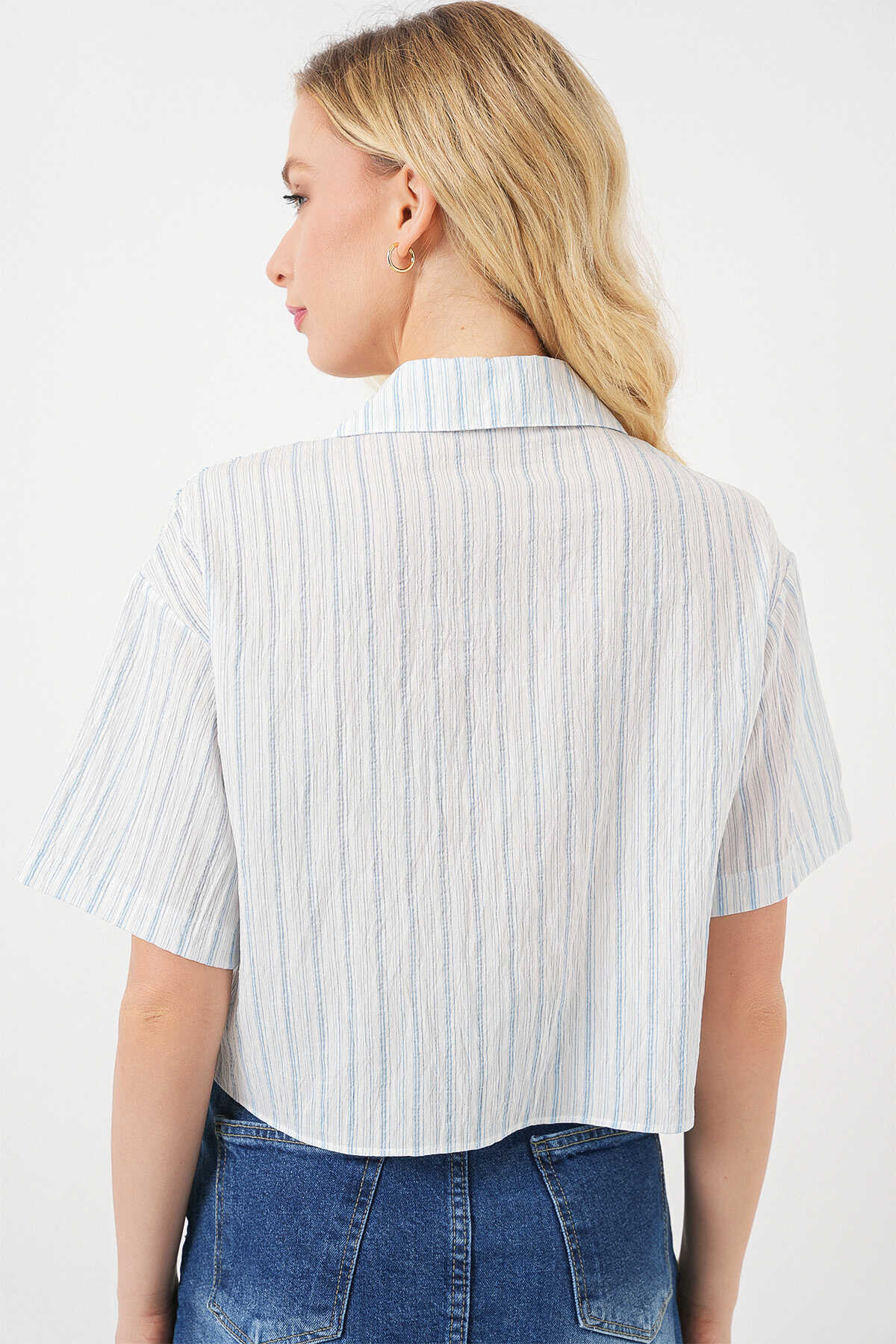 Kadın Çizgili Crop Gömlek 20342 - Açık Mavi