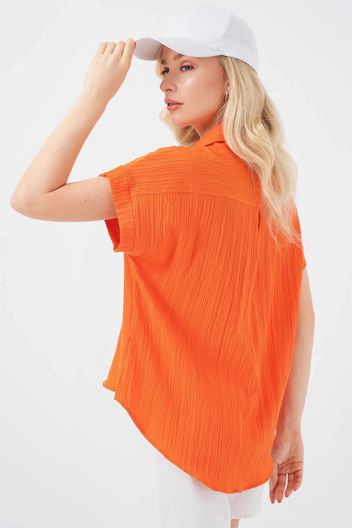 Kadın Çizgili Kısa Kol Gömlek 20324 - Turuncu