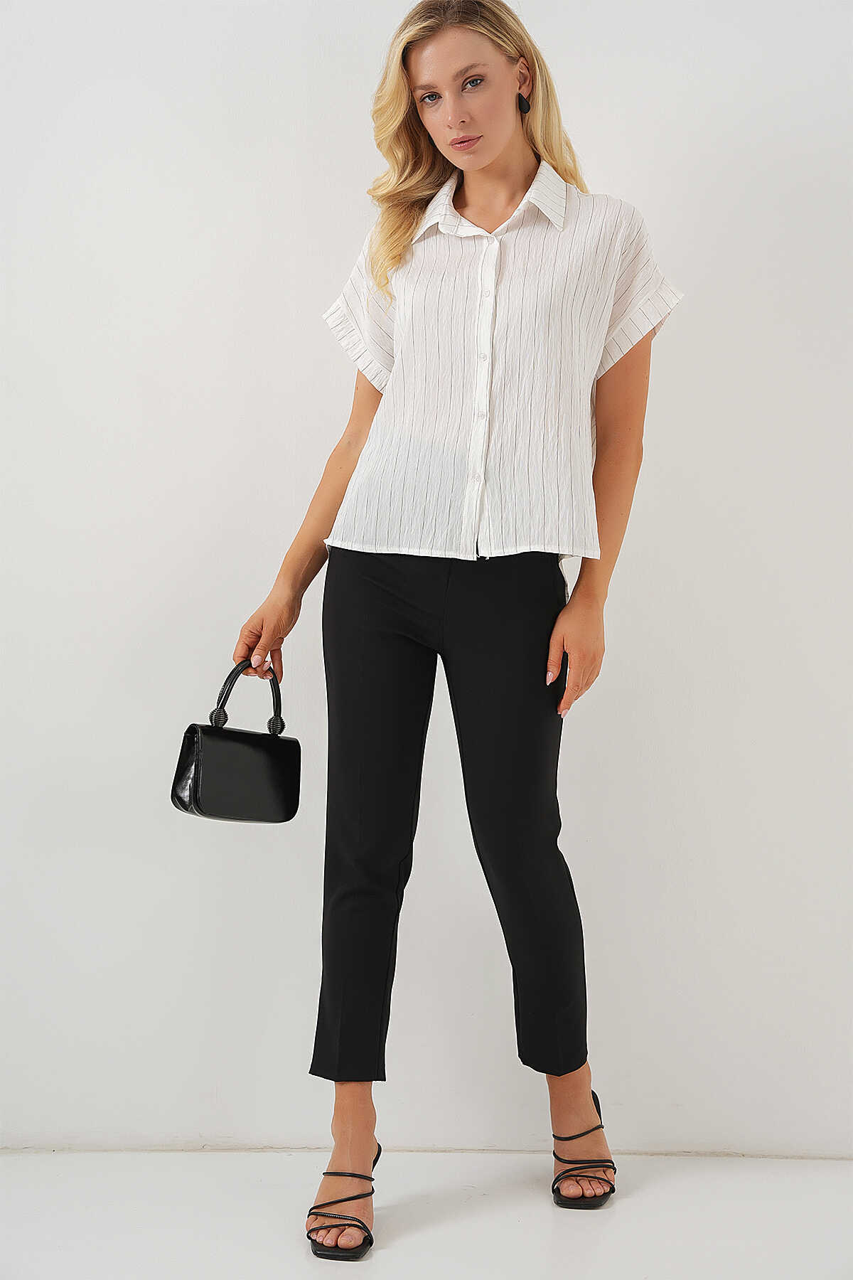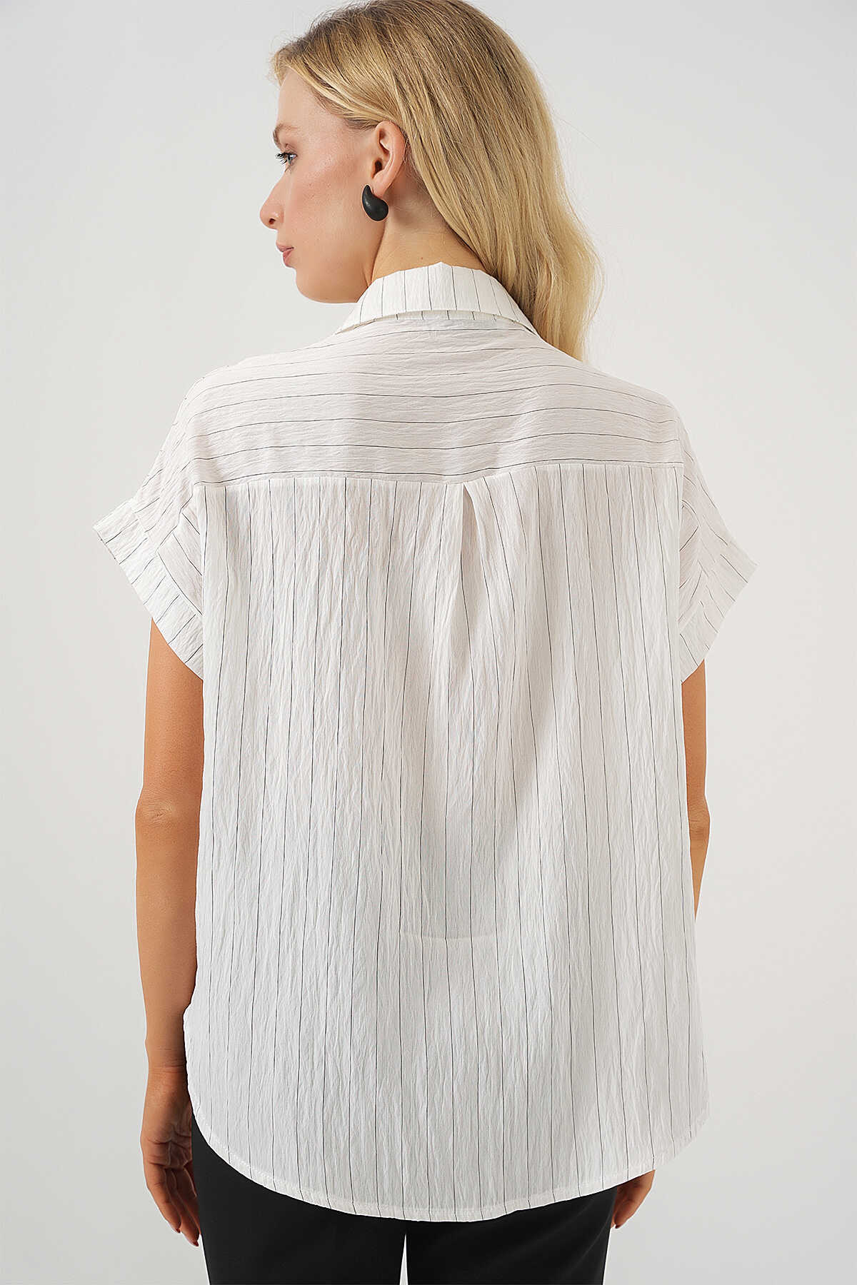Kadin Çizgili Kisa Kol Gömlek