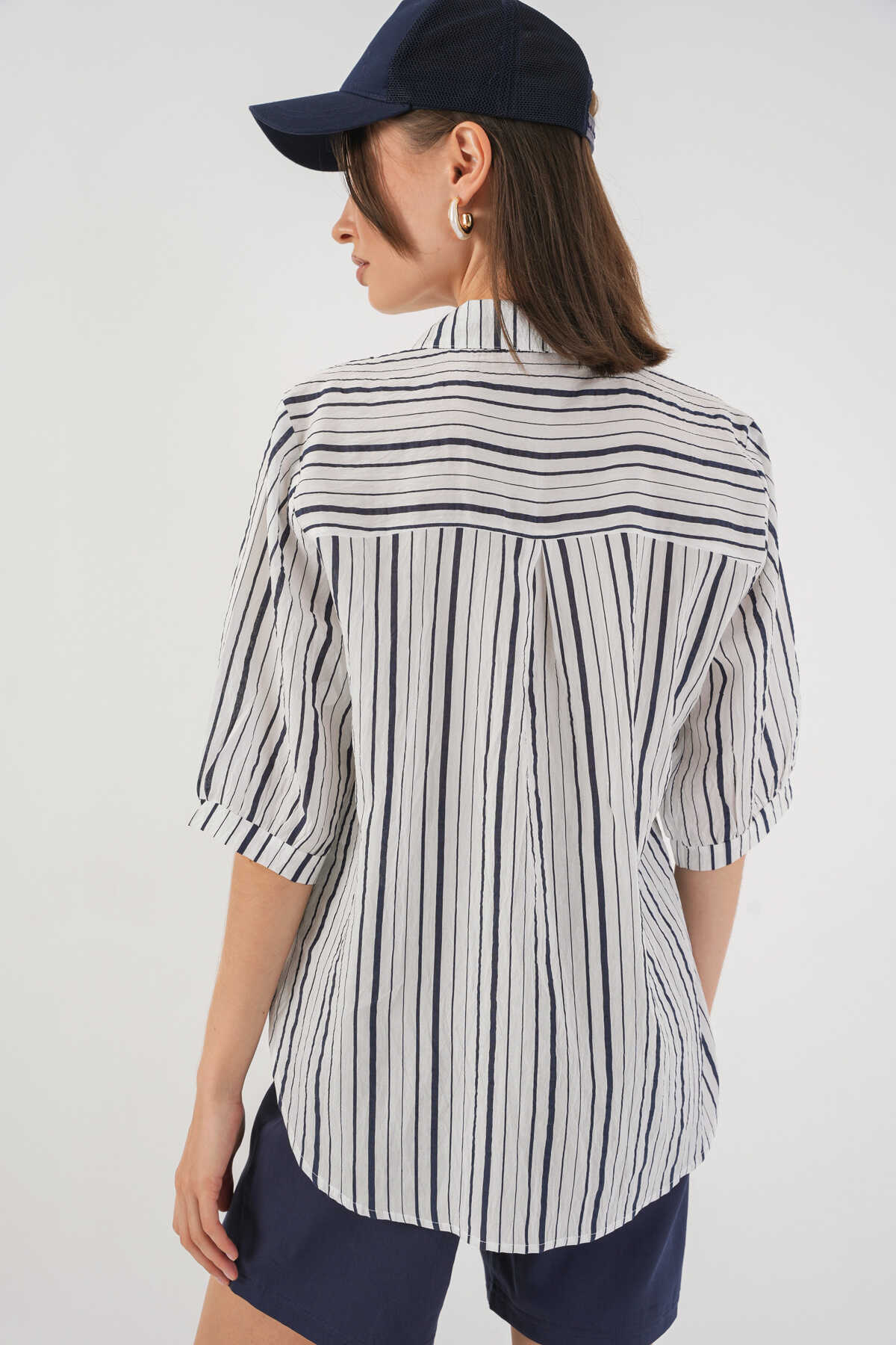 Kadın Çizgili Kısa Kol Gömlek 20345 - F.Lacivert