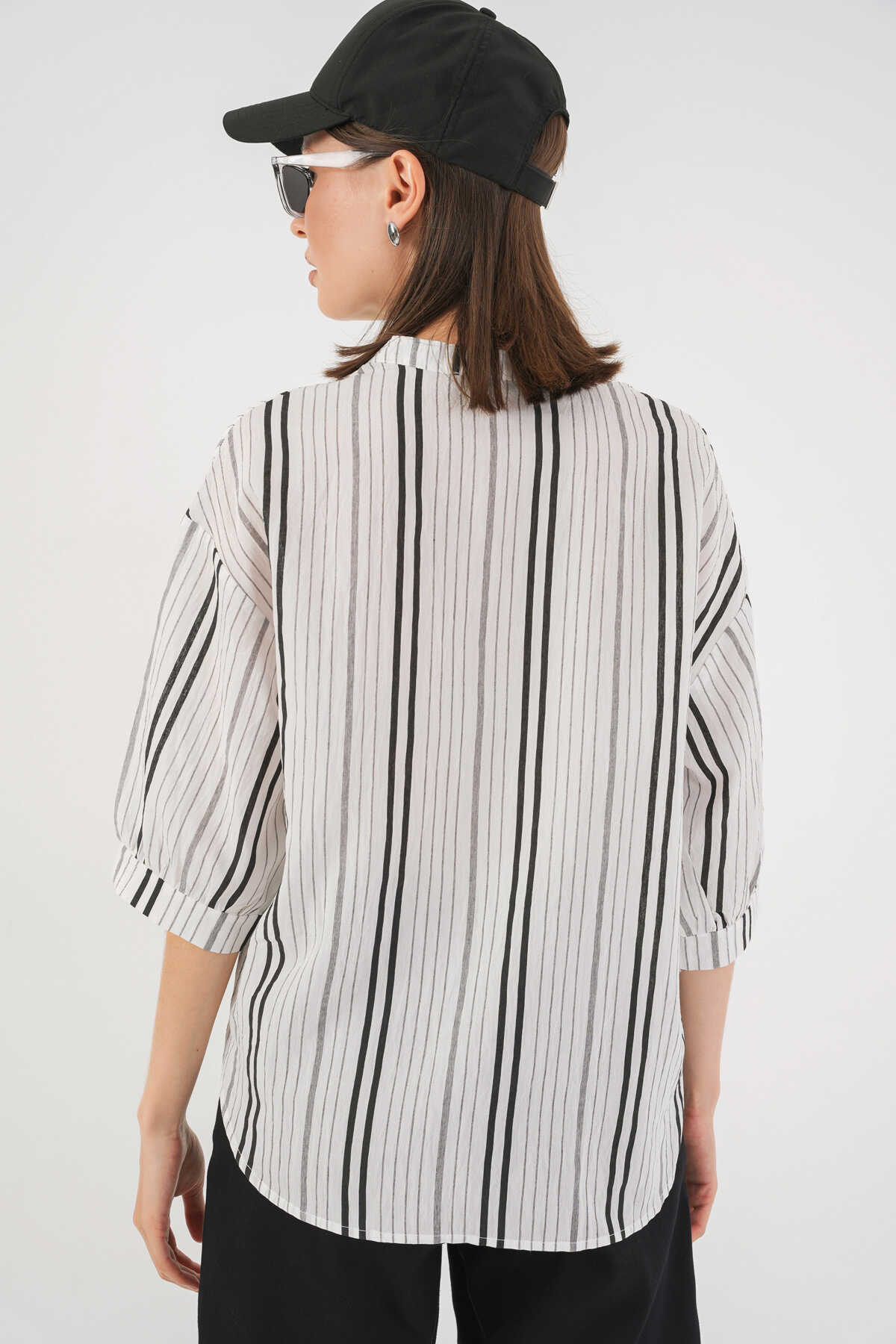 Kadın Çizgili Oversize Bluz 967 - Taş