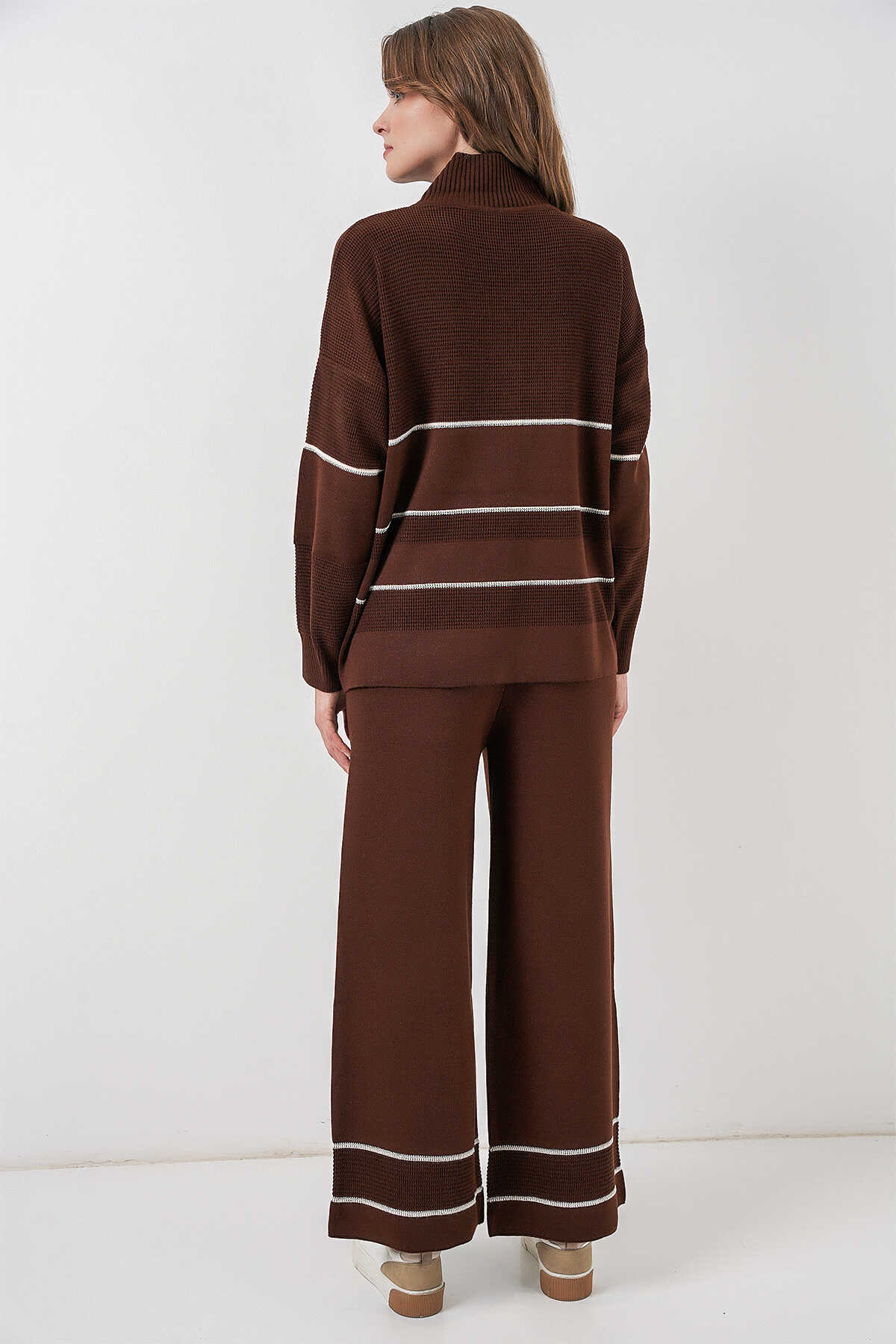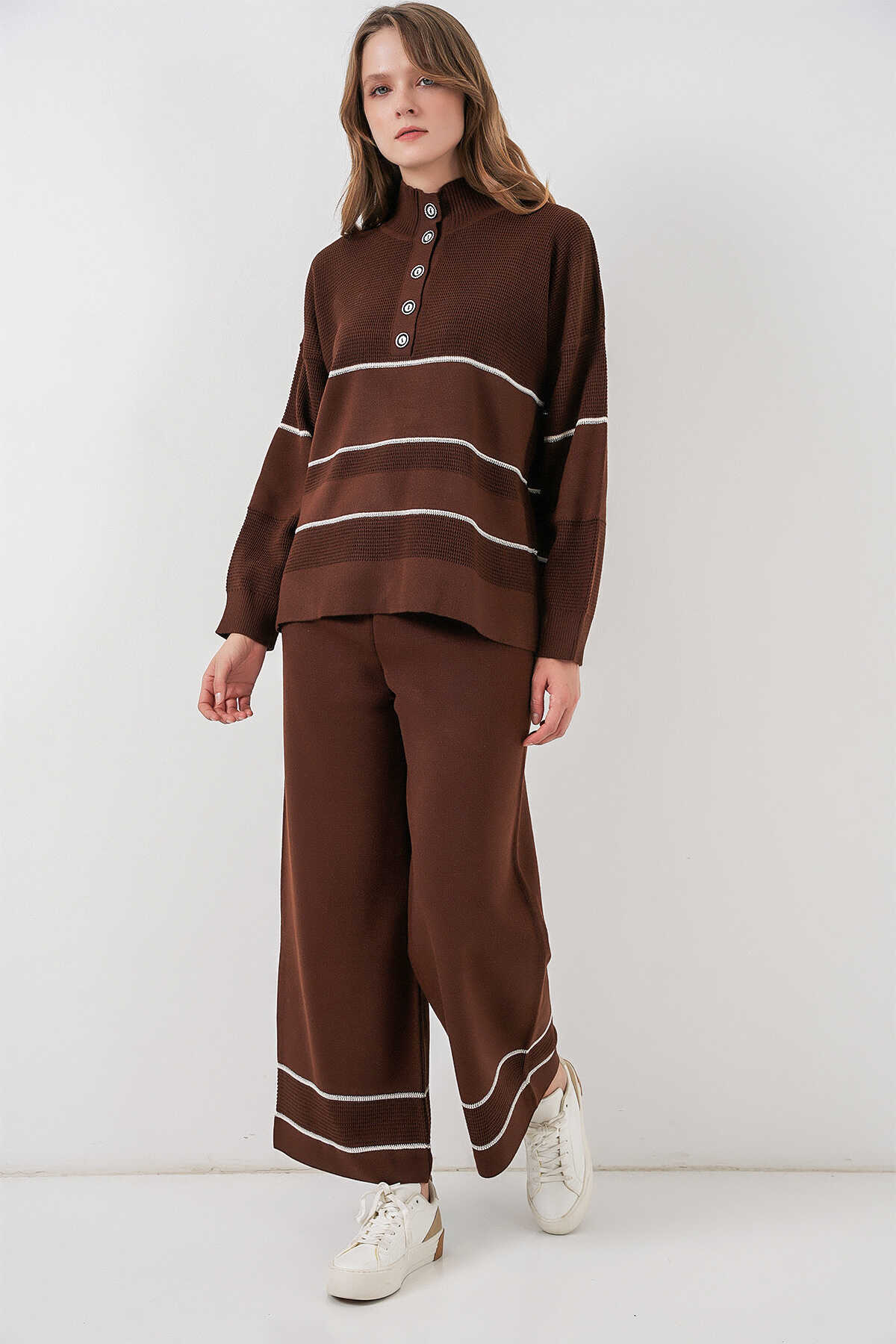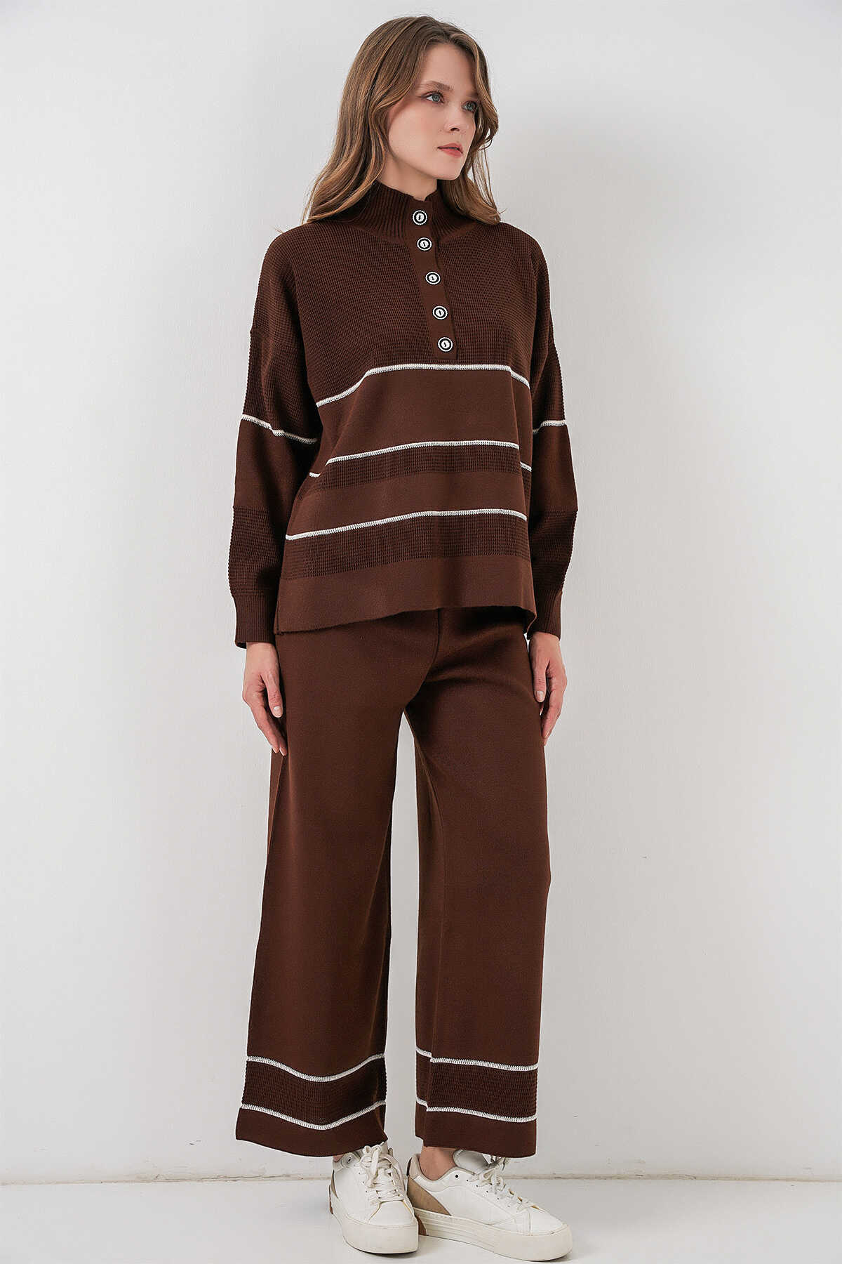 Kadin Çizgili Oversize Triko Ikili Takim 15957