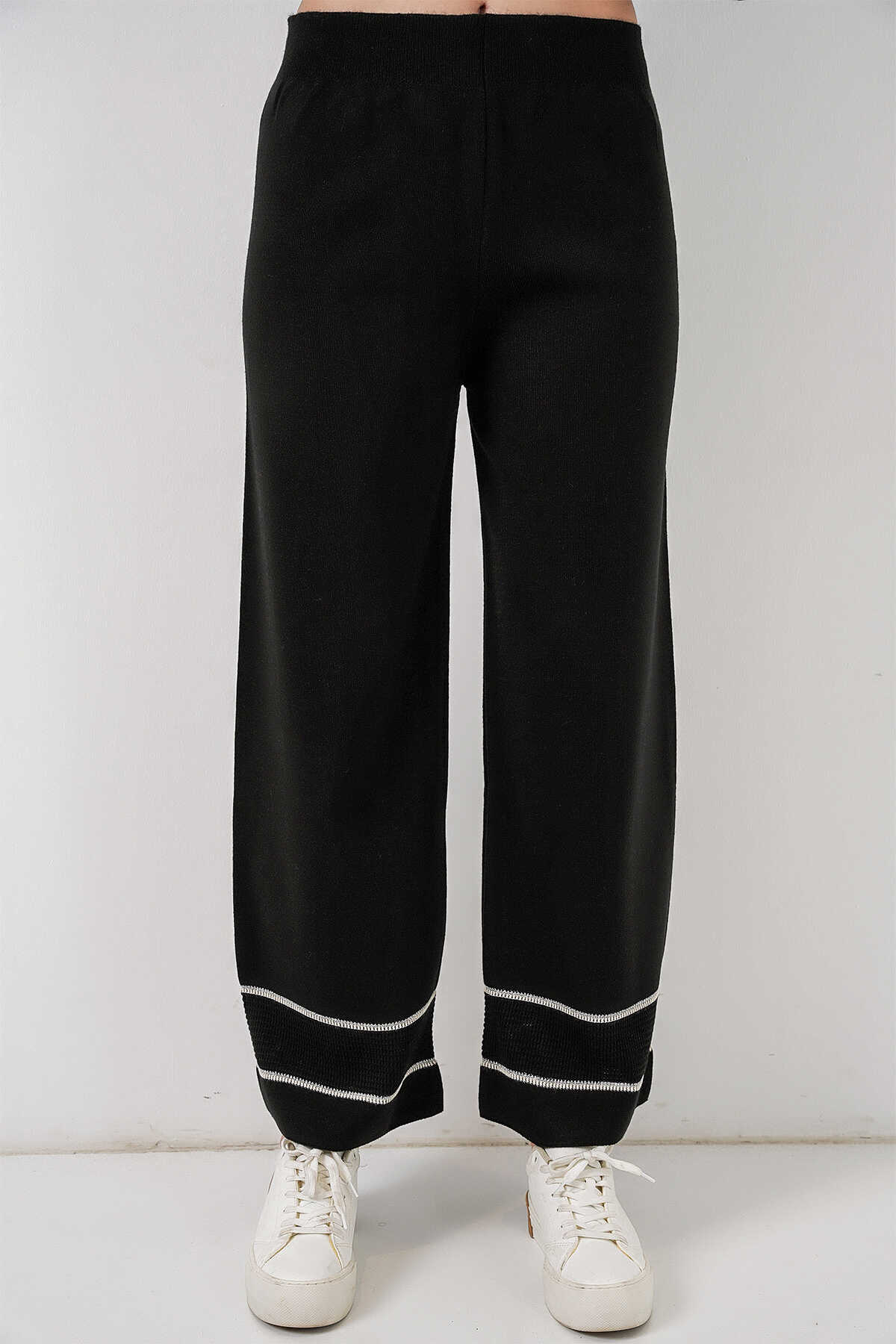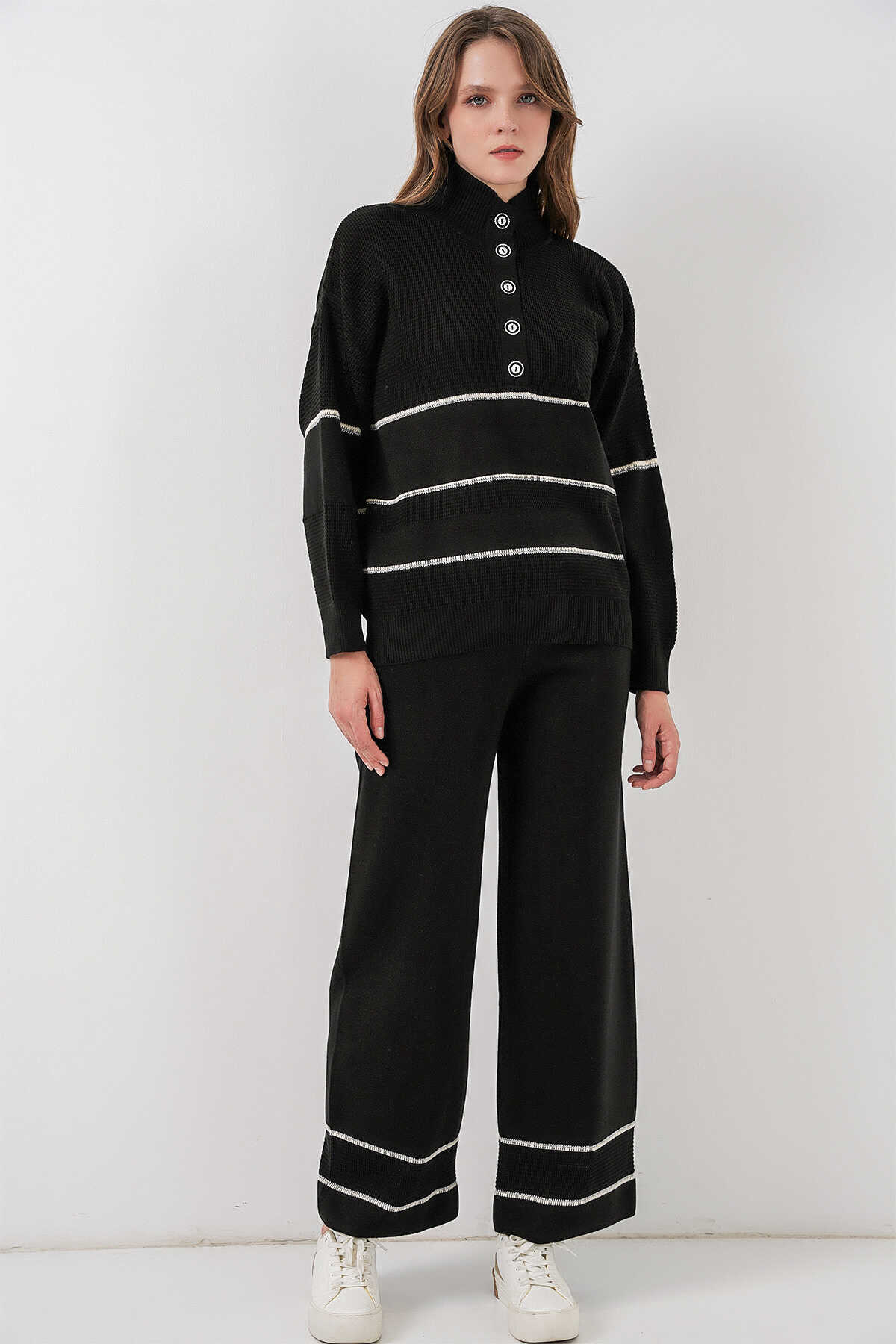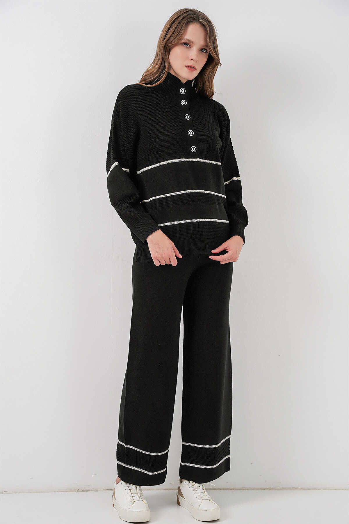 Kadın Çizgili Oversize Triko İkili Takım 15957 - Siyah - Kombin