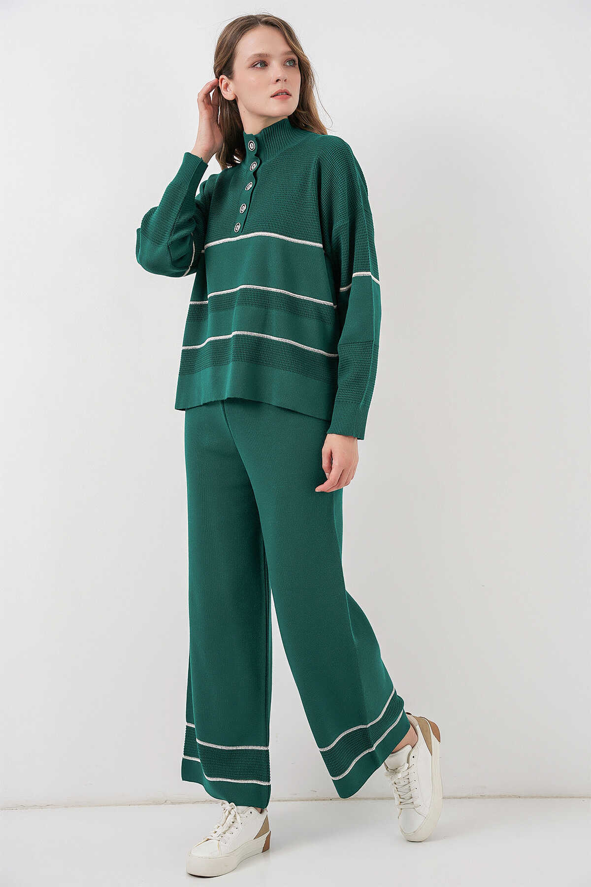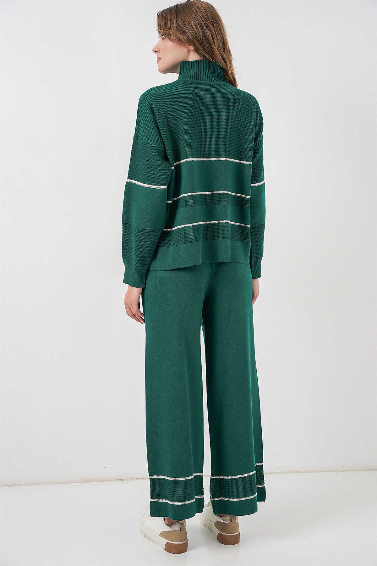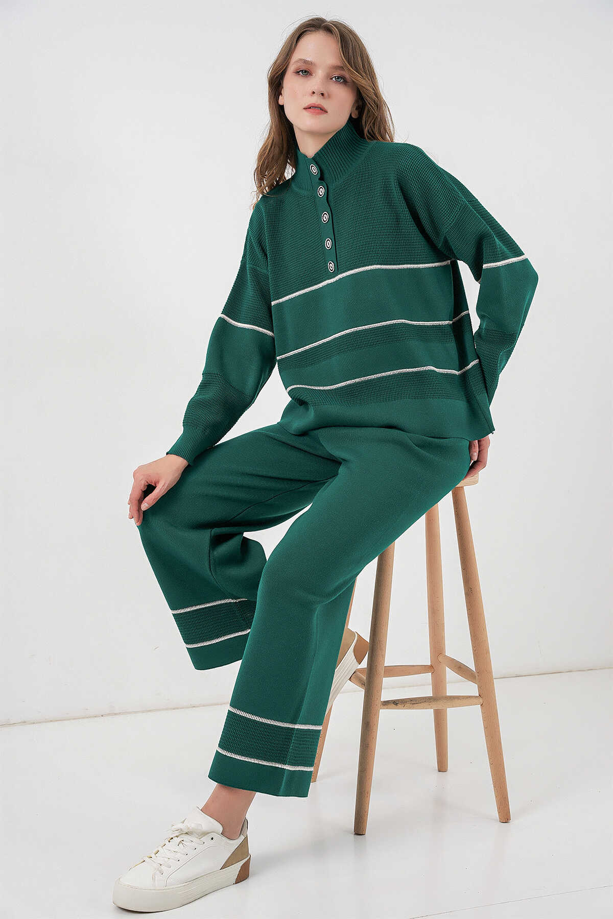 Kadin Çizgili Oversize Triko Ikili Takim 15957