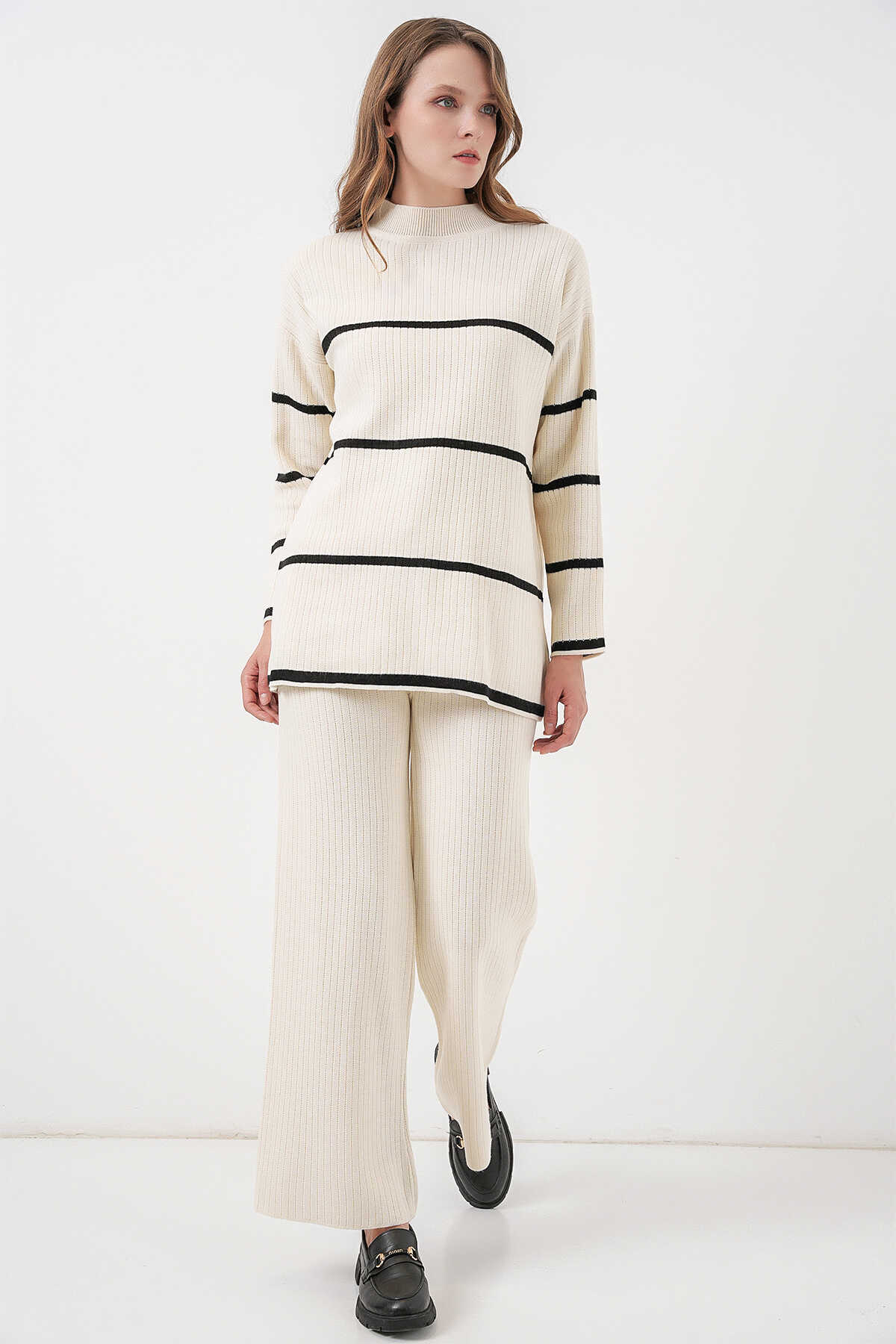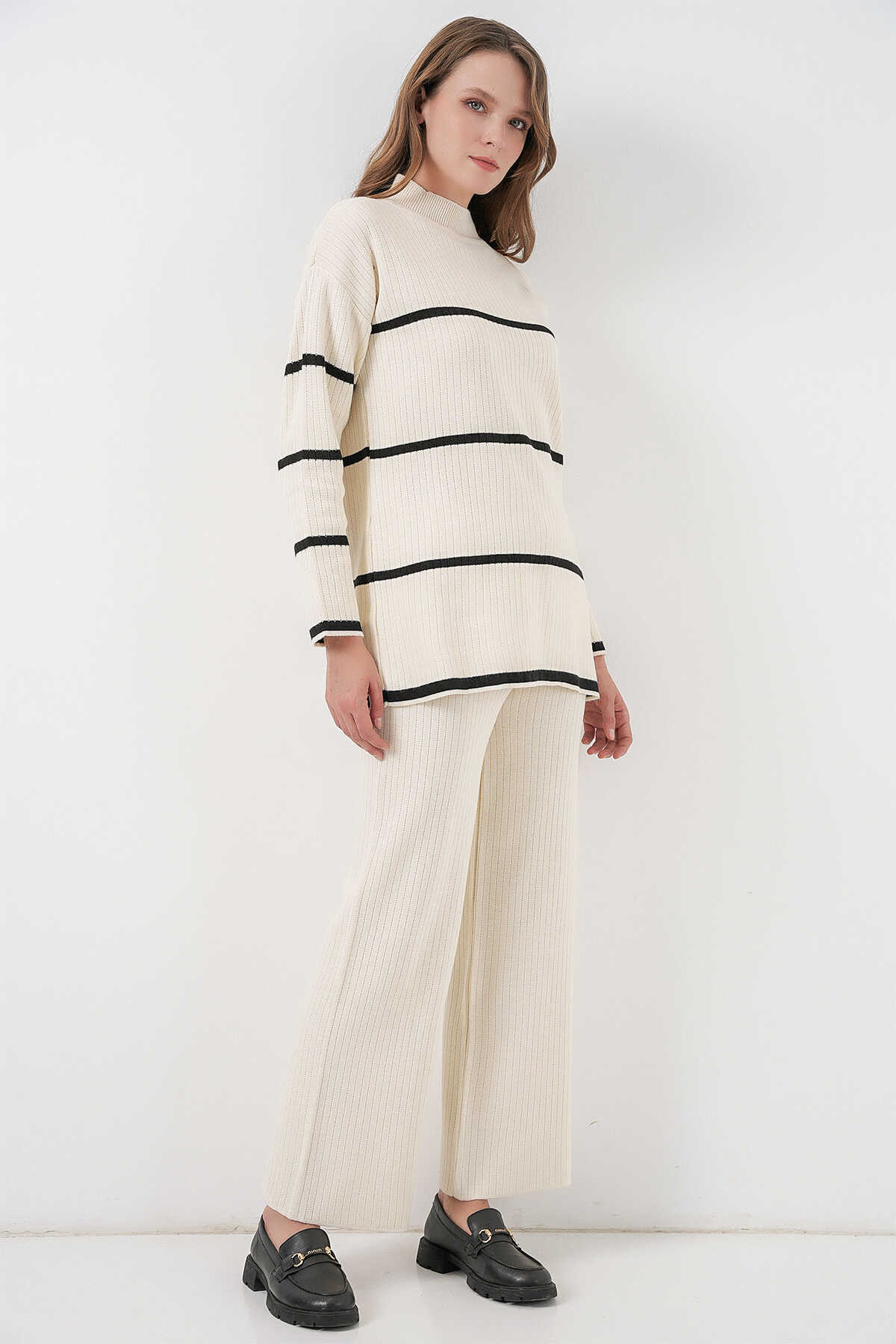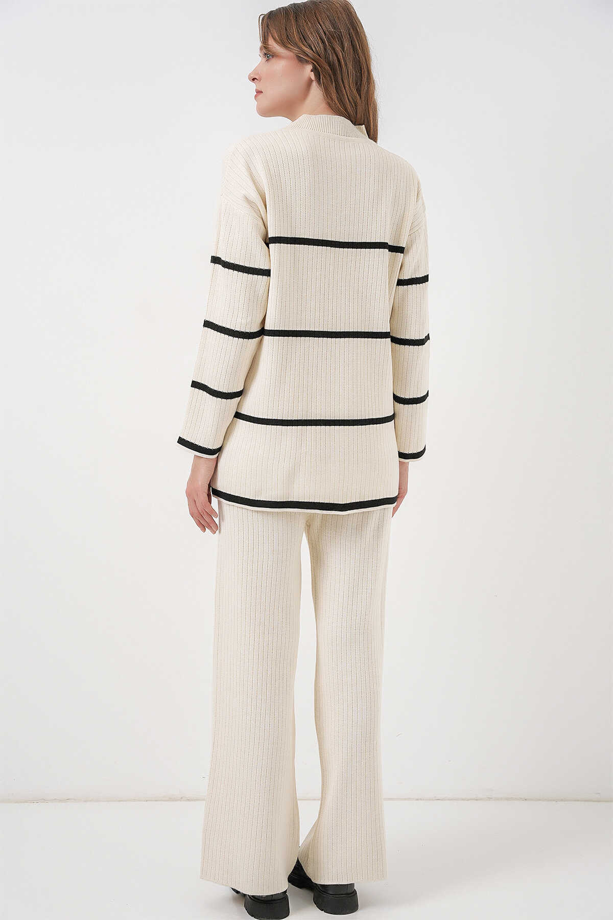 Kadin Çizgili Oversize Triko Ikili Takim 15959