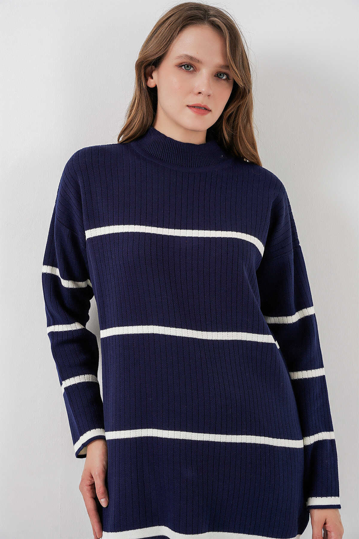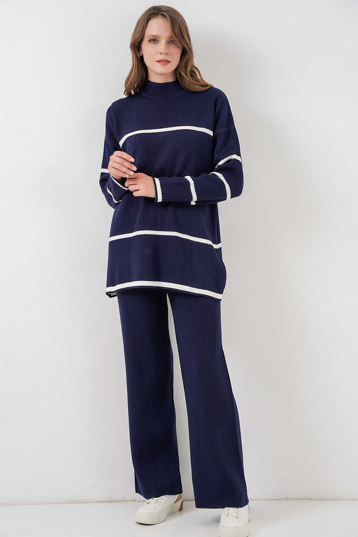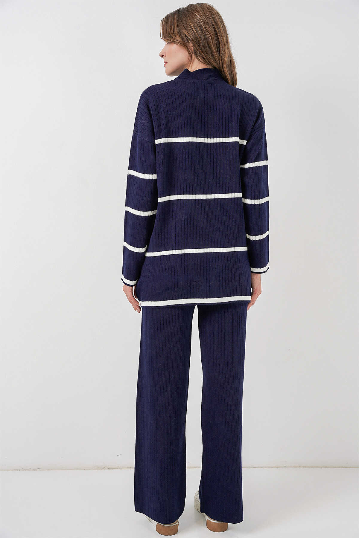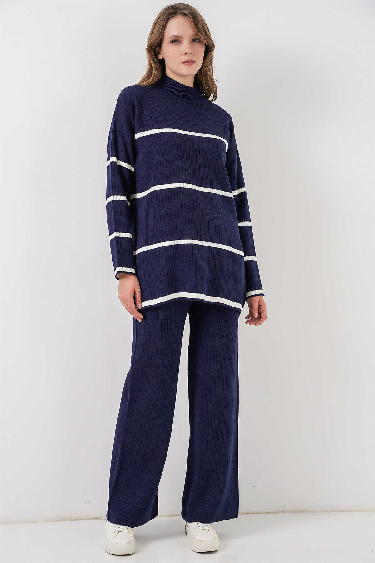 Kadin Çizgili Oversize Triko Ikili Takim 15959