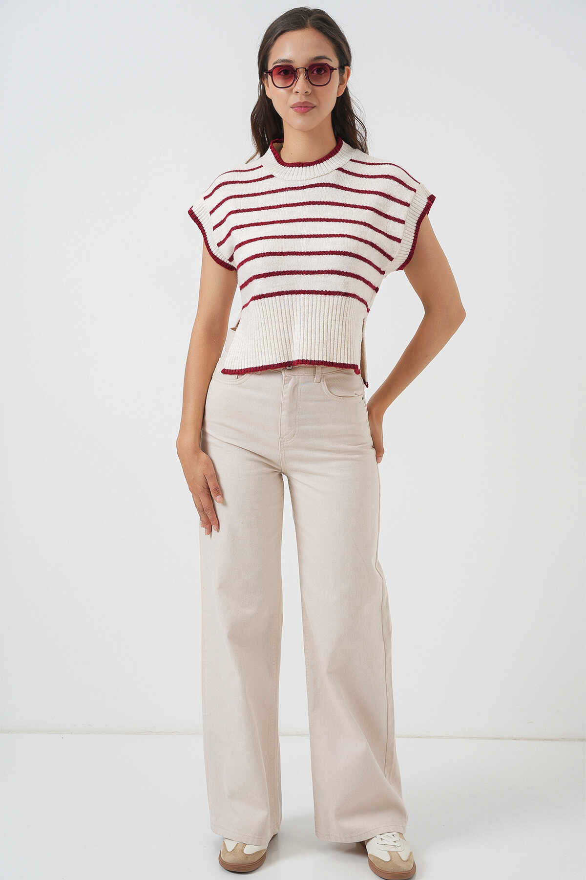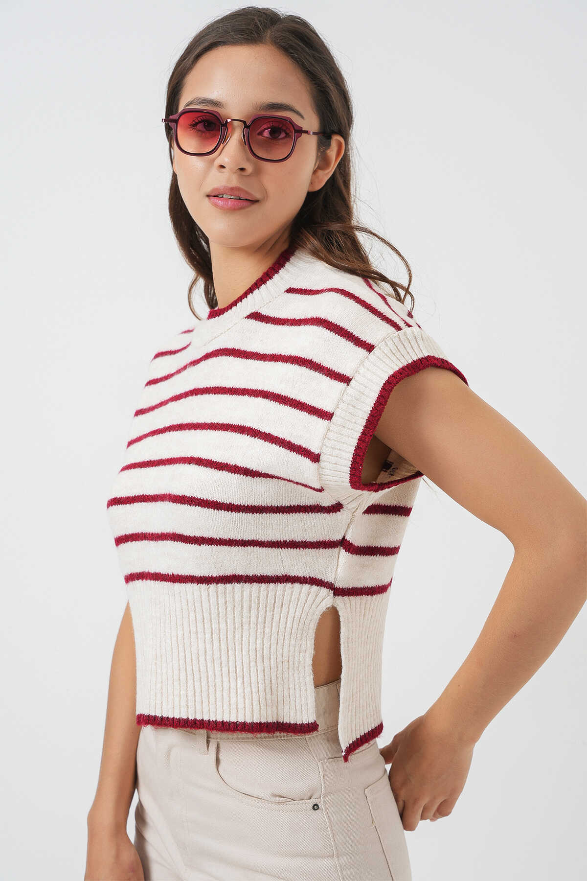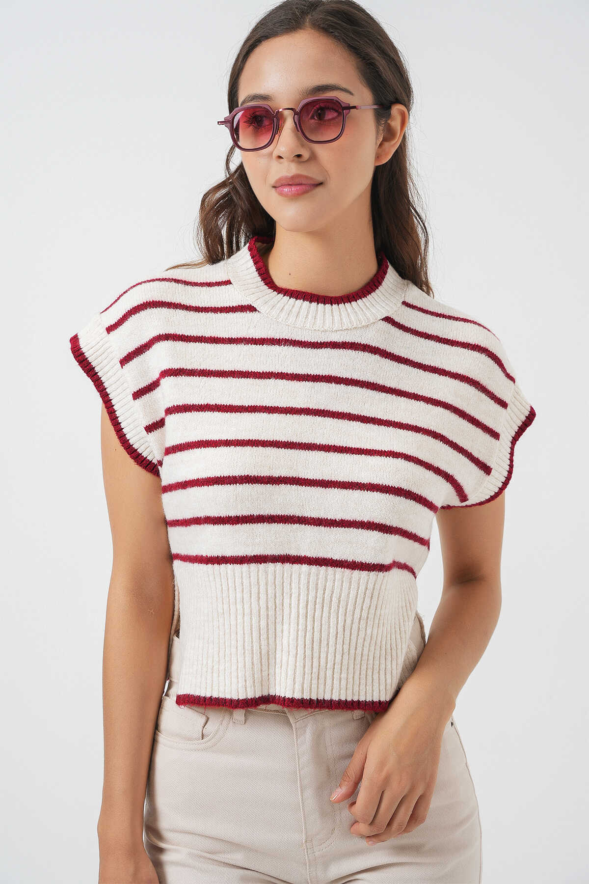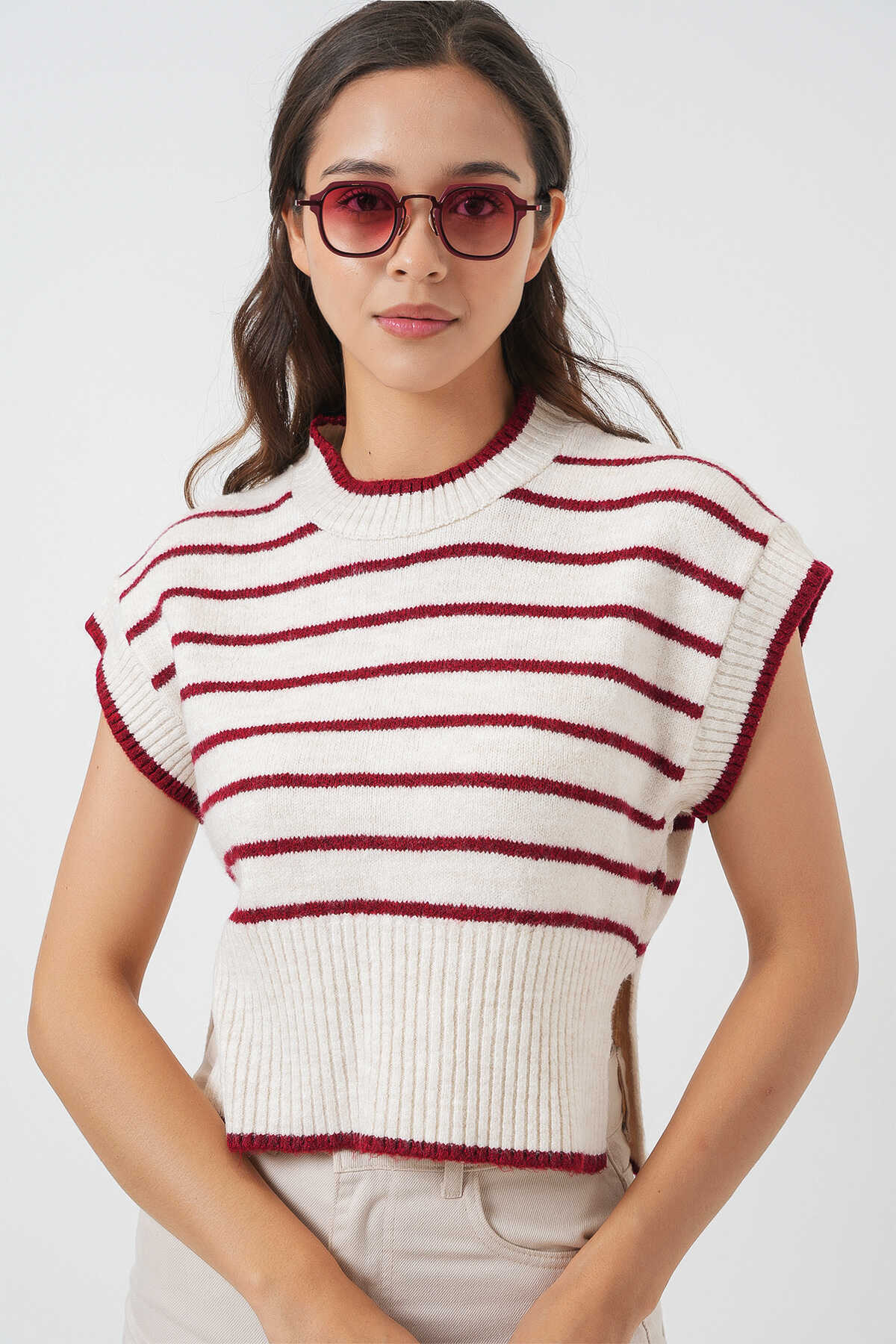 Kadin Çizgili Triko Süveter