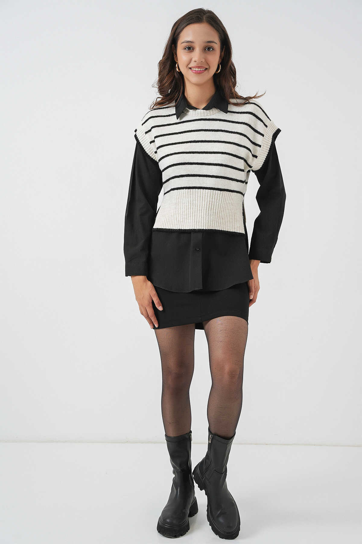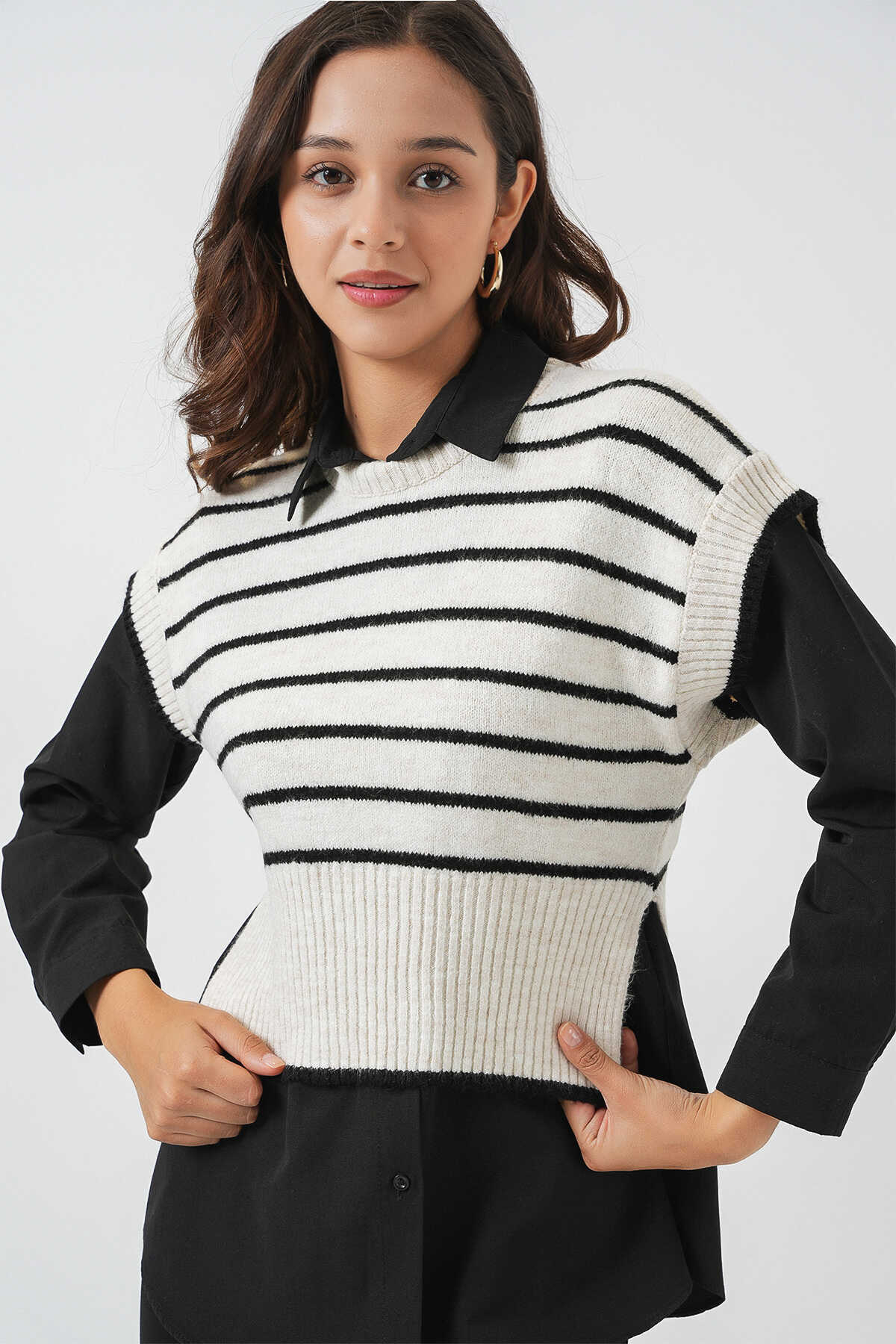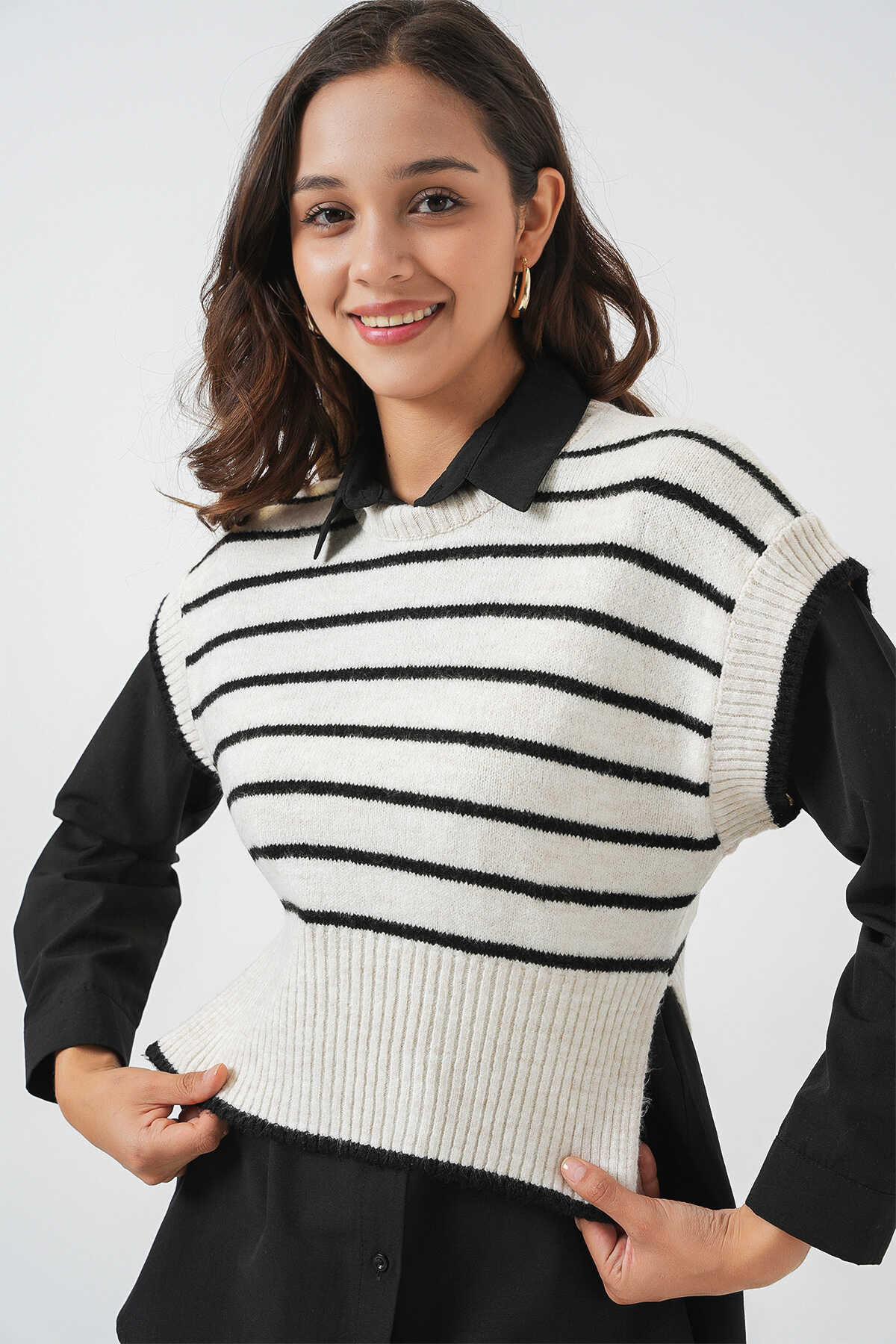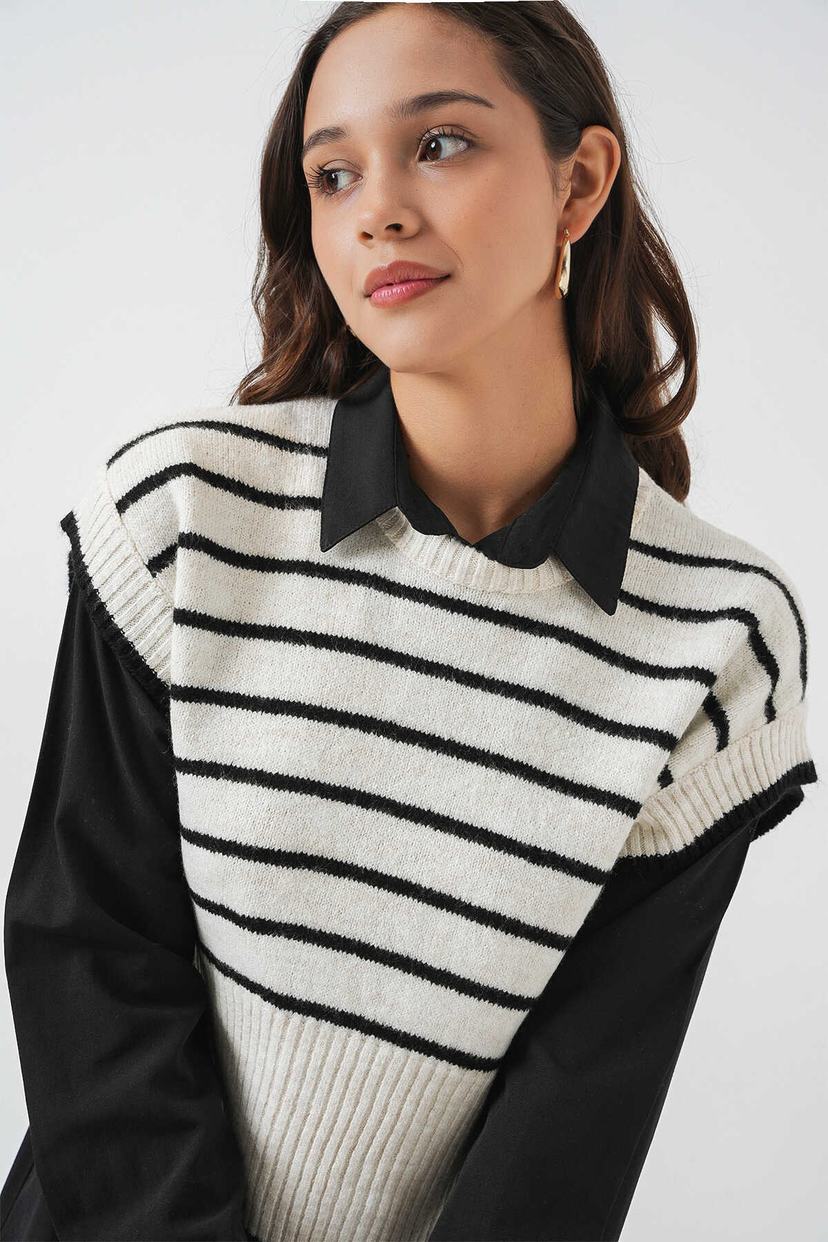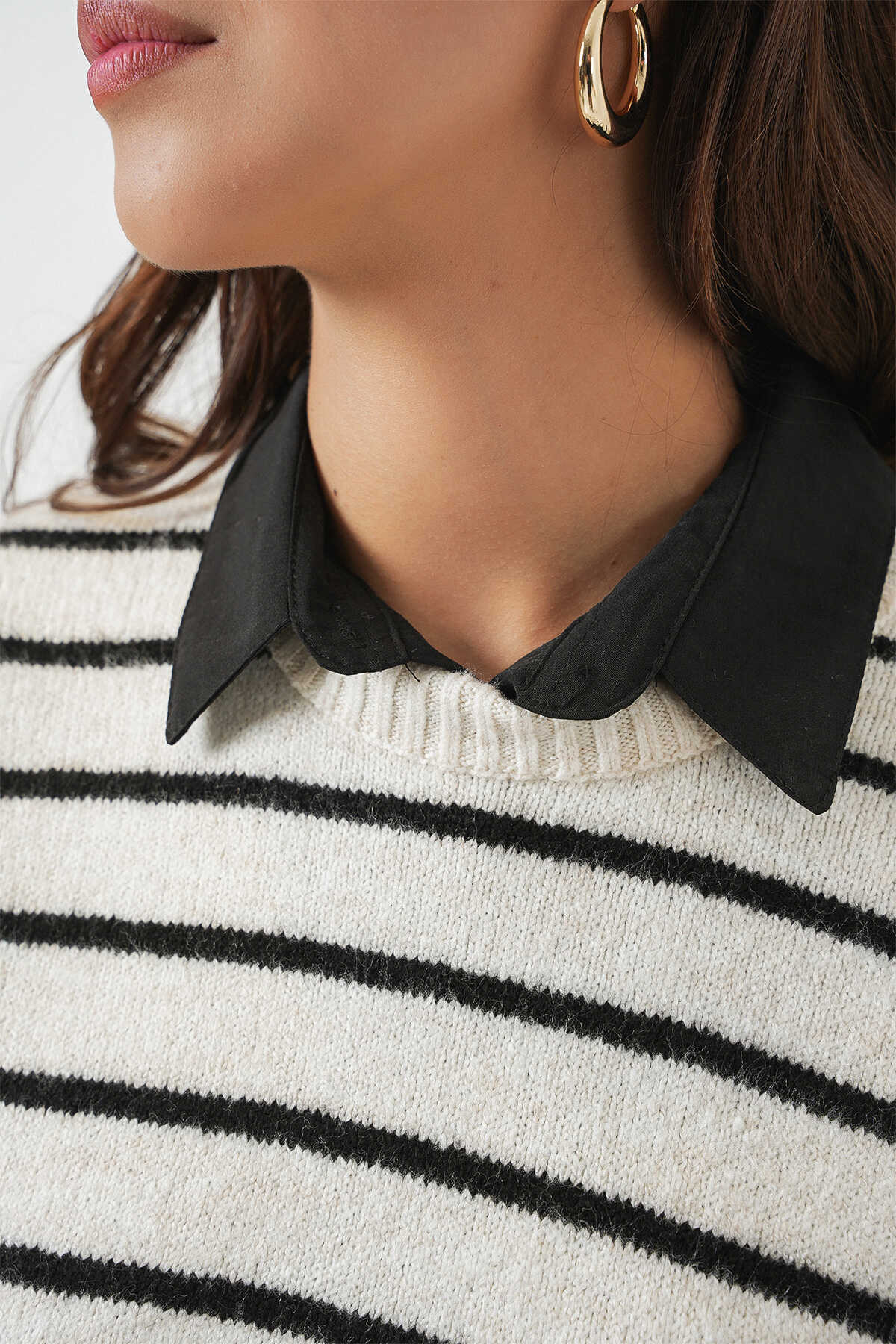 Kadin Çizgili Triko Süveter