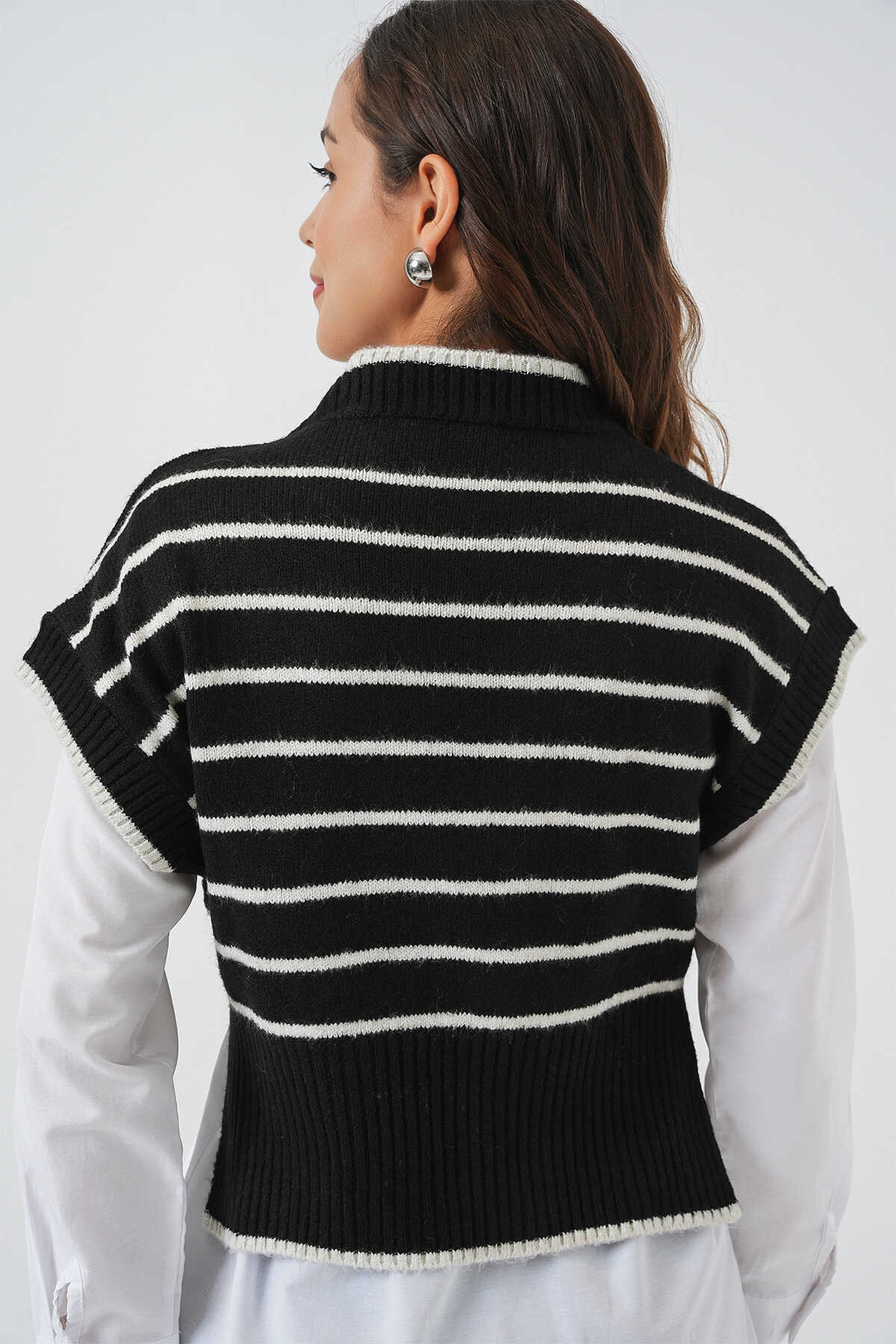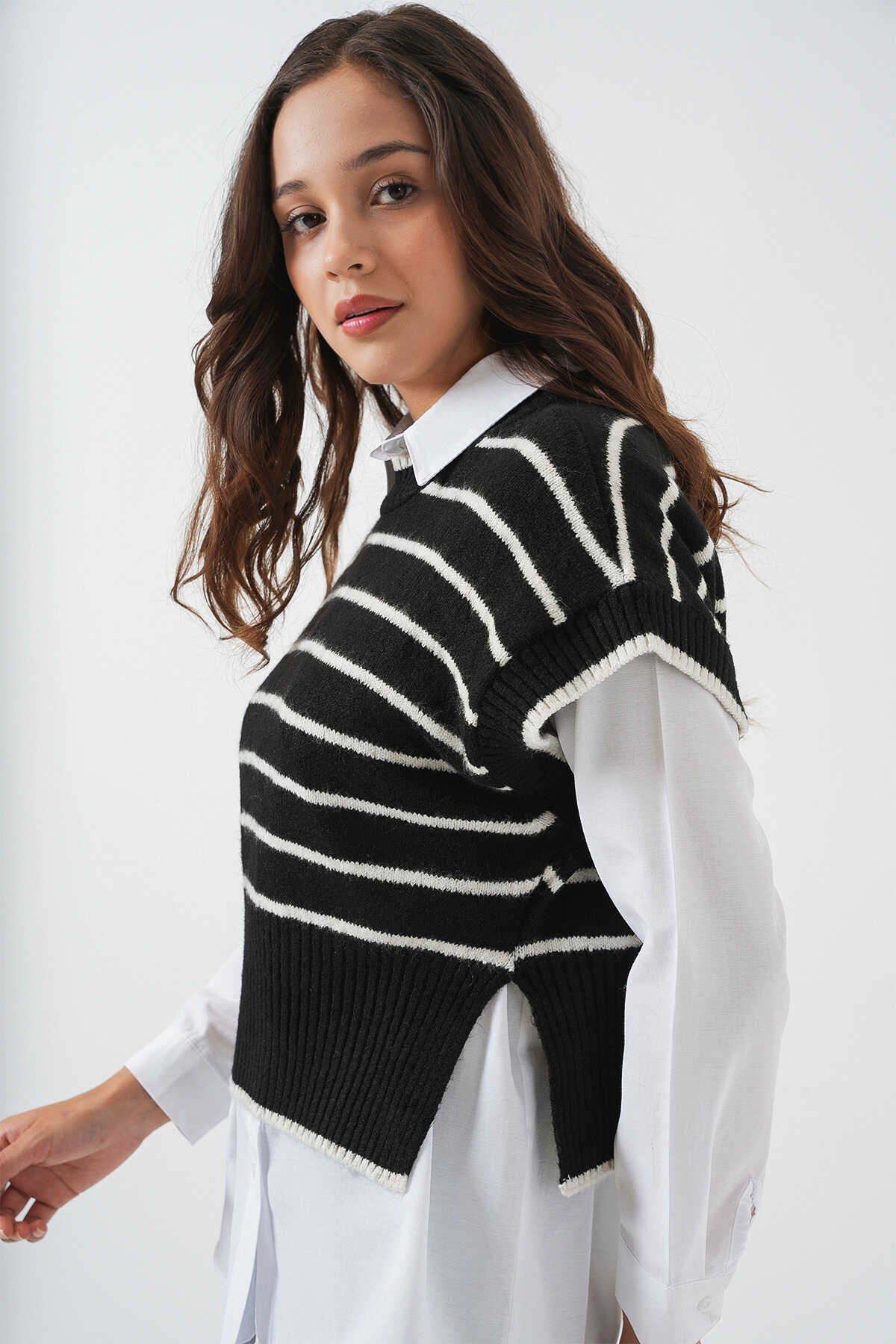 Kadın Çizgili Triko Süveter 15926 - Siyah - Kombin
