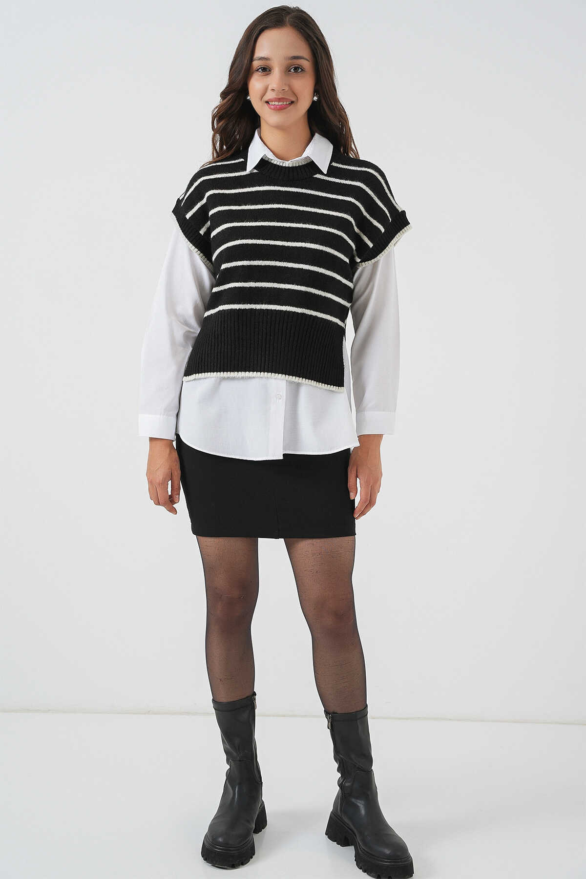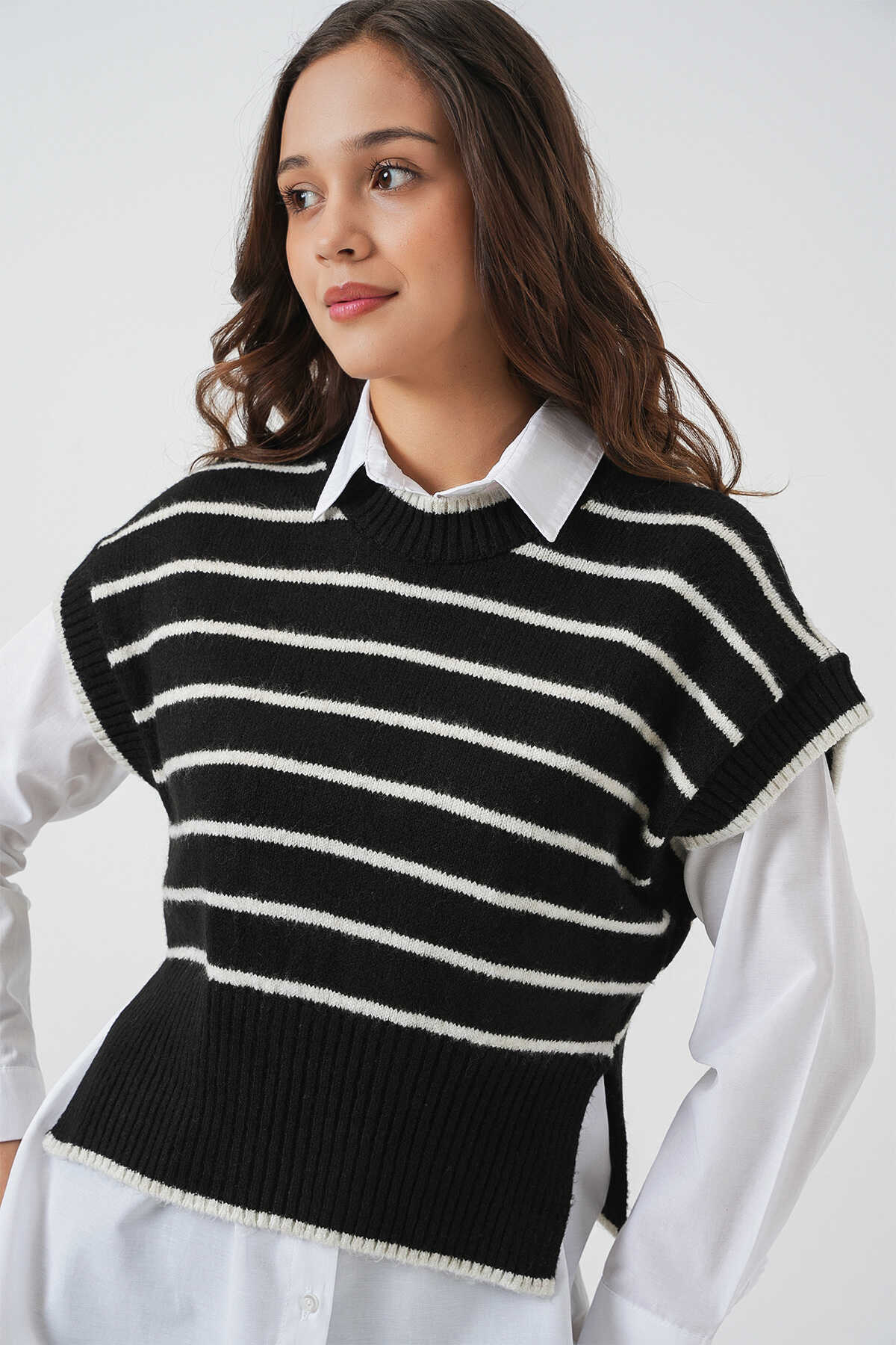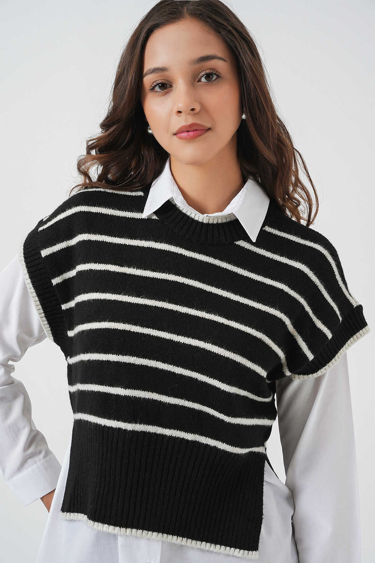 Kadin Çizgili Triko Süveter
