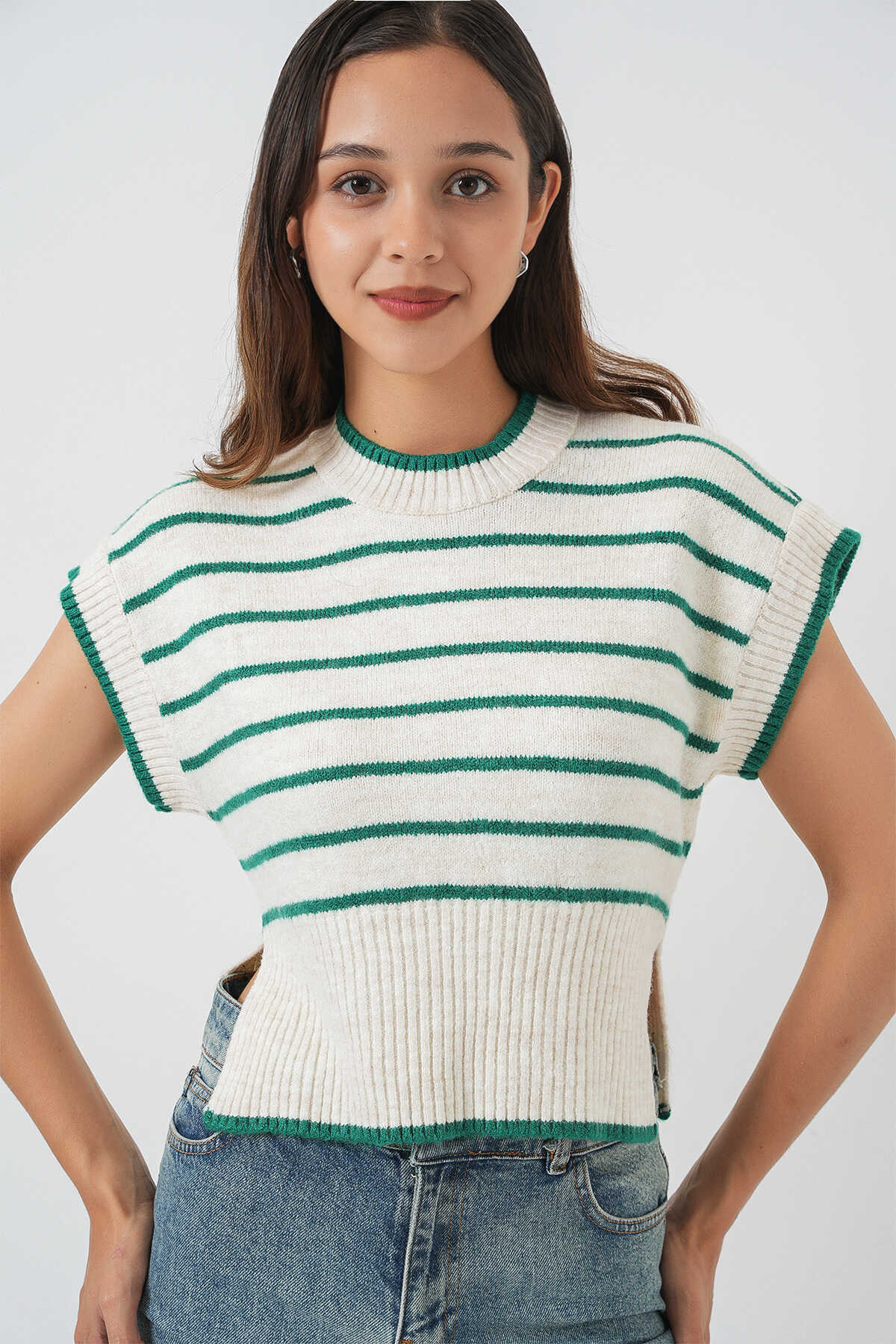 Kadin Çizgili Triko Süveter
