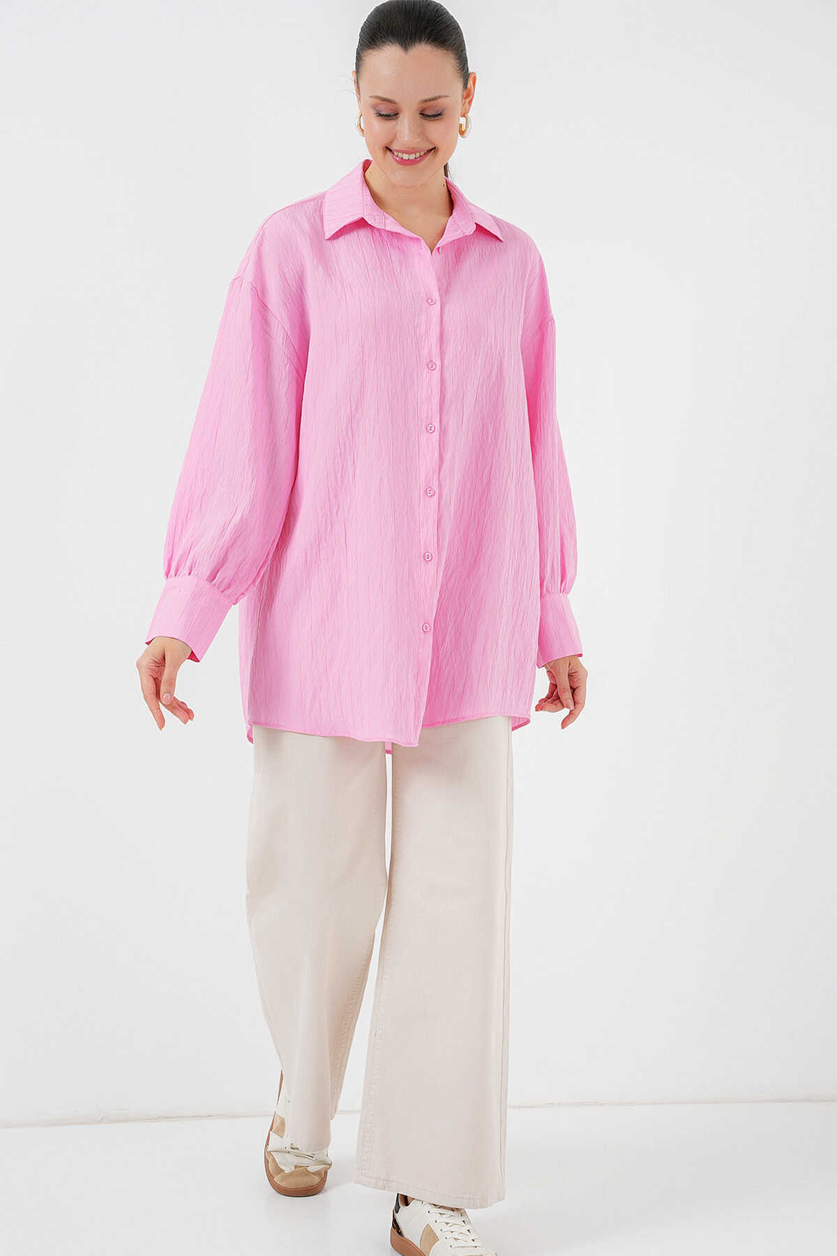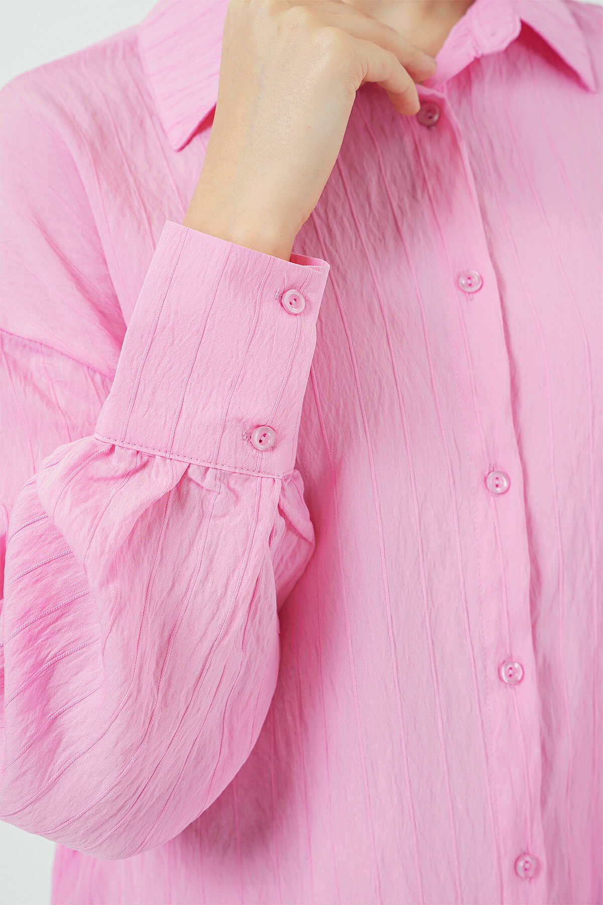 Kadın Çizgili Uzun Gömlek Tunik 5963 - Pembe - Kombin