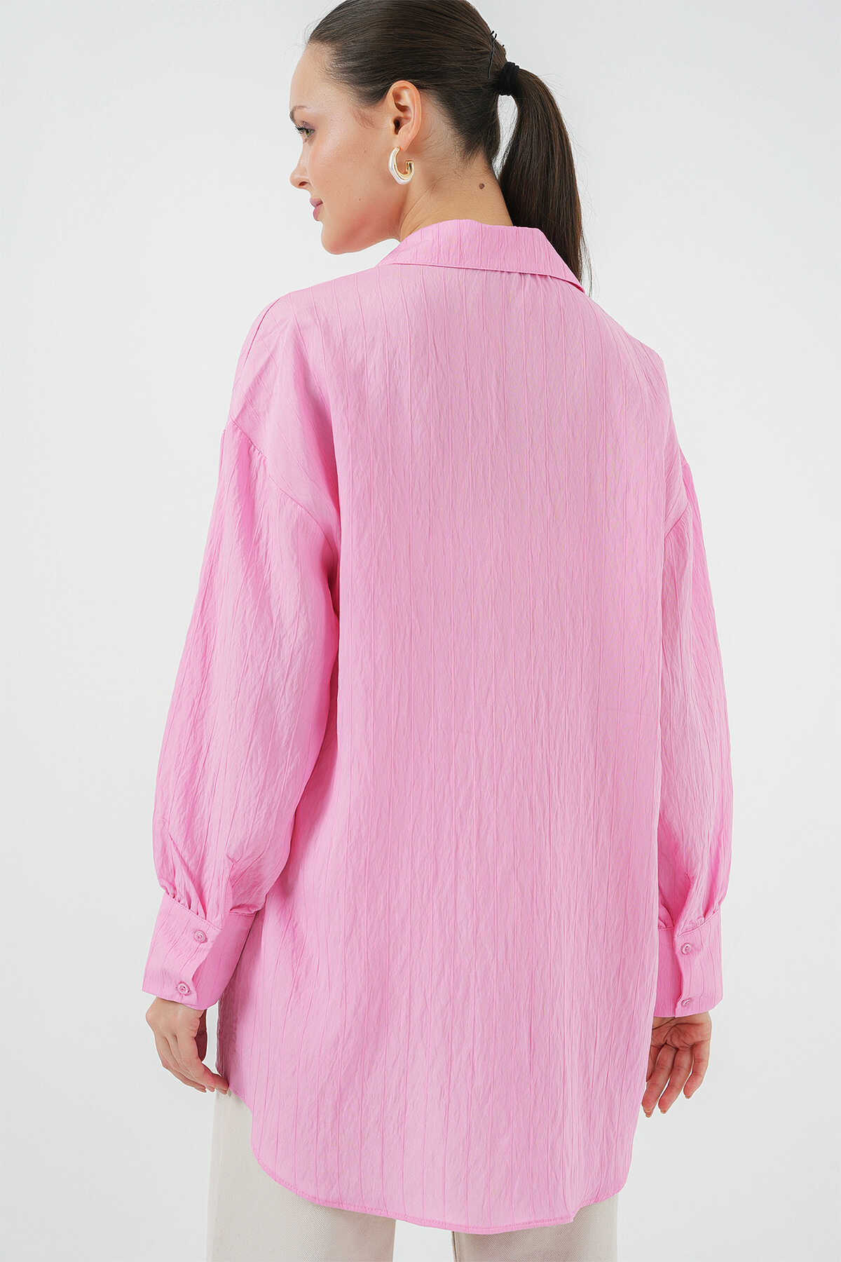 Kadın Çizgili Uzun Gömlek Tunik 5963 - Pembe