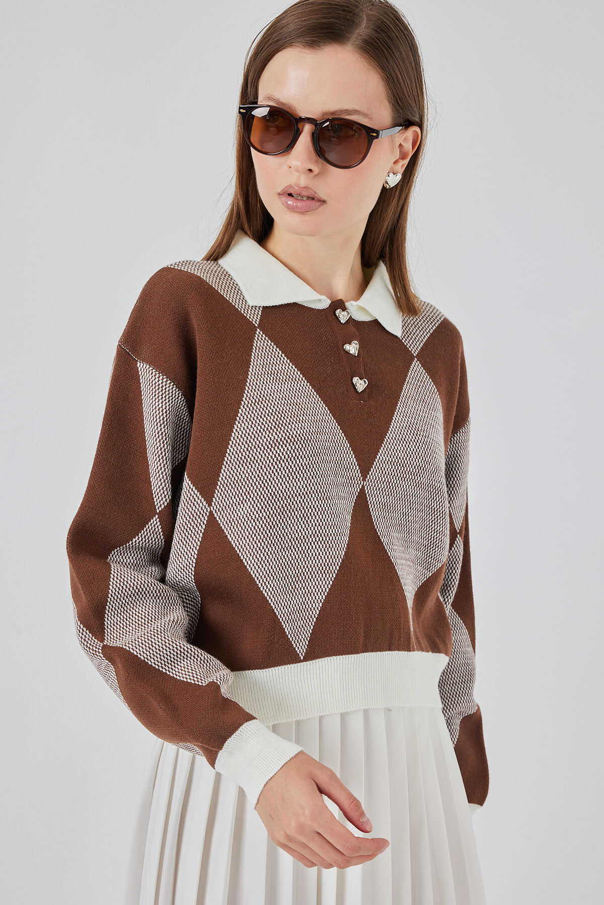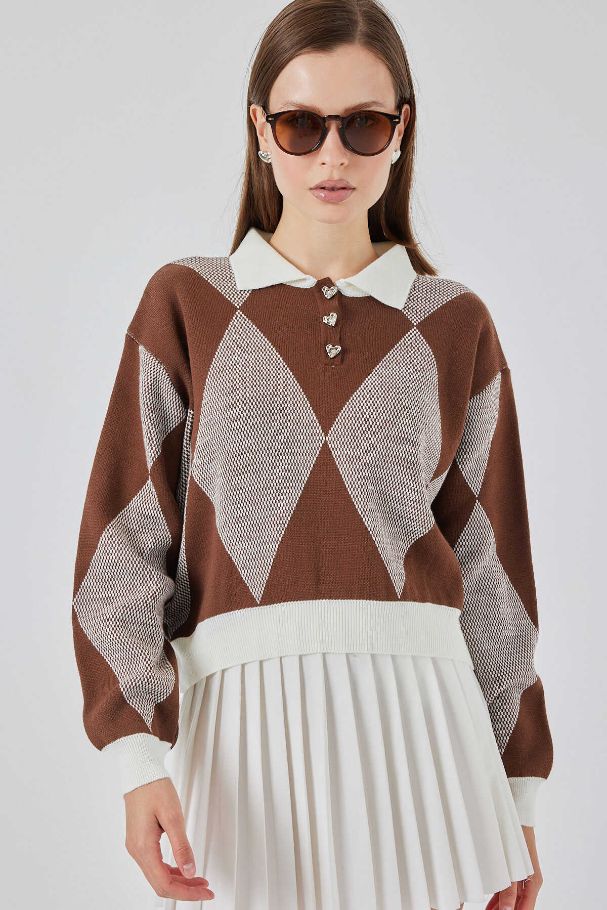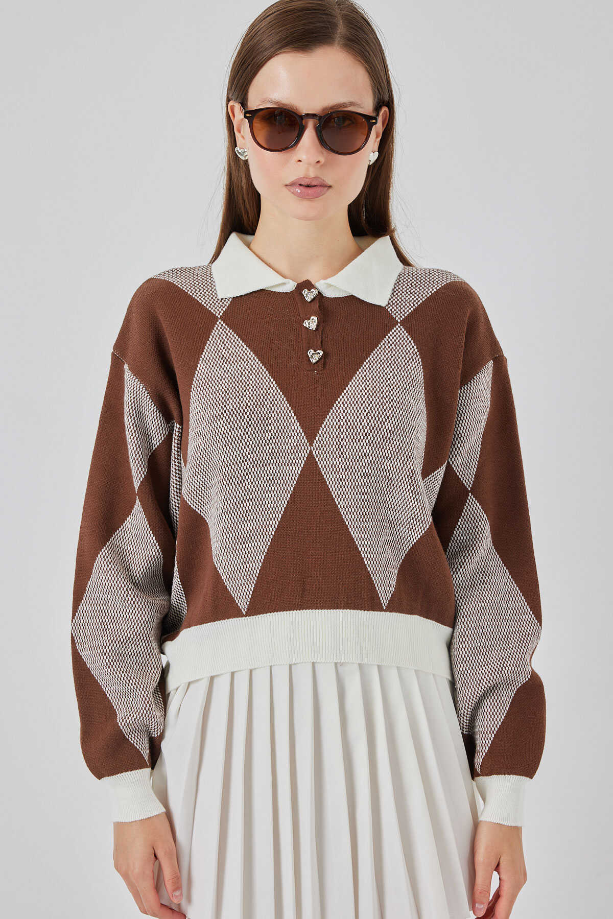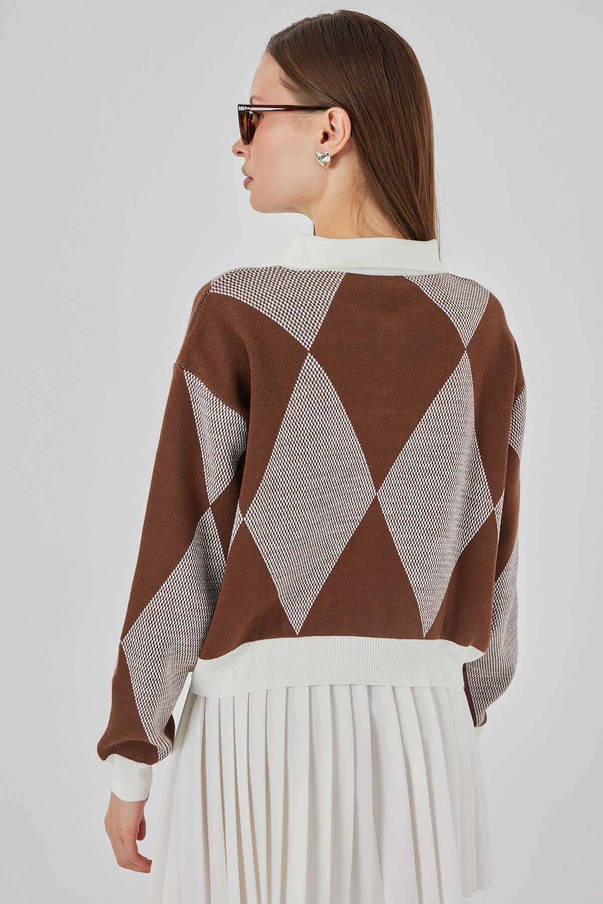 Kadın Crop Triko Kazak 15936 - A.Kahve - Kombin