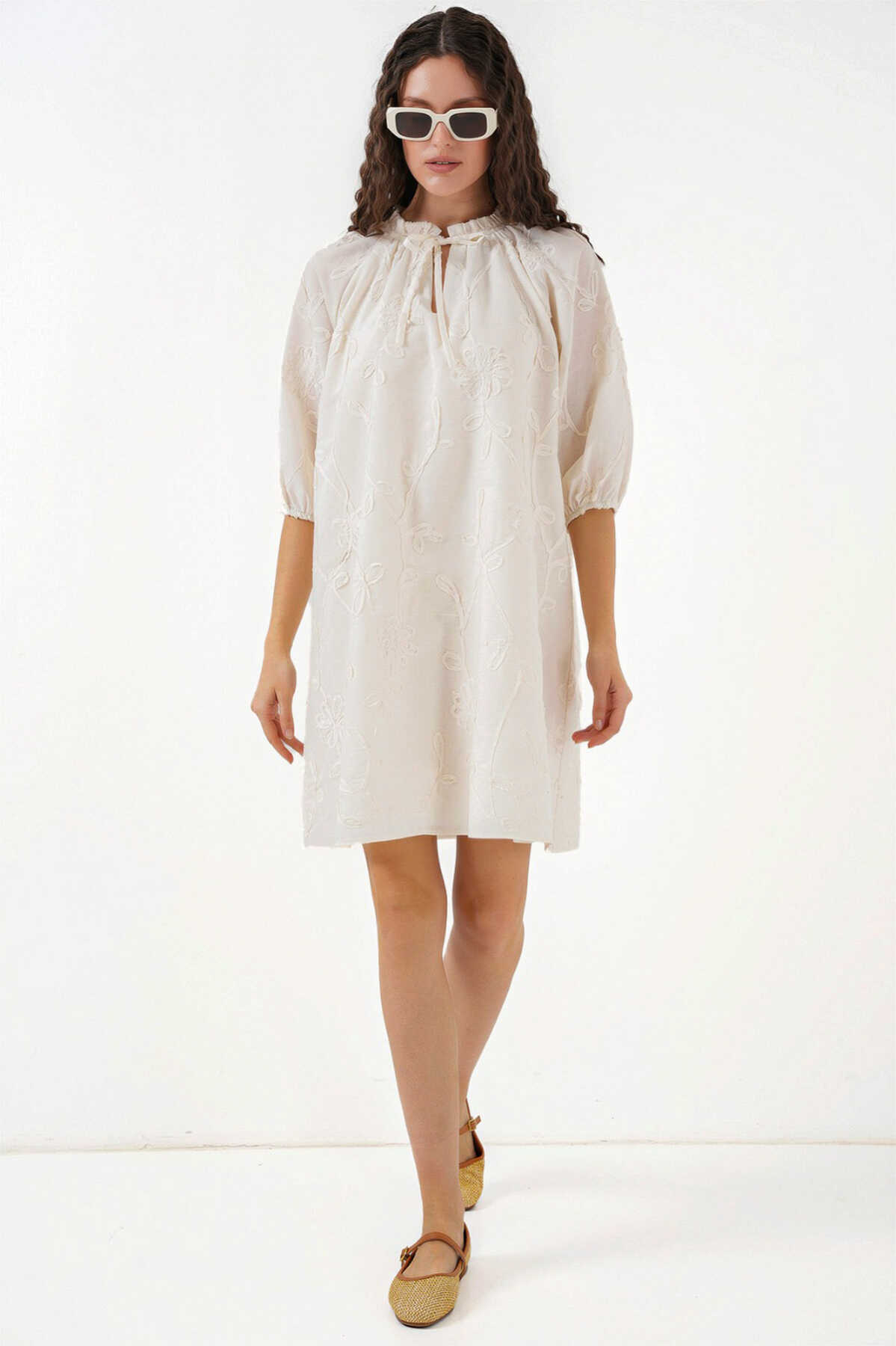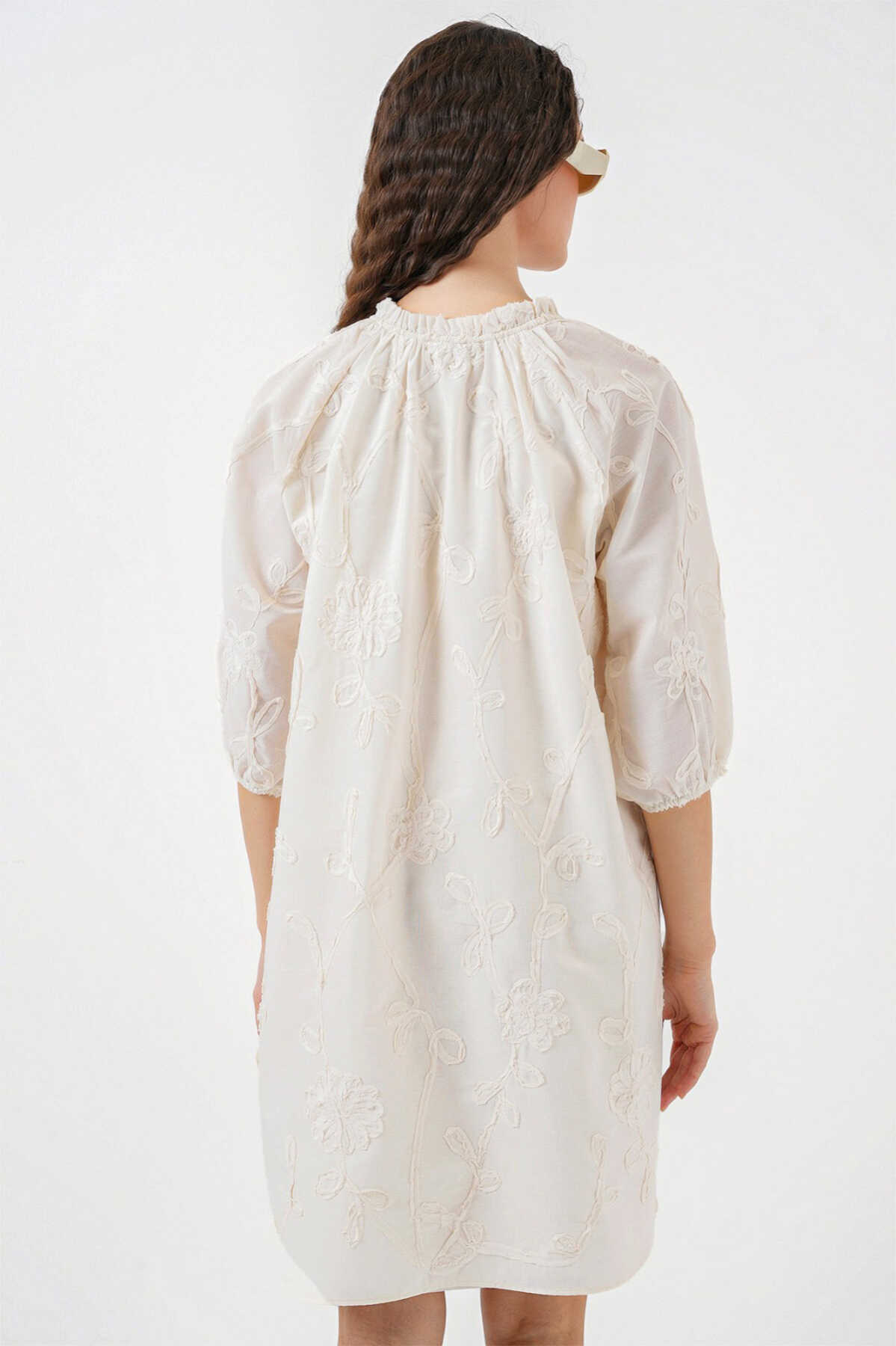 Kadın Desenli Kısa Elbise 2528 - Krem