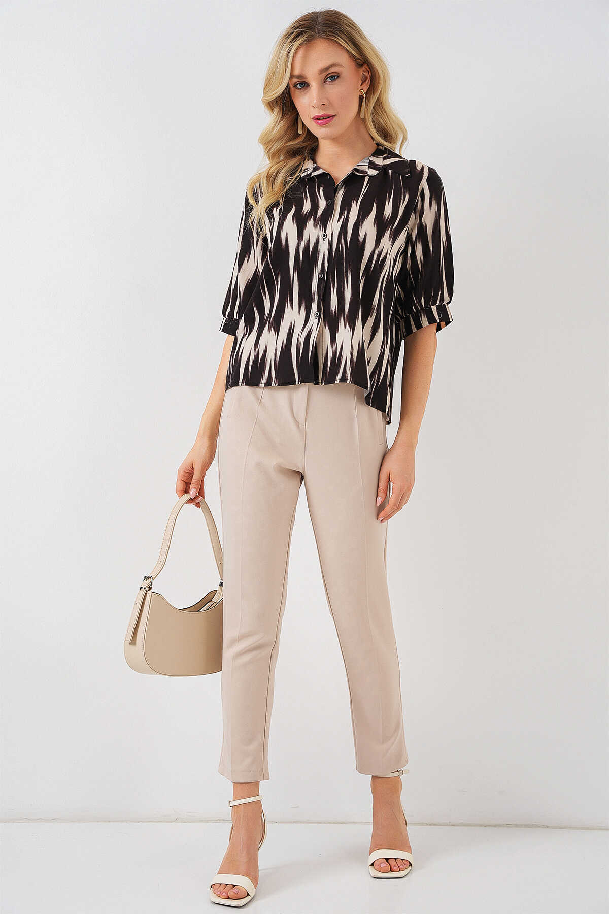 Kadın Desenli Kısa Kol Crop Gömlek 20337 - Siyah - Kombin