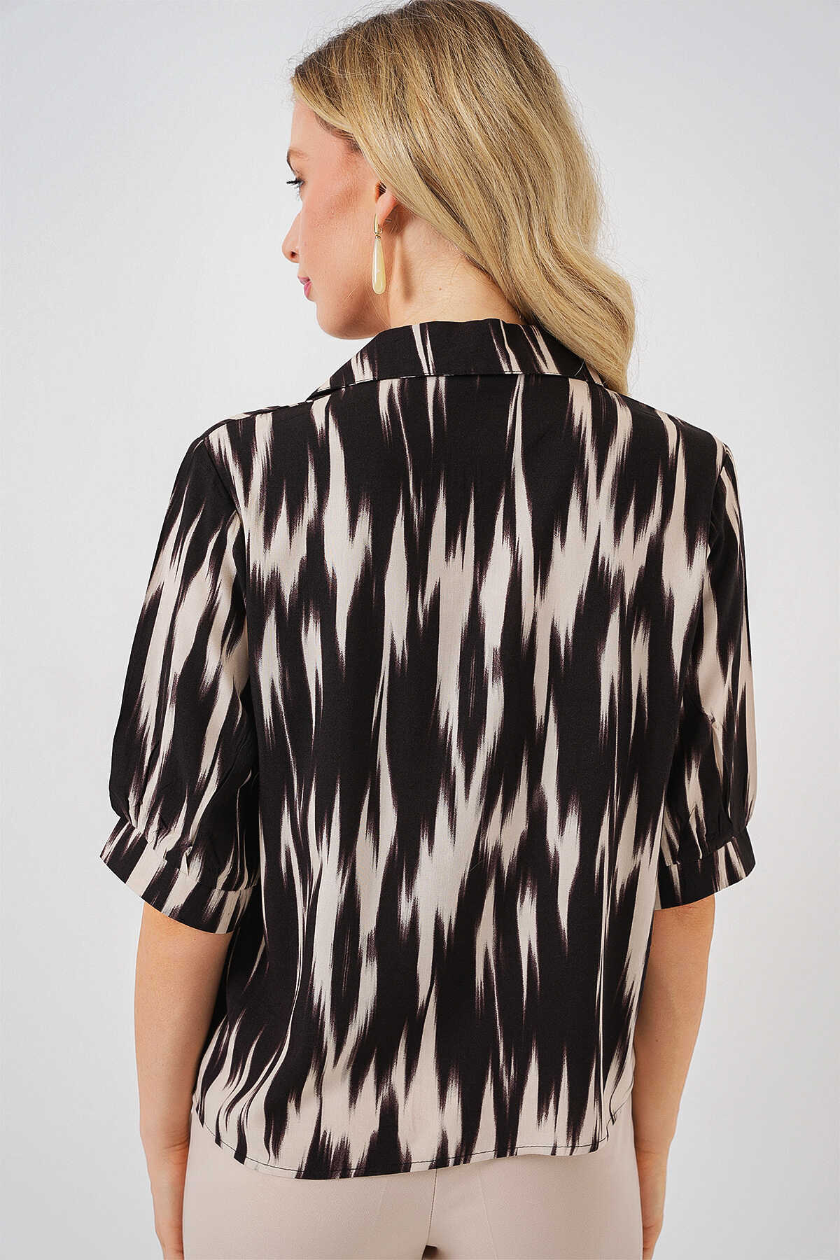 Kadın Desenli Kısa Kol Crop Gömlek 20337 - Siyah